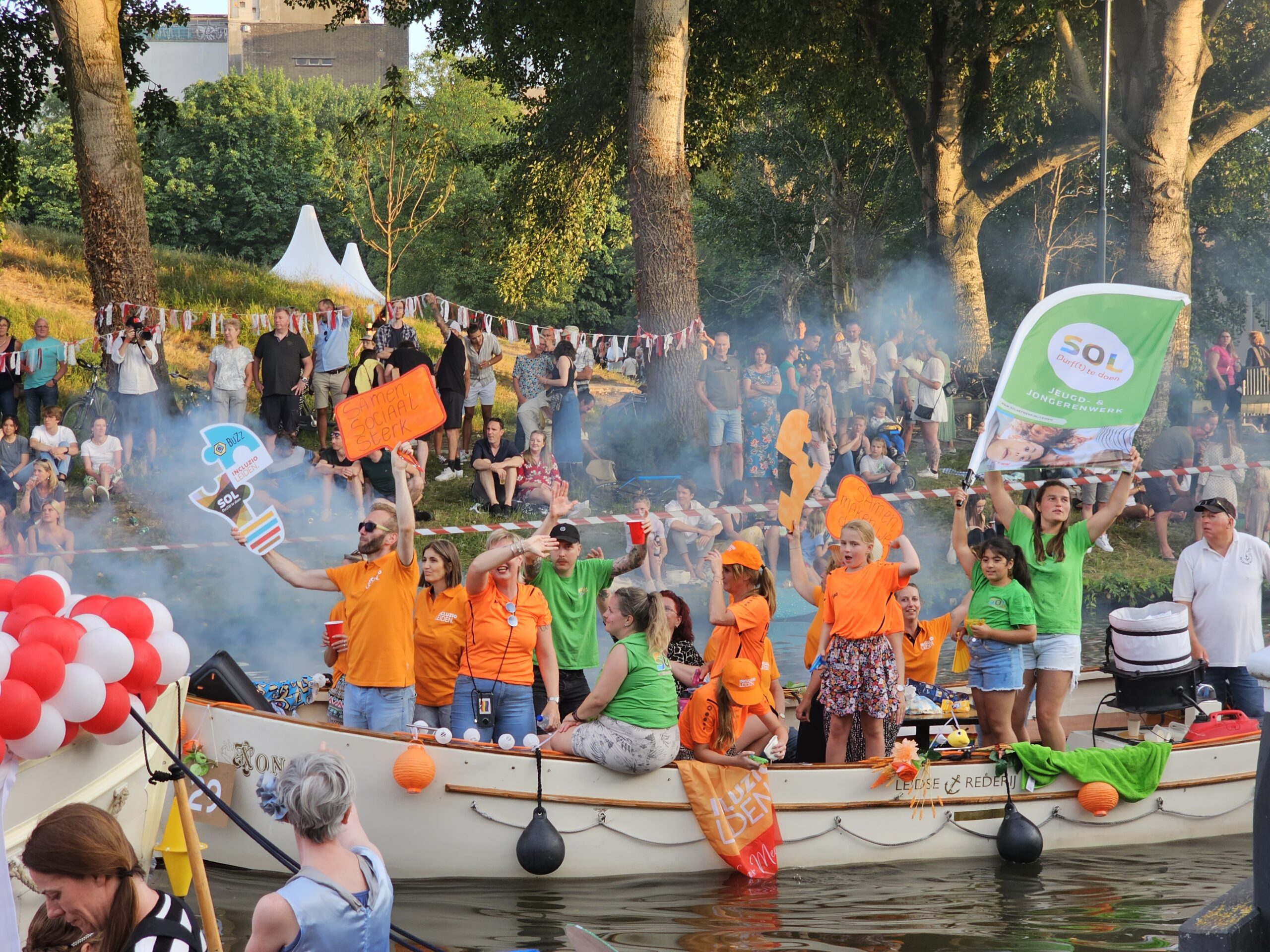 De laatste categorie waar drie prijzen werden verdeeld waren de verenigingen. Daar won vriendengroep Nou-En met hun formule-1 peurbak waarmee Max door de Leidse grachten scheurde. Scoutinggroep Leif Erikson uit Voorschoten werd tweede en musicalgezelschap Otis derde.