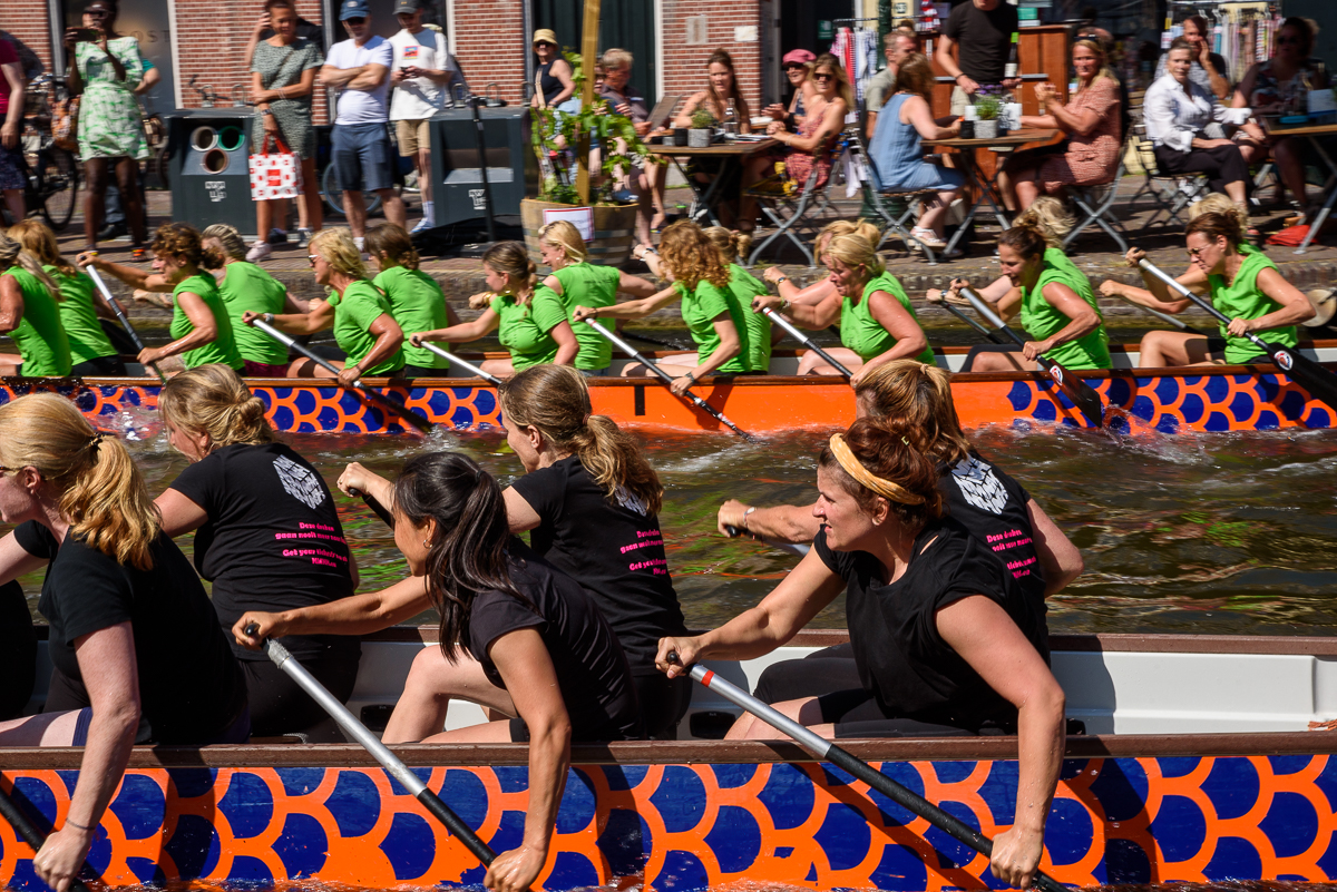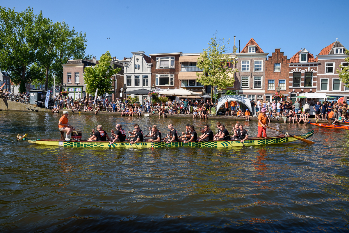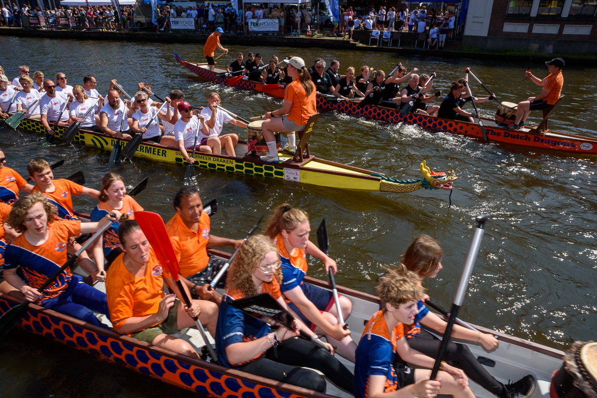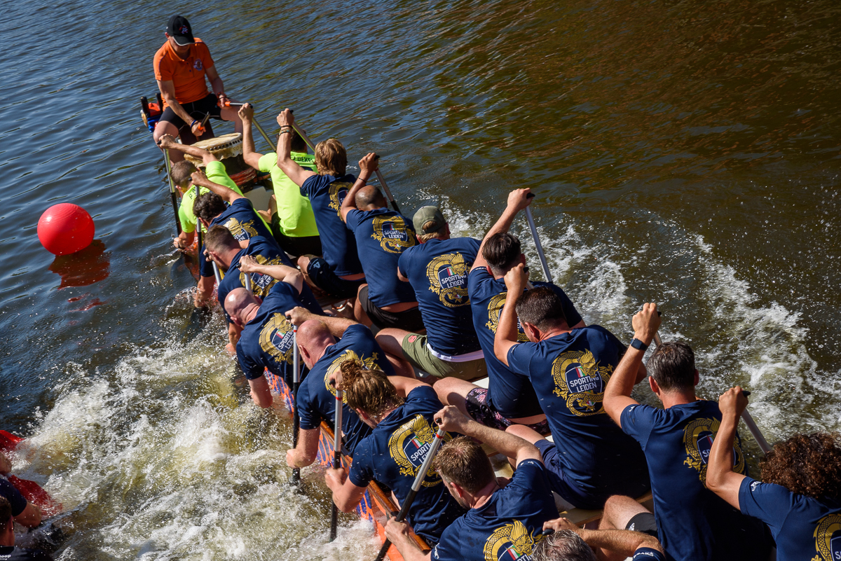 Onder luid en ritmisch getrommel streden zaterdag vijfentwintig dragonboat-teams op de Rijn tussen de Boommarkt en de Apothekersdijk om de winst. De Dragonboat Races in Leiden zijn de grootste binnenstadraces van Nederland en worden tijdens de Lakenfeesten georganiseerd door de Dutch Dragons uit Zoetermeer.