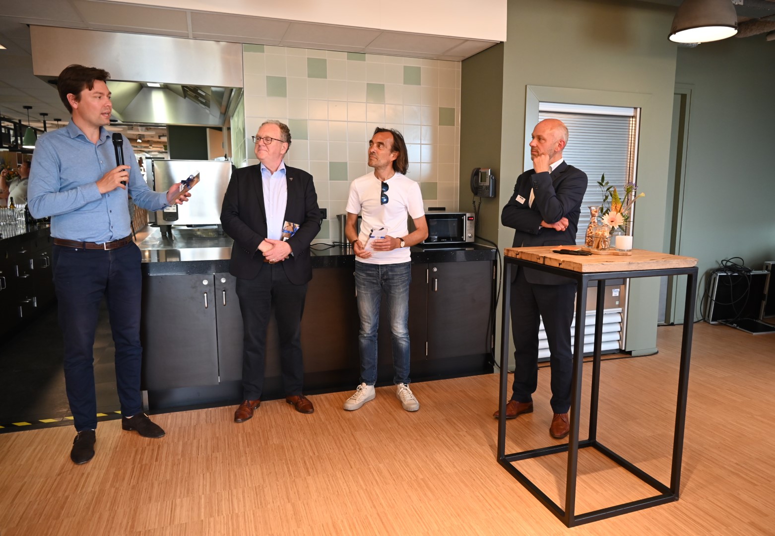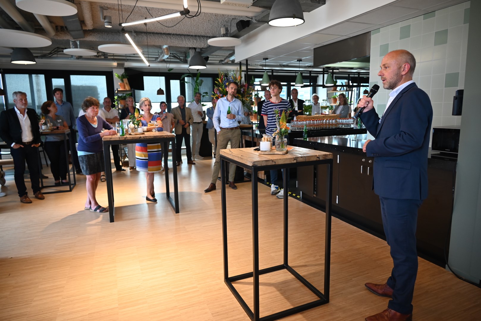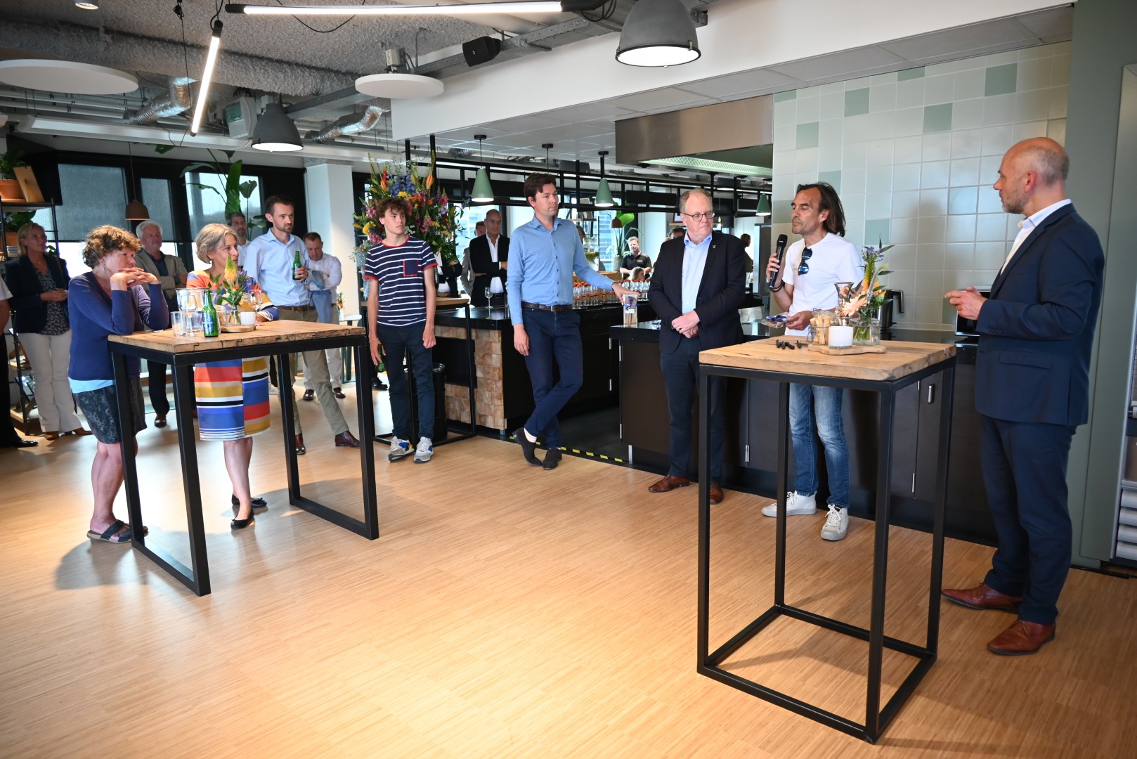 Directeur Danny Wijnbelt en zijn medewerkers zijn trots op hun nieuwe kantoor. In een korte toespraak wees Wijnbelt er op dat communicatie naar de cliënten het belangrijkste is. “Daar moeten we aan blijven werken en ons blijven verbeteren.”