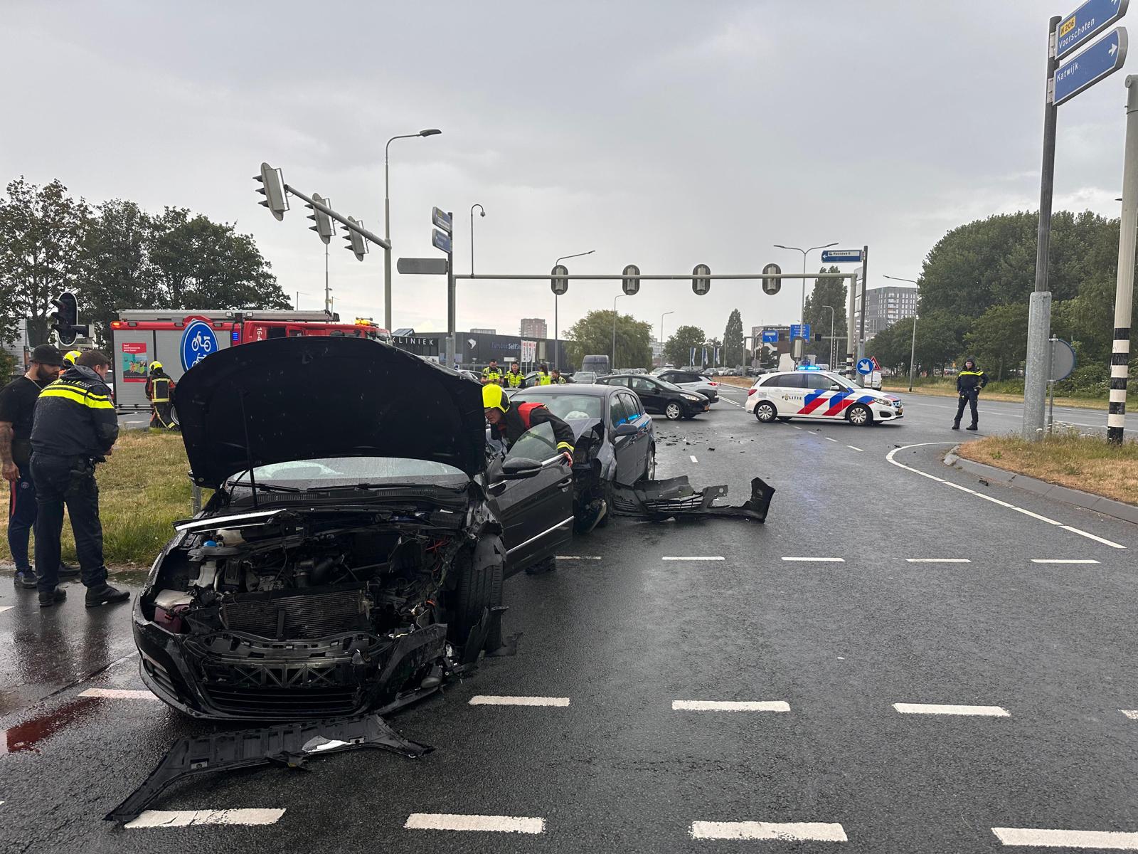 Grote verkeerschaos op en rondom de N206 op de kruising Voorschoterweg en de Rooseveltstraat woensdagmiddag. Dit vanwege een flinke aanrijding tussen twee personenauto’s.