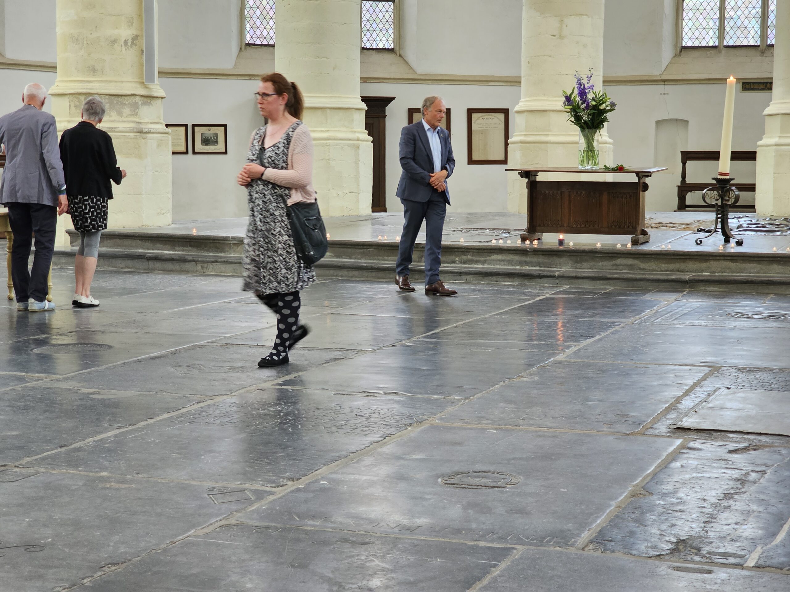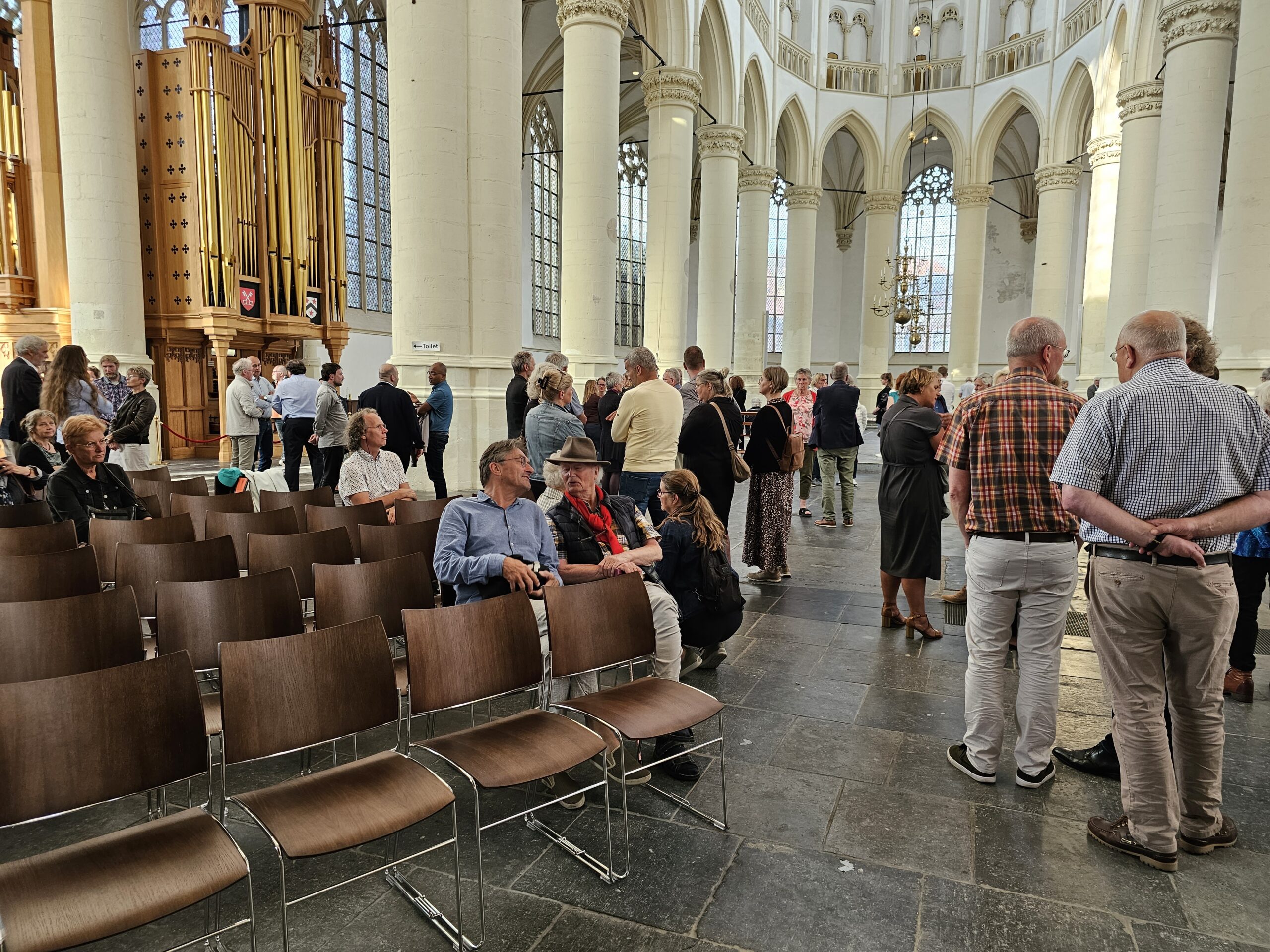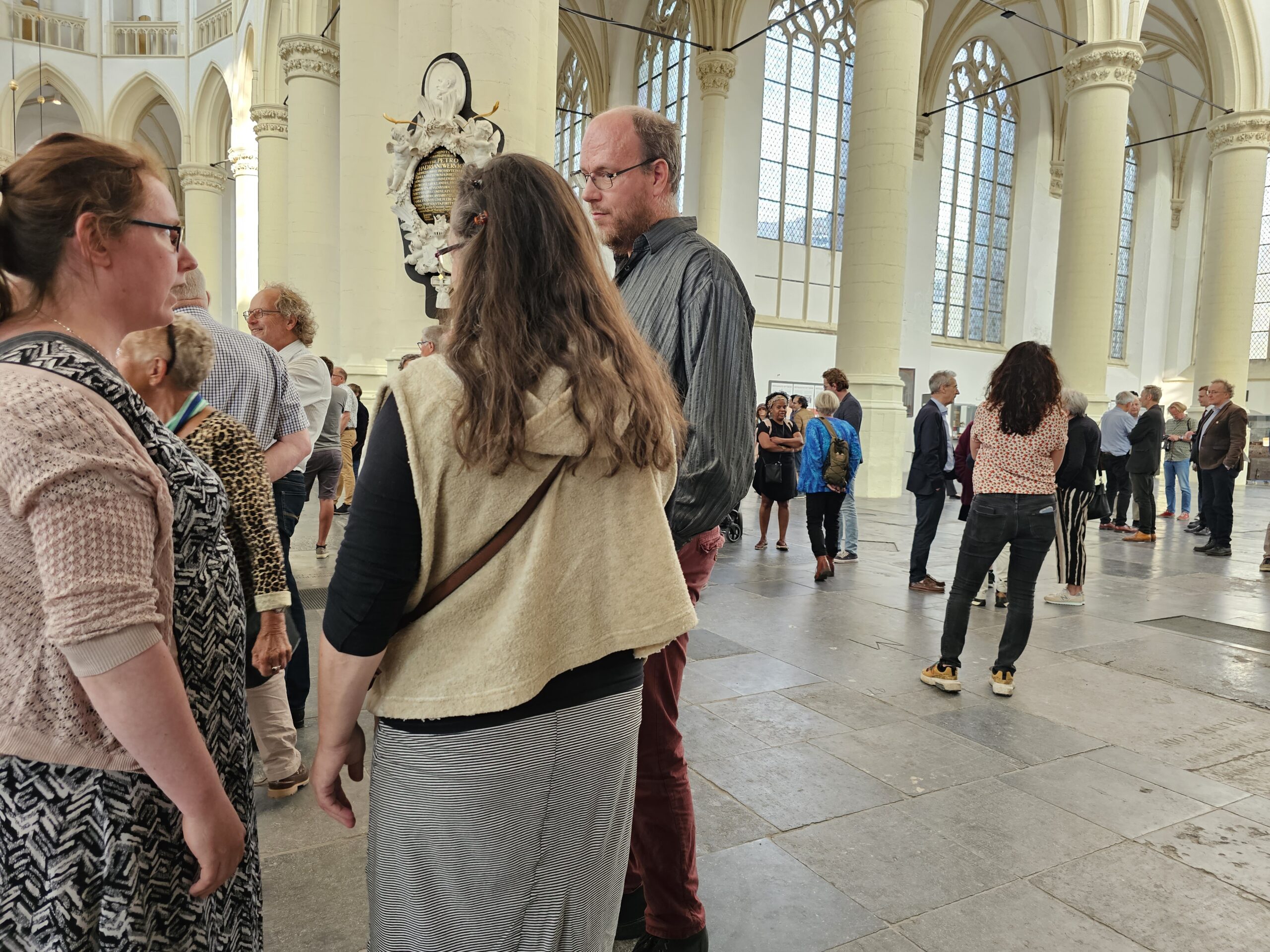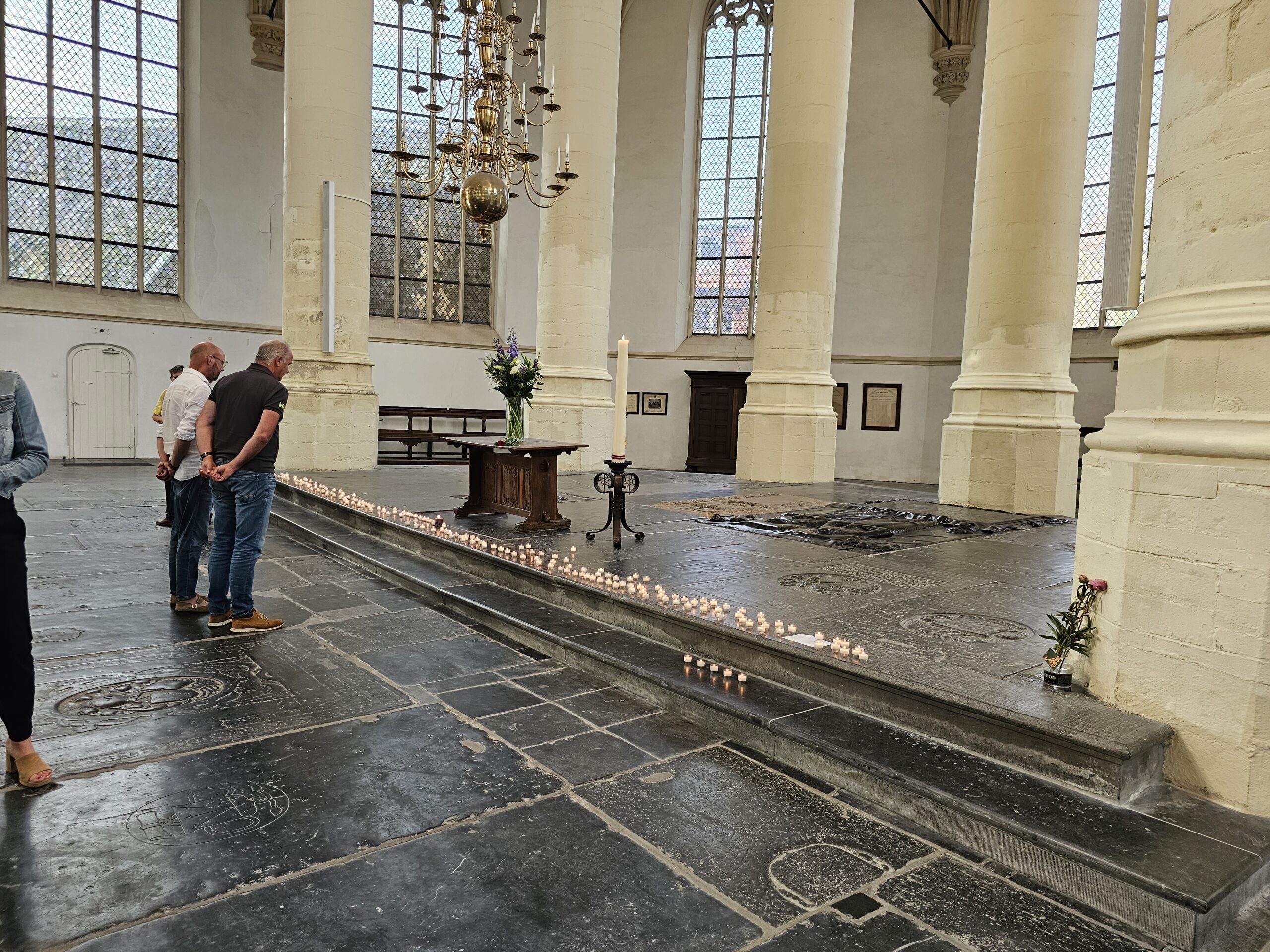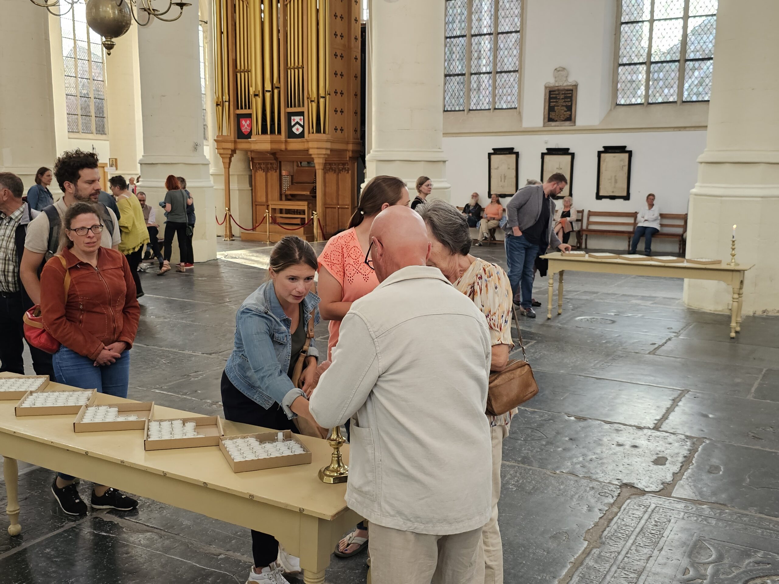 Als de deuren om precies 19.00 uur open gaan, stroomt de kerk langzaam steeds voller. Onder de aanwezigen ook burgemeester Lenferink en enkele wethouders. Het is druk, maar er heerst in eerste instantie een serene stilte. Mensen gedenken in stilte, een enkeling fluistert. Na een tijdje beginnen mensen toch ook ingetogen met elkaar te praten. En dat is prima. Het is immers de reden dat de kerk zondagavond de deuren opent. Om stil te staan bij de slachtoffers, maar zeker ook om het gesprek met elkaar aan te gaan en dat gebeurt uiteindelijk volop.