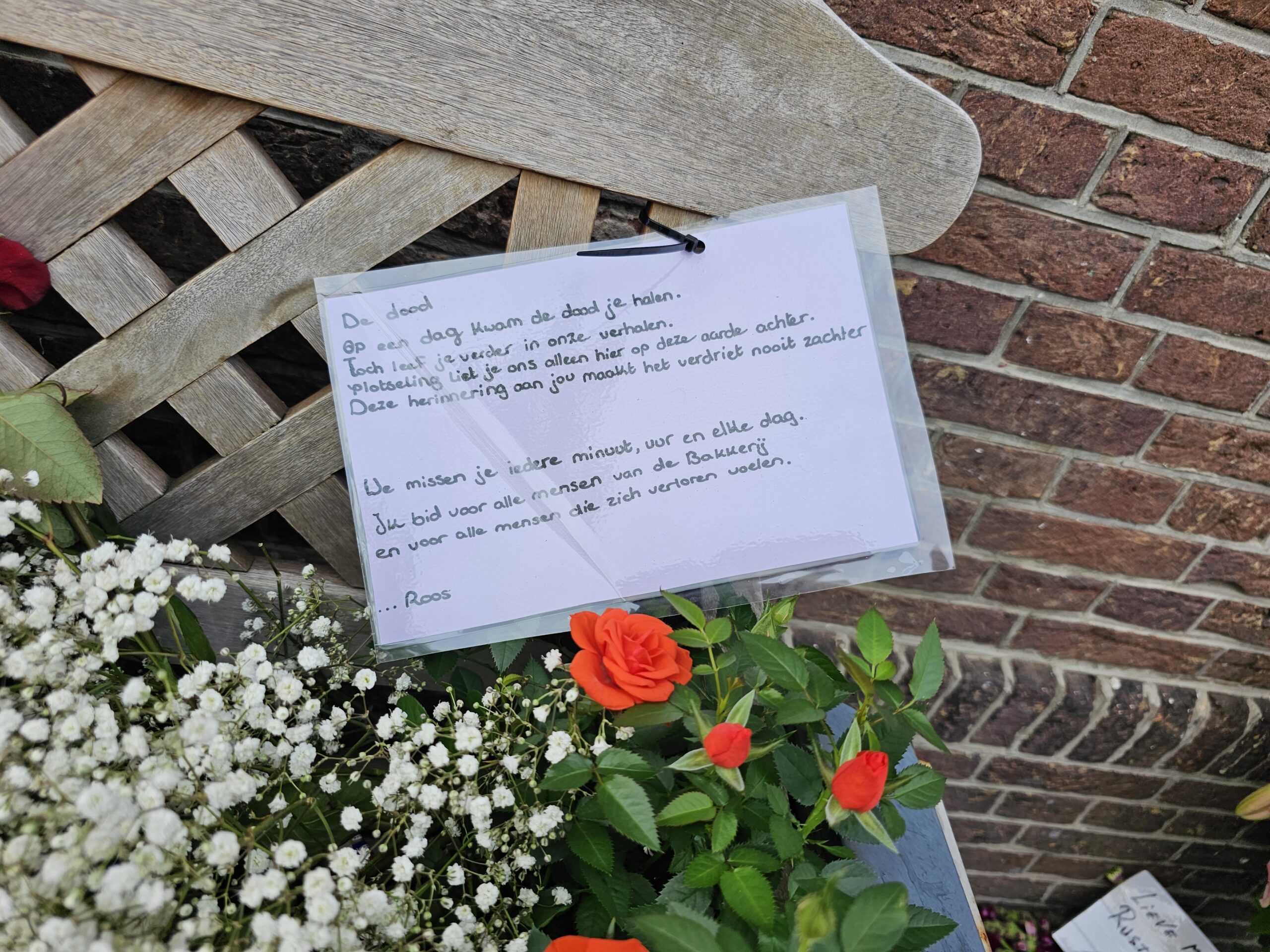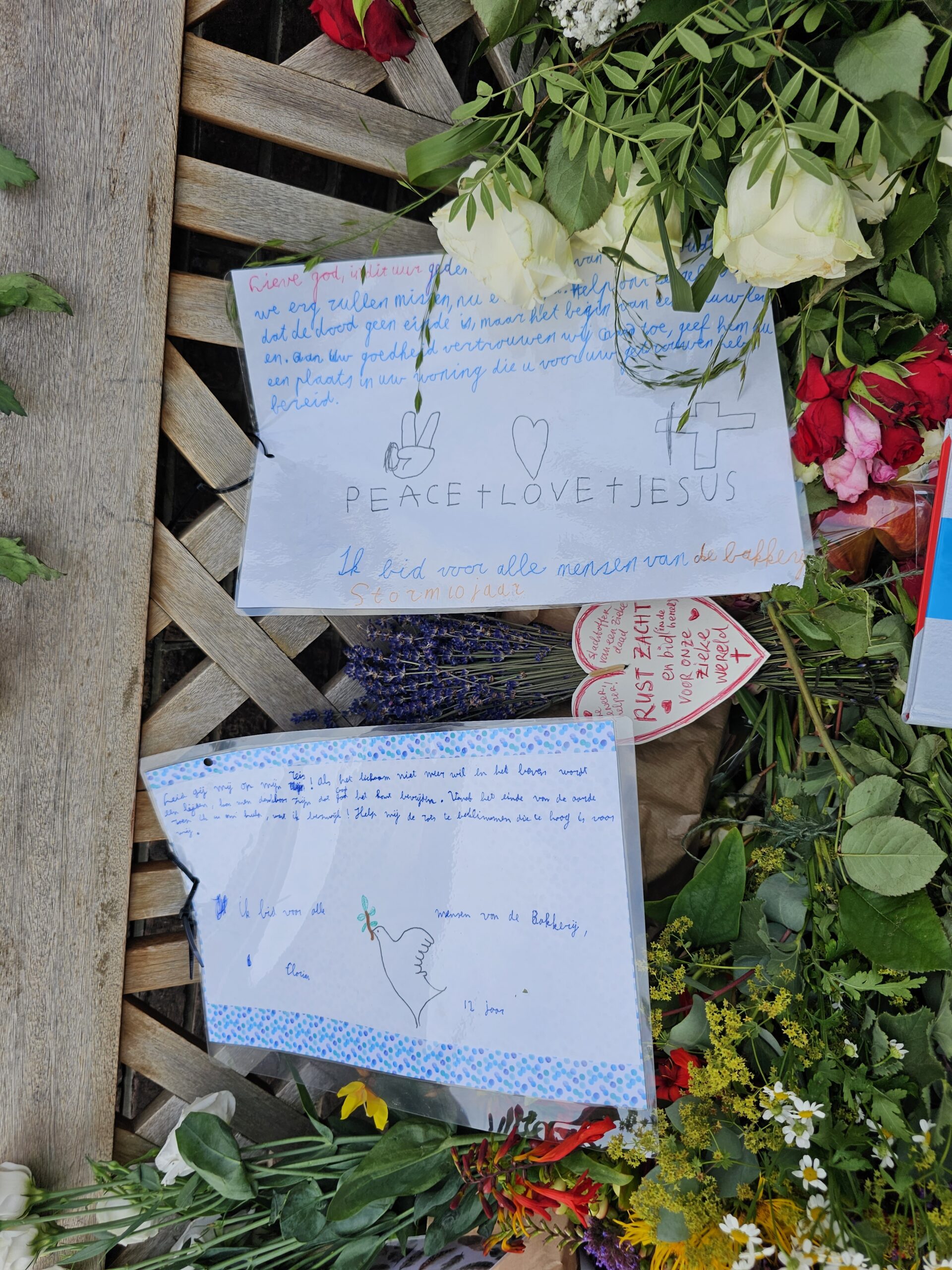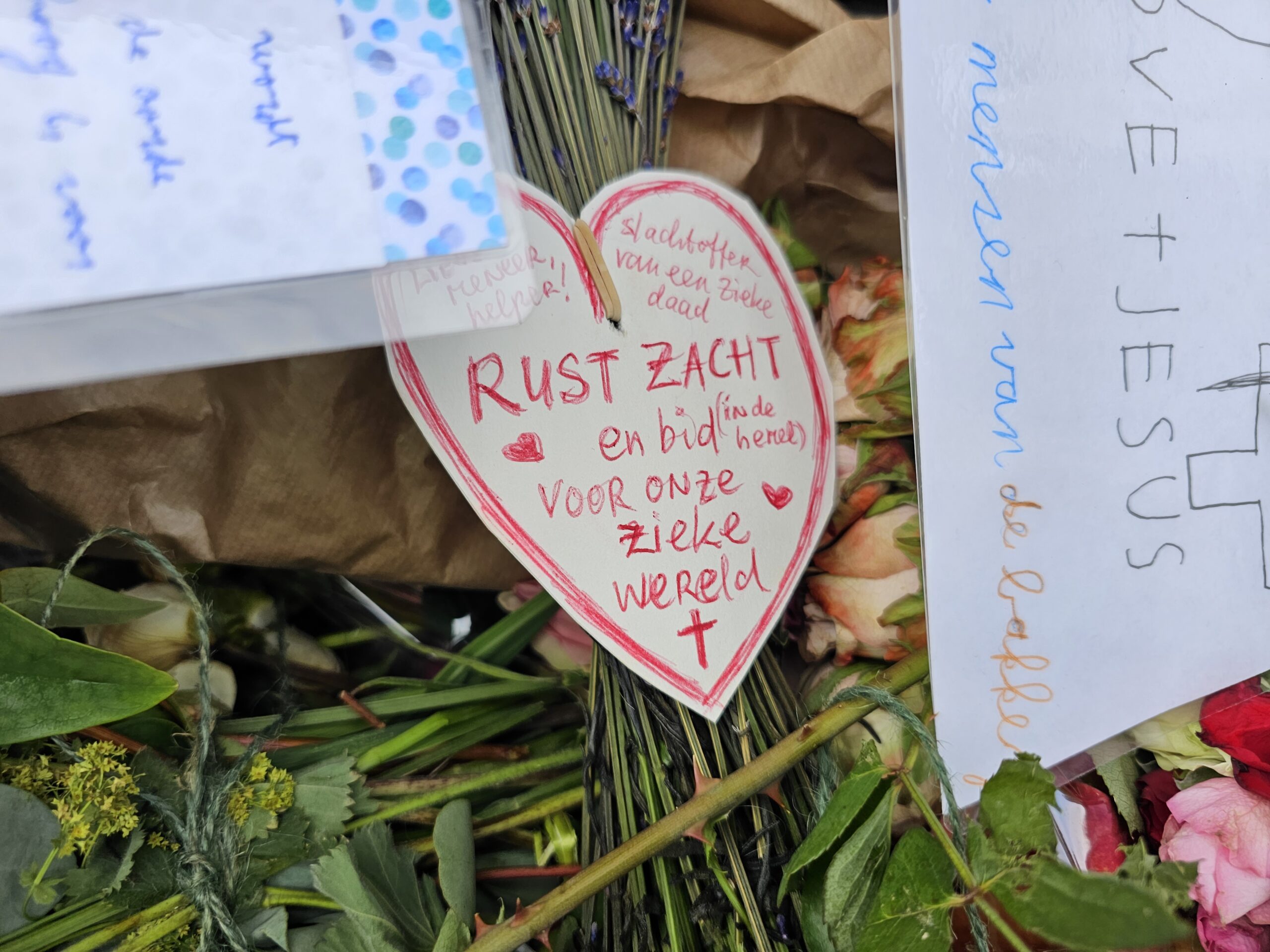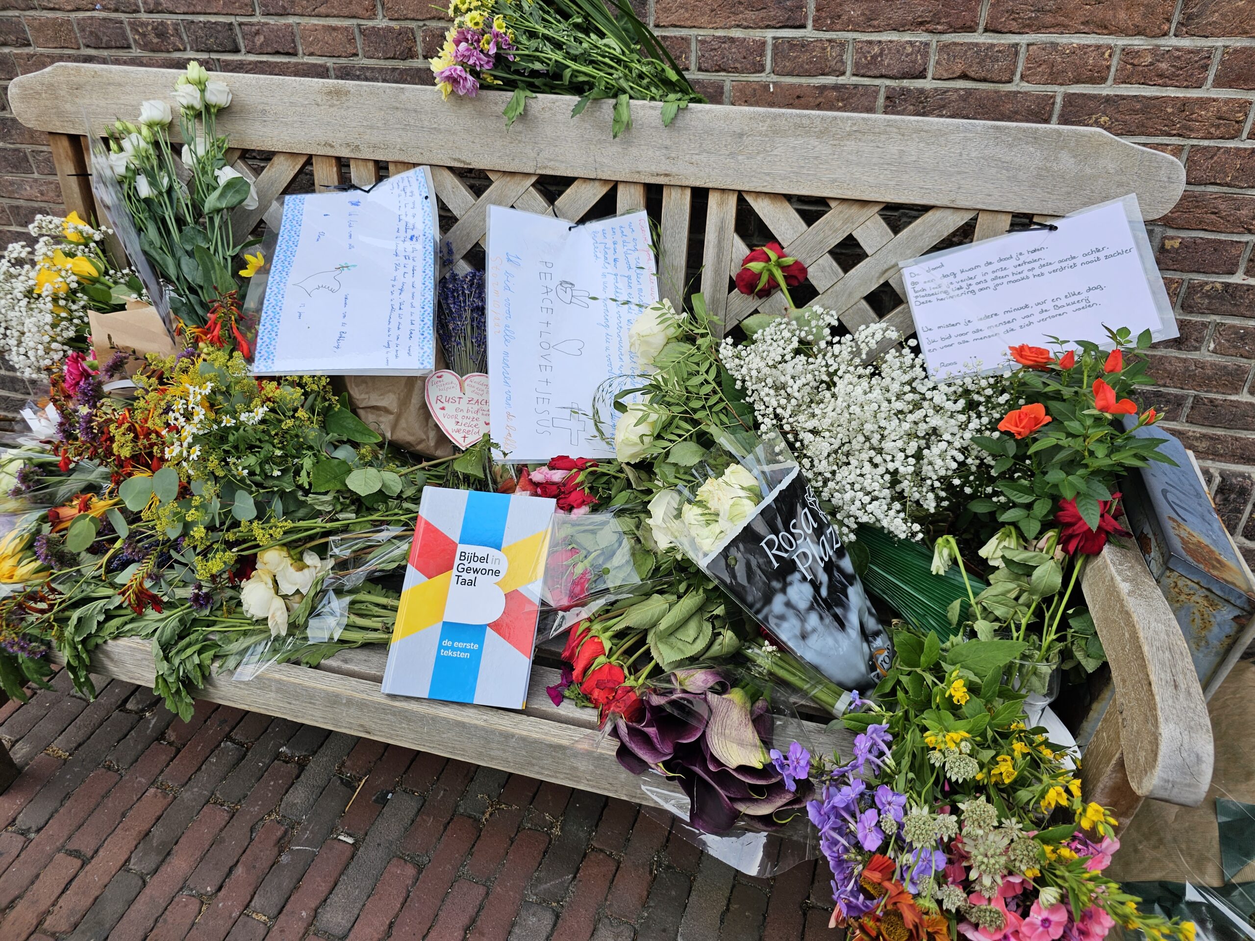Even verderop groeit ook de bloemenzee bij De Bakkerij aan. Ook worden er geschreven boodschappen achtergelaten. Ook enkele van nog jonge kinderen.