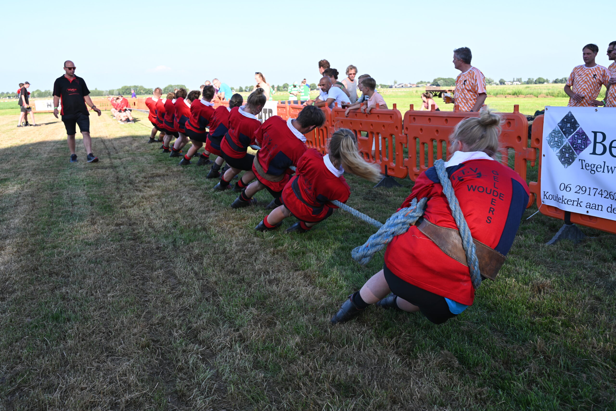 “Wij zijn volop aan het trainen om weer op het podium te springen”, zegt Gera Zonneveld die samen met haar oudere zus Trude in het kampioensteam zit. Gelderswoude is een dorp binnen de gemeente Zoeterwoude. Er wonen 75 mensen waaronder de familie Zonneveld. “Er staan hier veel boerderijen. Vooral in de oogsttijd helpt iedereen elkaar”, vertelt Gera Zonneveld. Die onderlinge samenwerking komt ook van pas tijdens het touwtrekken. “Je doet dit met zijn achten. We werken samen aan de techniek, tactiek, kracht en uithoudingsvermogen.”