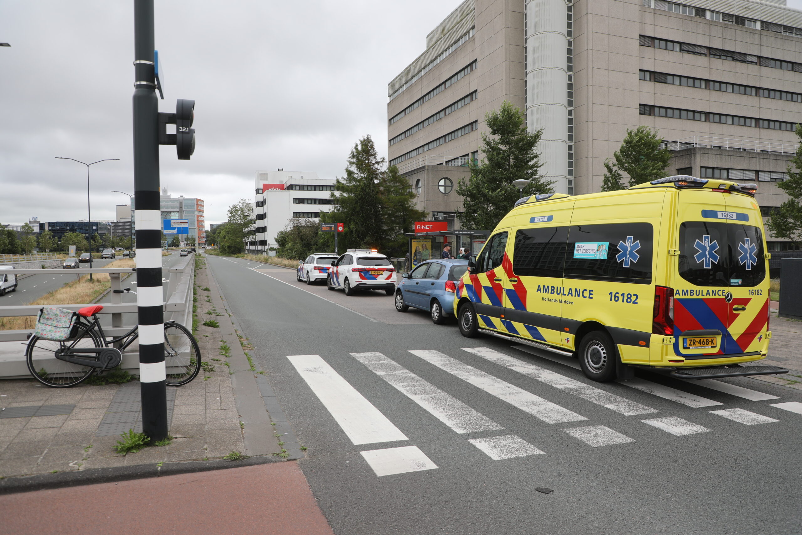 Bij de oversteekplaats op de kruising van de Haagse Schouwweg en de toerit naar Plesmanlaan is maandagmiddag een fietser geschept door een auto. Ambulancemedewerkers hebben zich over de fietser ontfermd. In de ambulance werd het slachtoffer verder nagekeken op verwondingen en vervolgens overgebracht naar het ziekenhuis.