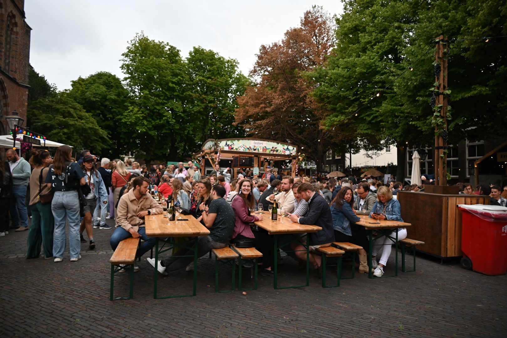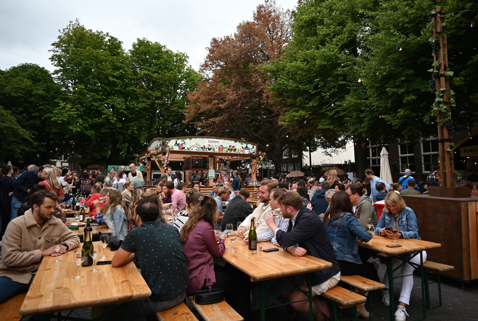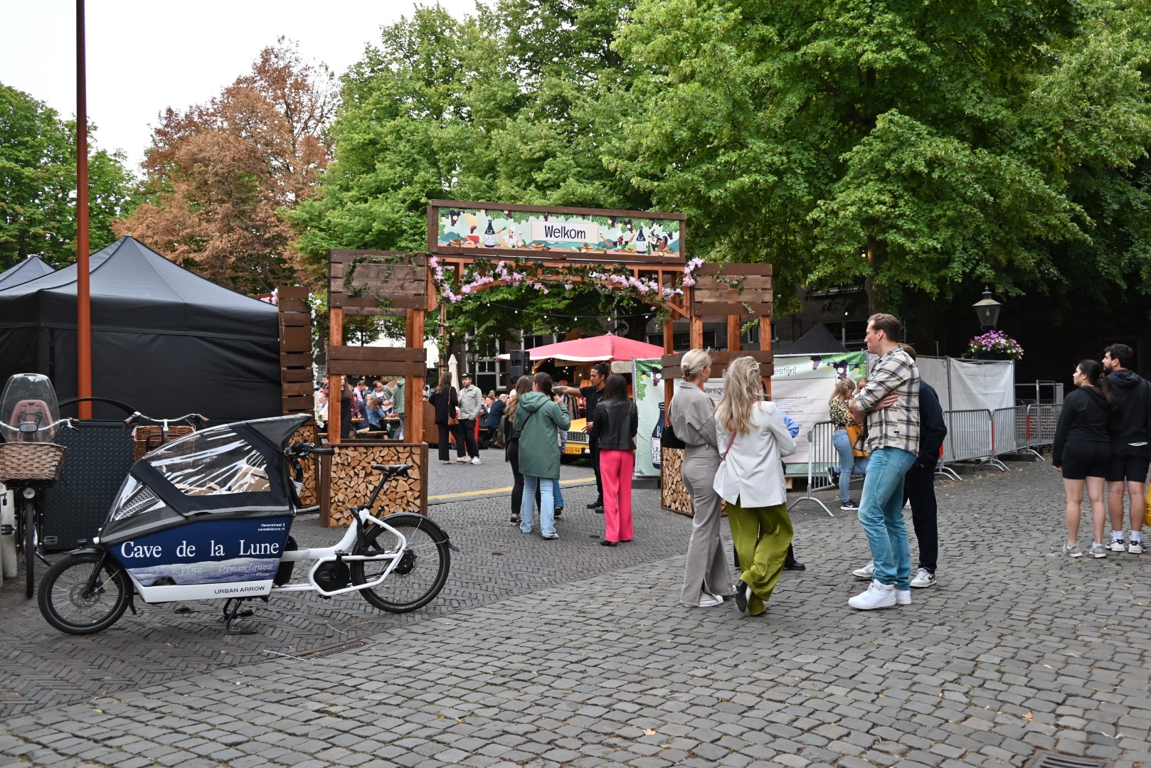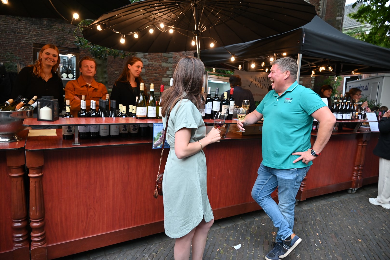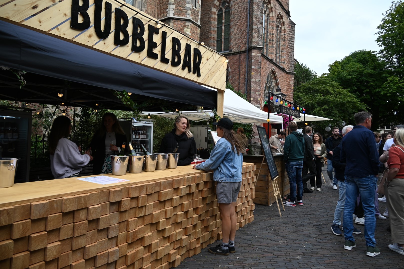 Het wijn festival begon al bij binnenkomst waar iedere bezoeker een glaasje bubbels bij de Bubblebar kreeg aangeboden. Verder op het plein stonden veel Leidse wijnhandels en ook aan de bierliefhebber was gedacht, de Leidse bierbrouwer Pronck serveerde hun bieren uit.