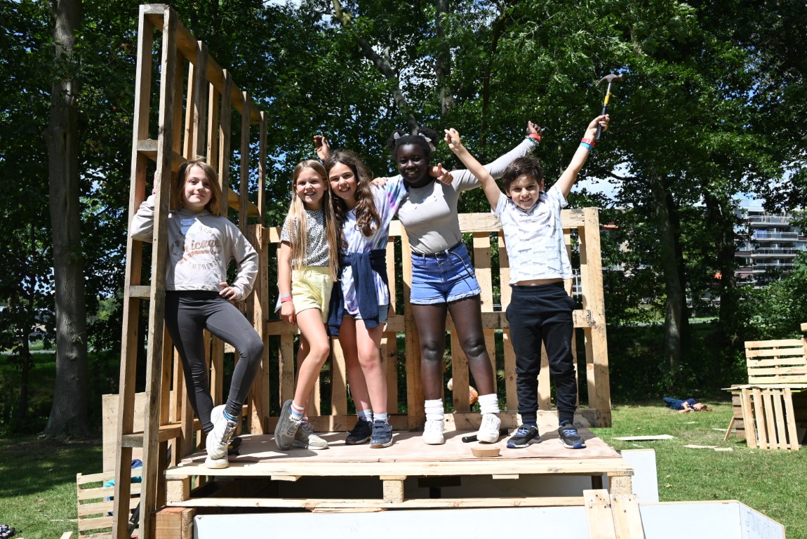 Twee weken lang sport, spel, theater en natuurlijk hutten bouwen, dat zijn de voornaamste bezigheden bij Jeugddorp. Maandag ging het vakantiedorp voor de jeugd uit Leiden van start op het terrein langs de Voorschoterweg en woensdagmiddag was de pers uitgenodigd om een kijkje te komen nemen. Onder andere bij de hutten die inmiddels uit de grond waren gestampt.