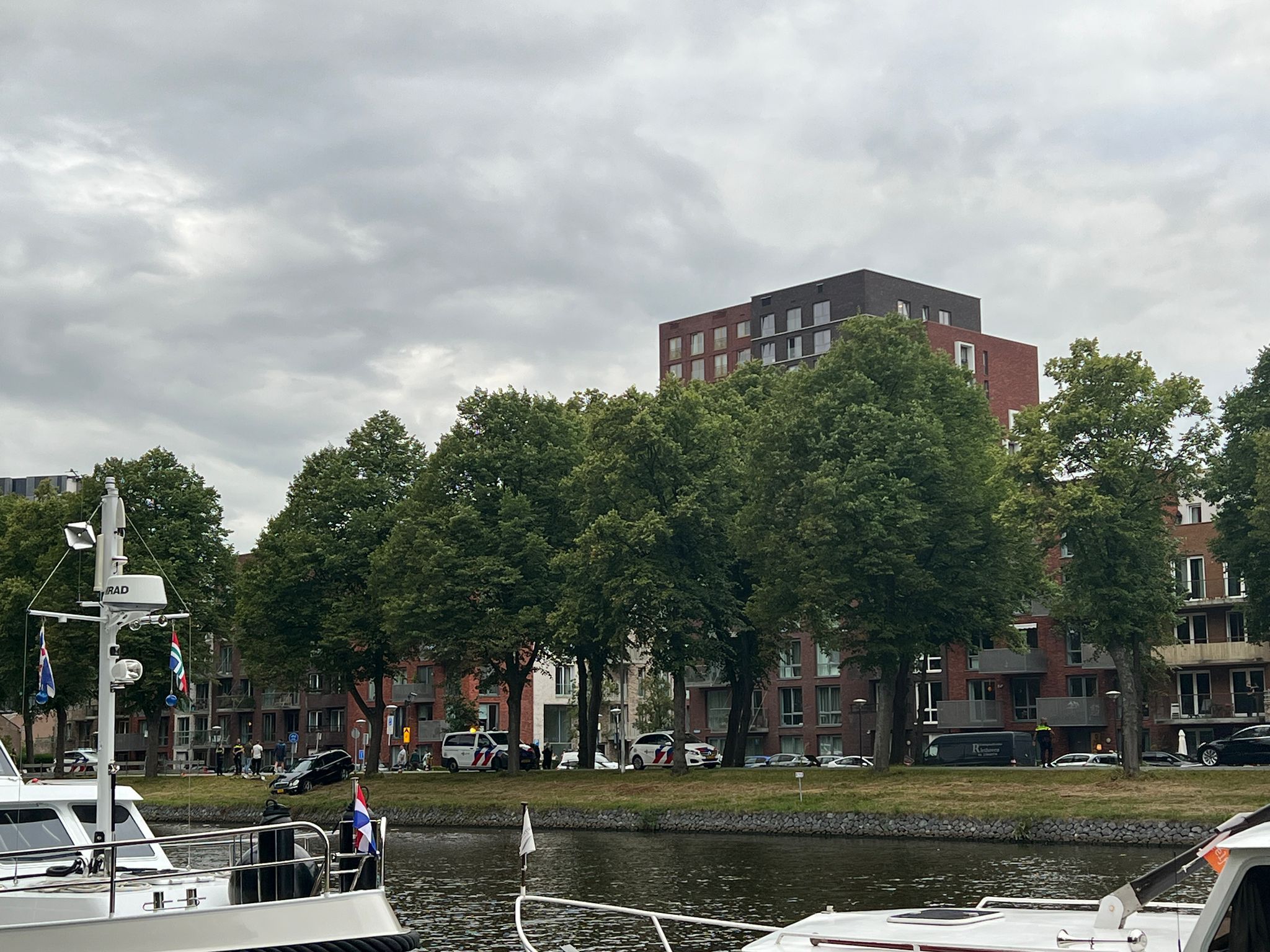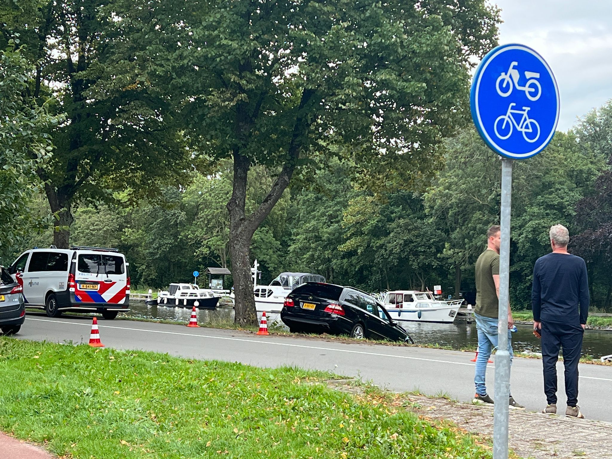 Bij een botsing tussen twee auto’s op de Kanaalweg is dinsdagavond een van de voertuigen bijna in het Rijn-Schiekanaal terecht gekomen.