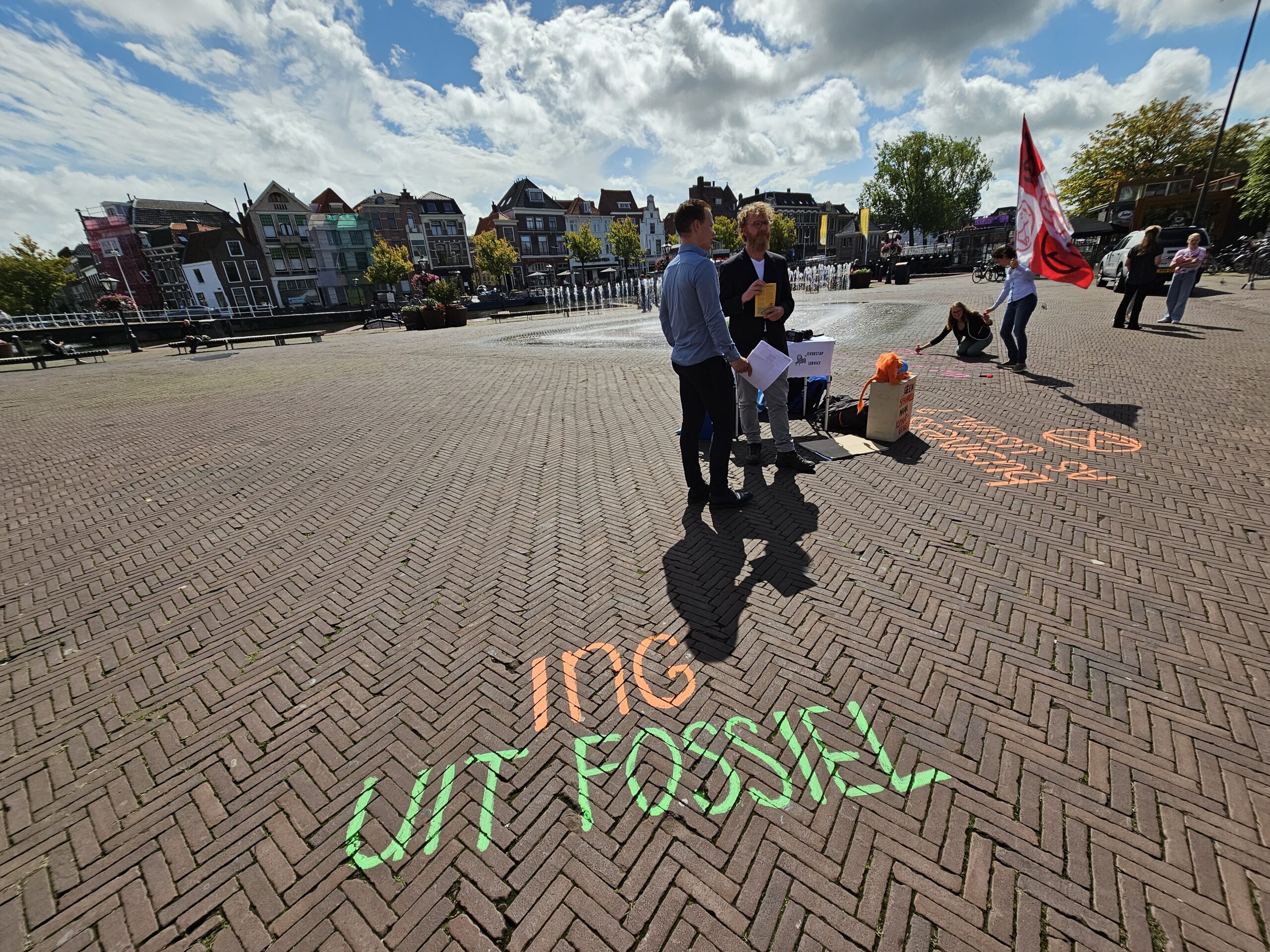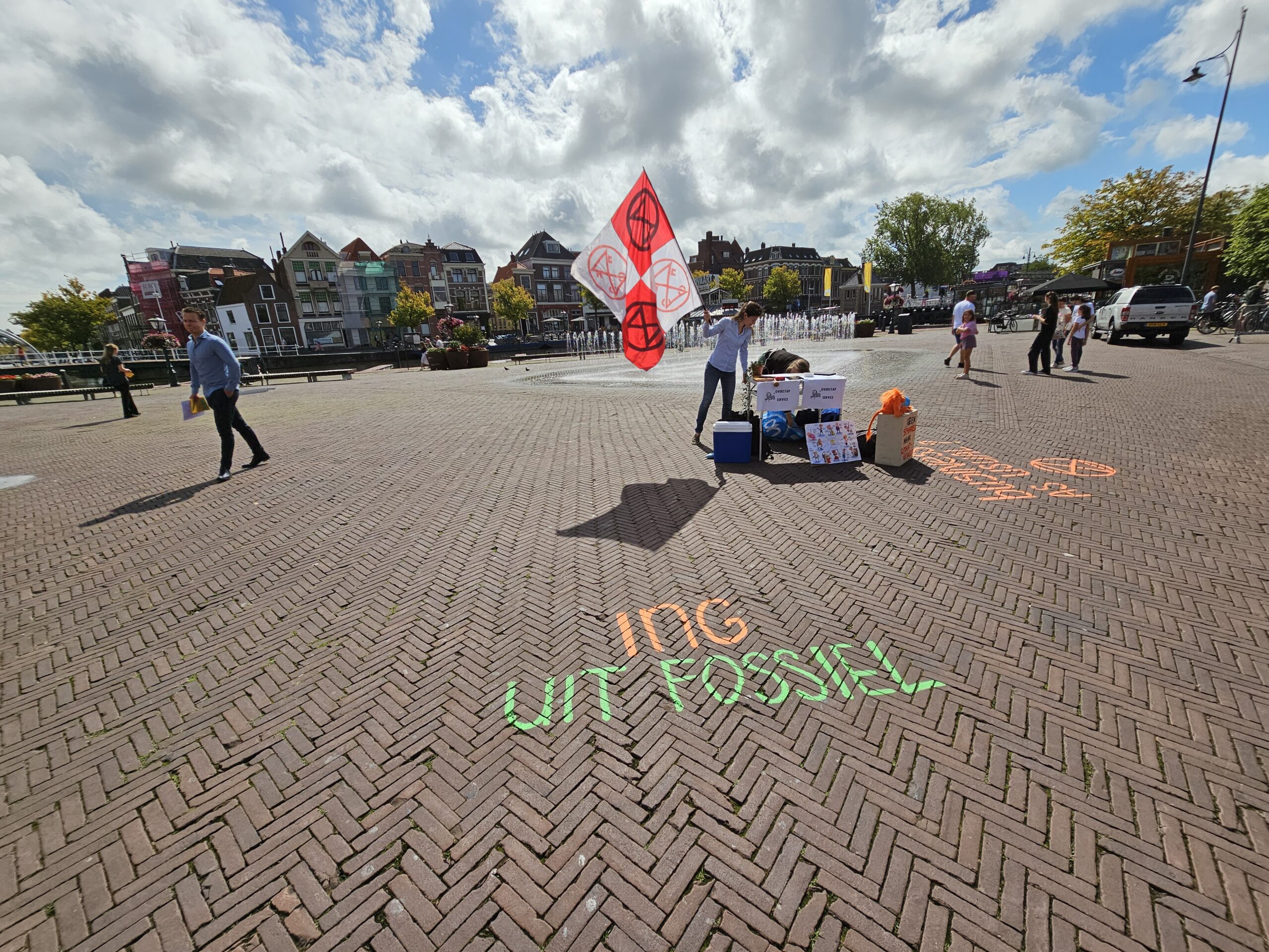 Extinction Rebellion richt de pijlen in het bijzonder op de ING, omdat die bank het meeste van alle Nederlandse banken investeert in fossiele brandstoffen. “Sinds 2015 al meer dan vijftig miljard euro”, zegt woordvoerder Steven. “Daarom voerden we overal in het land actie tijdens wat we de ‘hete ING Zomertour noemen’. Ze maken de aarde heter en dus willen wij hen nu ook die hitte laten voelen met onze acties.” Twee weken geleden werd actie gevoerd voor de deur van het ING filiaal aan het Schuttersveld. Over twee weken, op zaterdag 26 augustus, gebeurt dat nog een keer. “En wat we dan gaan doen, dat merken jullie vanzelf.”