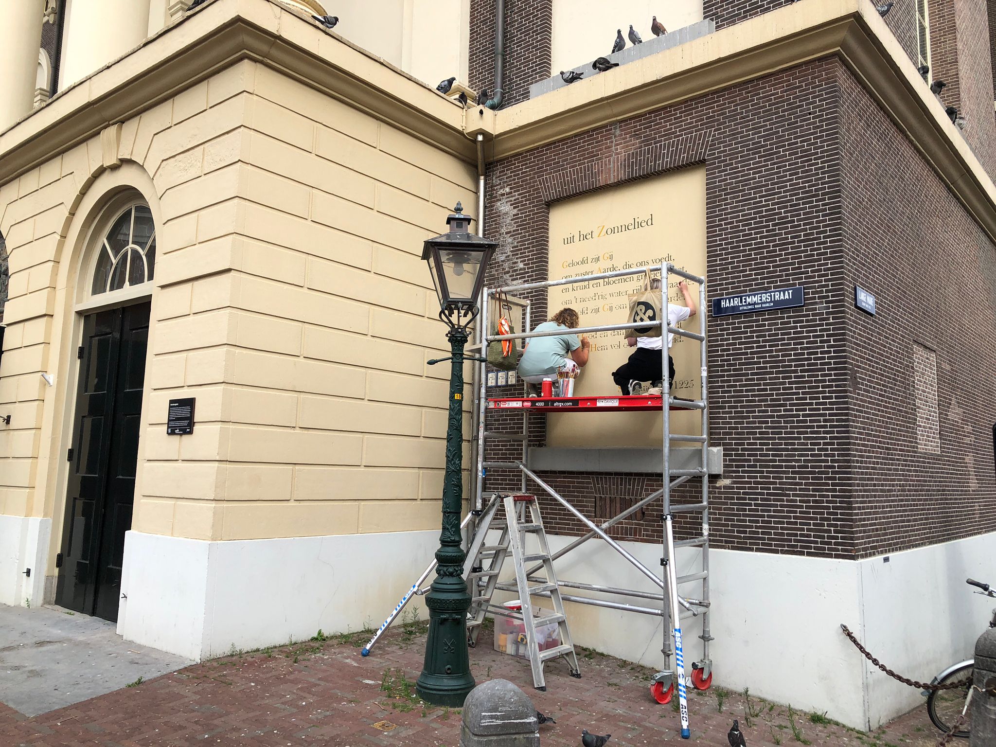 De Hartebrugkerk, in de volksmond beter bekend als de ‘Coeli-kerk’, krijgt twee muurgedichten. Ze worden geschilderd op twee blinde ramen in de gevel van de kerk aan de Haarlemmerstraat.