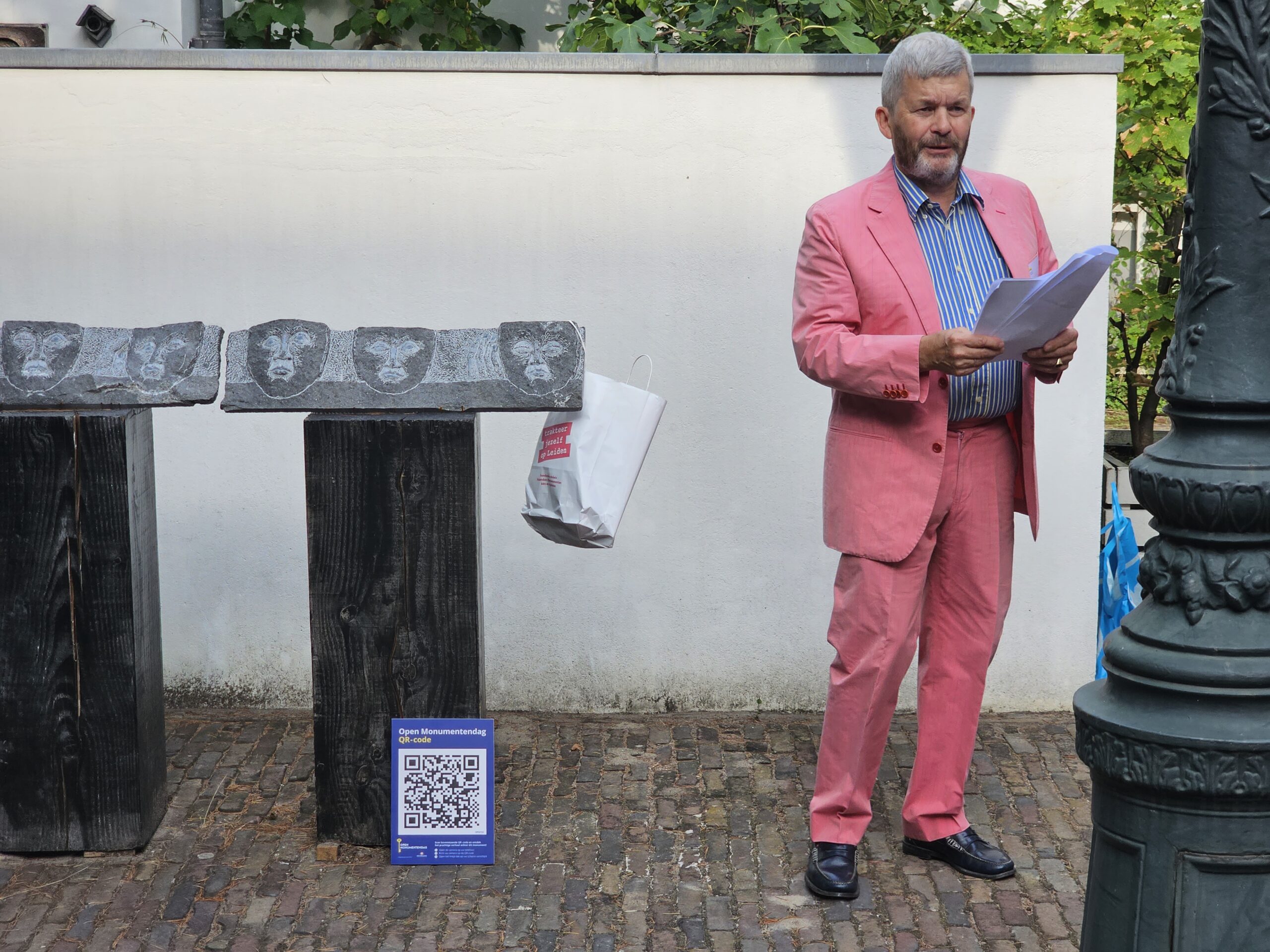 In het boekje een overzicht van alle panden met de openingstijden, maar ook de nodige achtergrondinformatie. De link met het thema levend erfgoed bijvoorbeeld. “De klodders verf van Jan Wolkers kan je hier nog zien zitten”, beweert Alexander Geertsema met grote stelligheid. Dat zou zomaar waar kunnen zijn. In de Tweede Wereldoorlog dook de bekende schilder-schrijver onder in het gebouw van Ars Aemula Naturae.