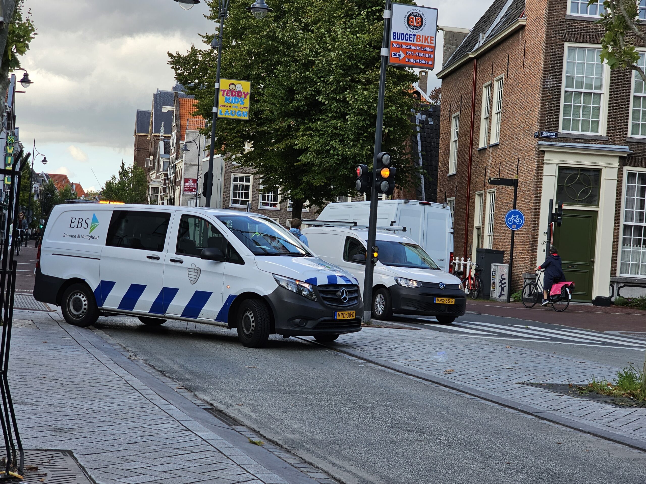 Er leek zaterdag aan het einde van de middag heel wat aan de hand op de Sint Jorissteeg. Auto werden tegen het verkeer in door de straat geleid door verkeersregelaars, waardoor er het nodige oponthoud ontstond op de Hooigracht.