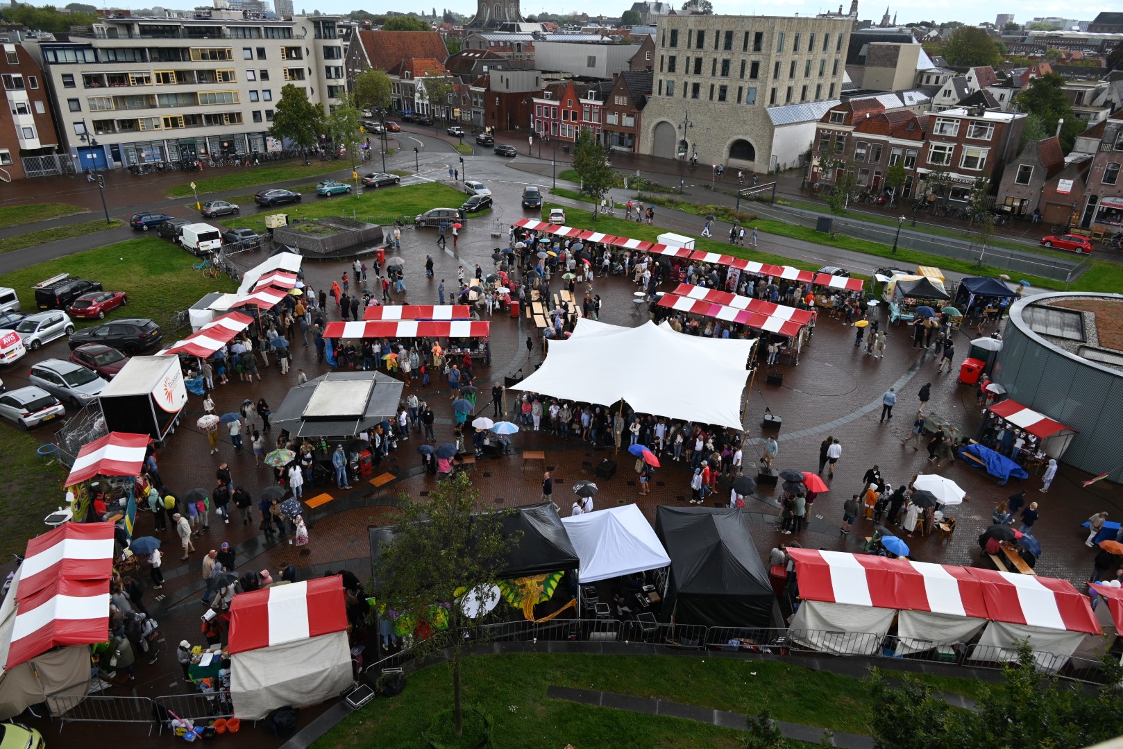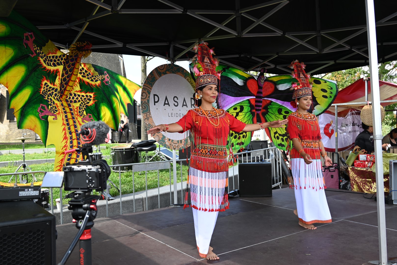 De tweede Pasar Leiden afgelopen zaterdag op de Lammermarkt werd goed bezocht. Op een regenbui na bleef het de hele middag en avond droog, waardoor het gezellig druk was.