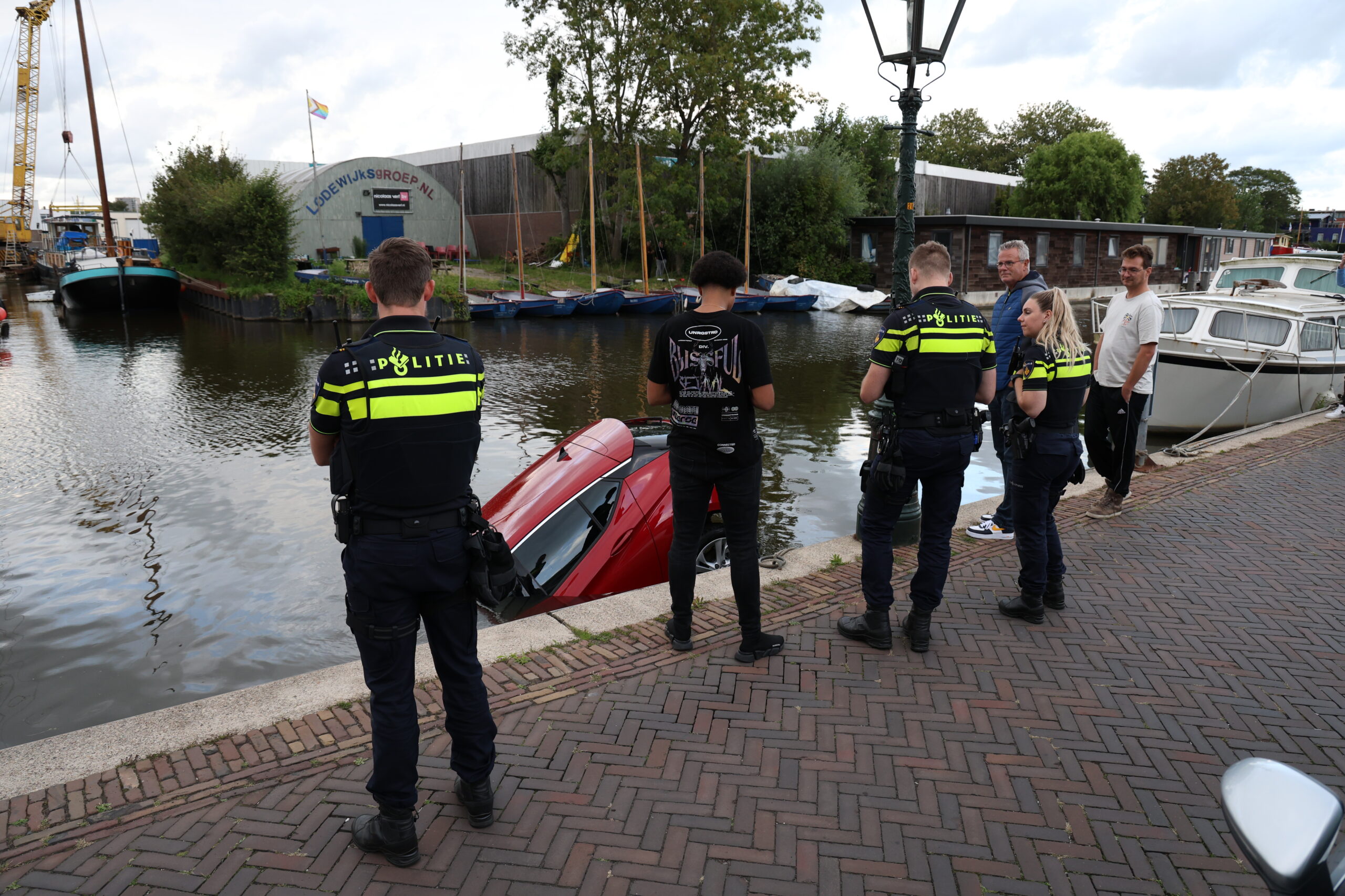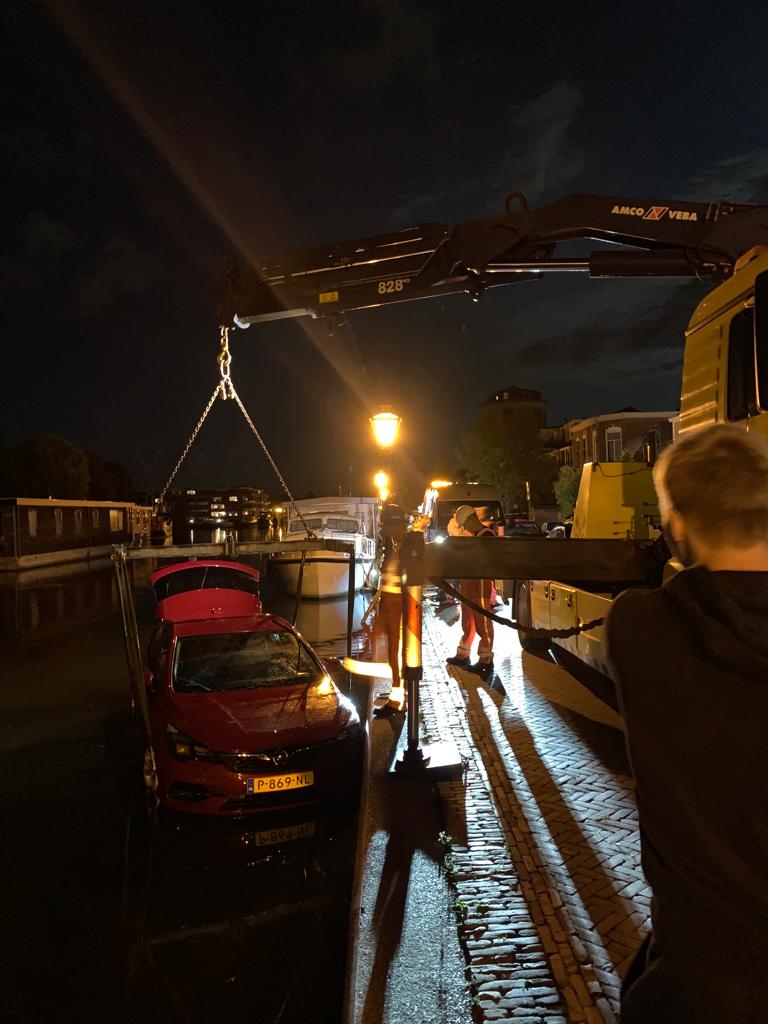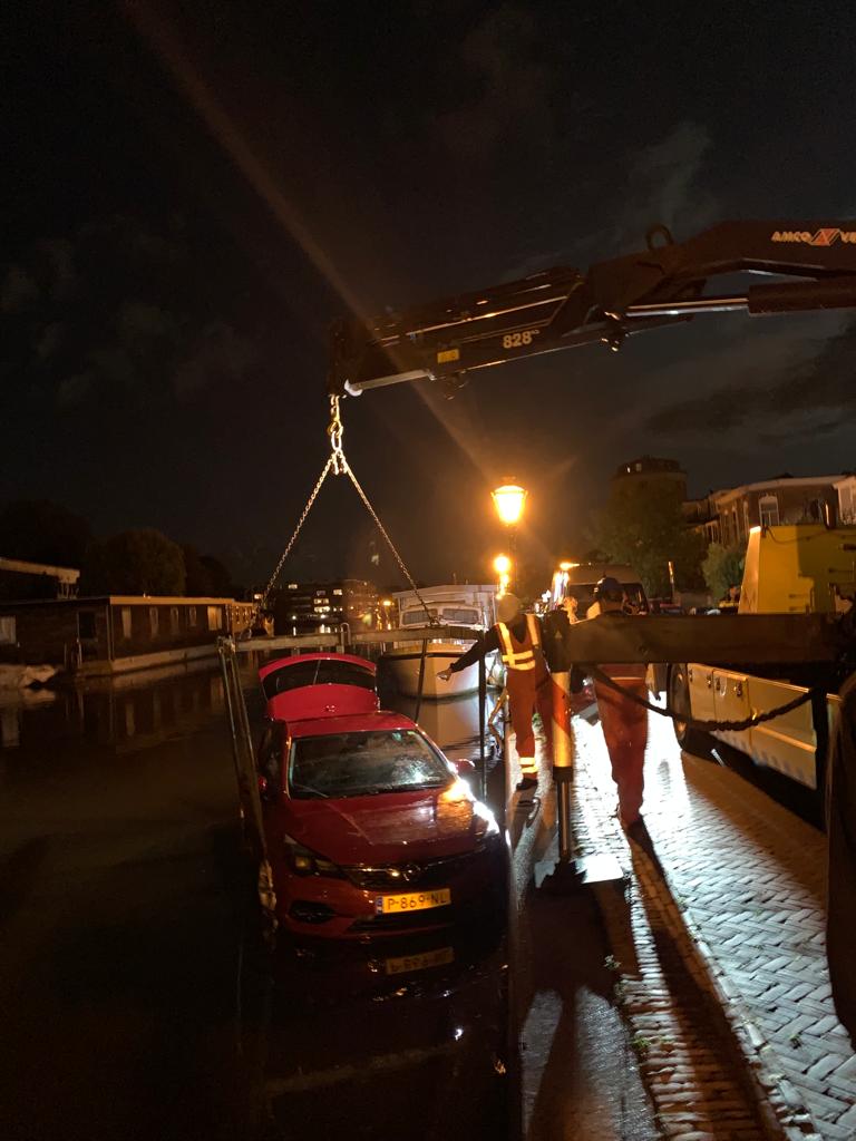 Een bergingsbedrijf is later op de avond ter plaatse gekomen om de auto uit het water van de Nieuwe Rijn te takelen. Dat gebeurde tussen 22.00 en 22.30 uur. Het incident trok het nodige bekijks van omwonenden en voorbijgangers.