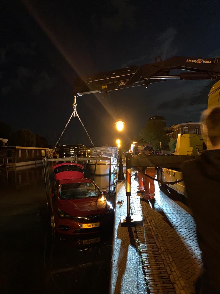 Een onfortuinlijke automobilist vergat woensdagavond rond 19.30 uur de handrem aan te trekken, waarop het voertuig het water van het Utrechtse Jaagpad in Leiden inrolde. De bestuurder zat er toen al niet meer in. Niemand haalde dan ook een nat pak of raakte gewond.