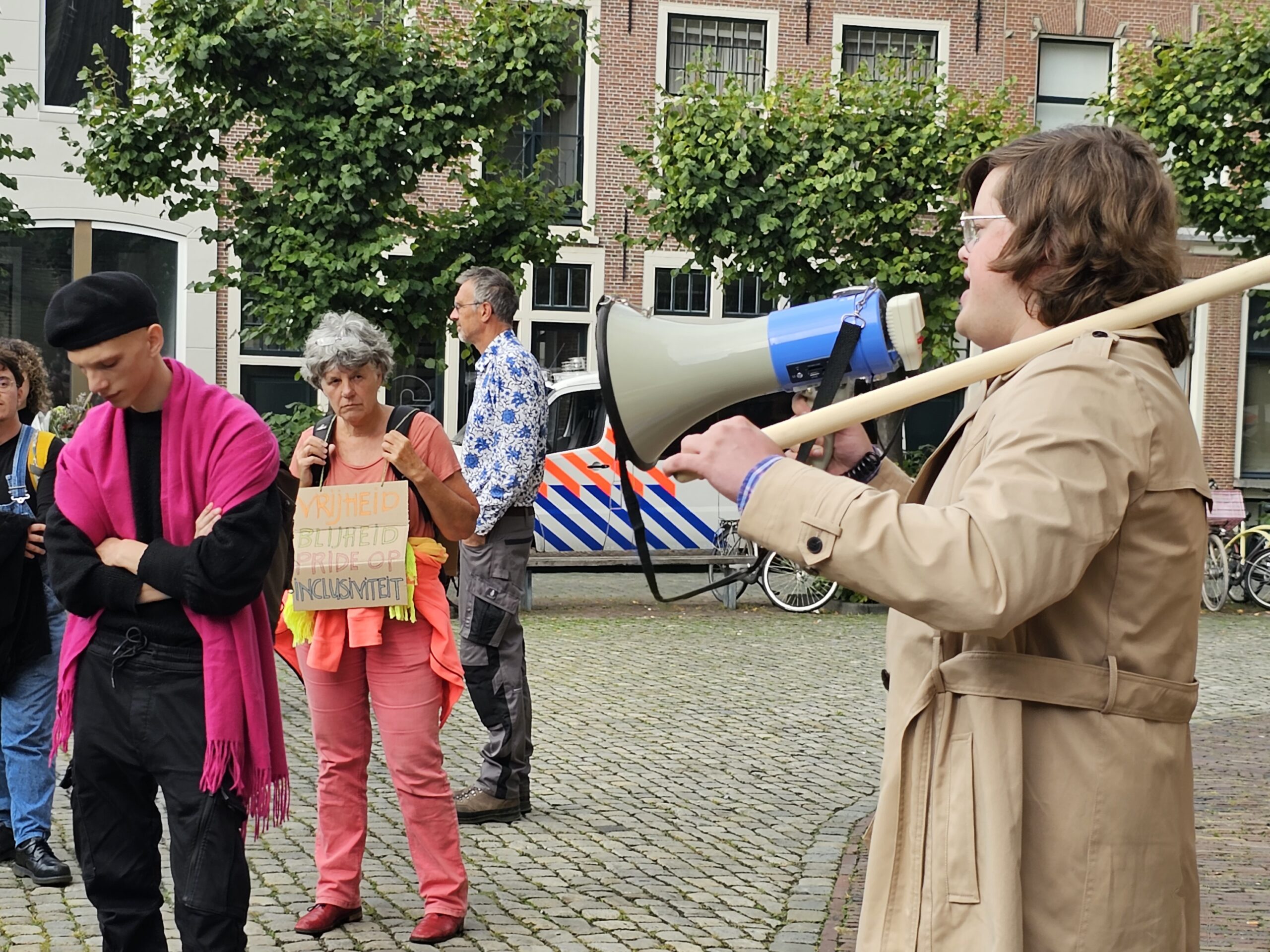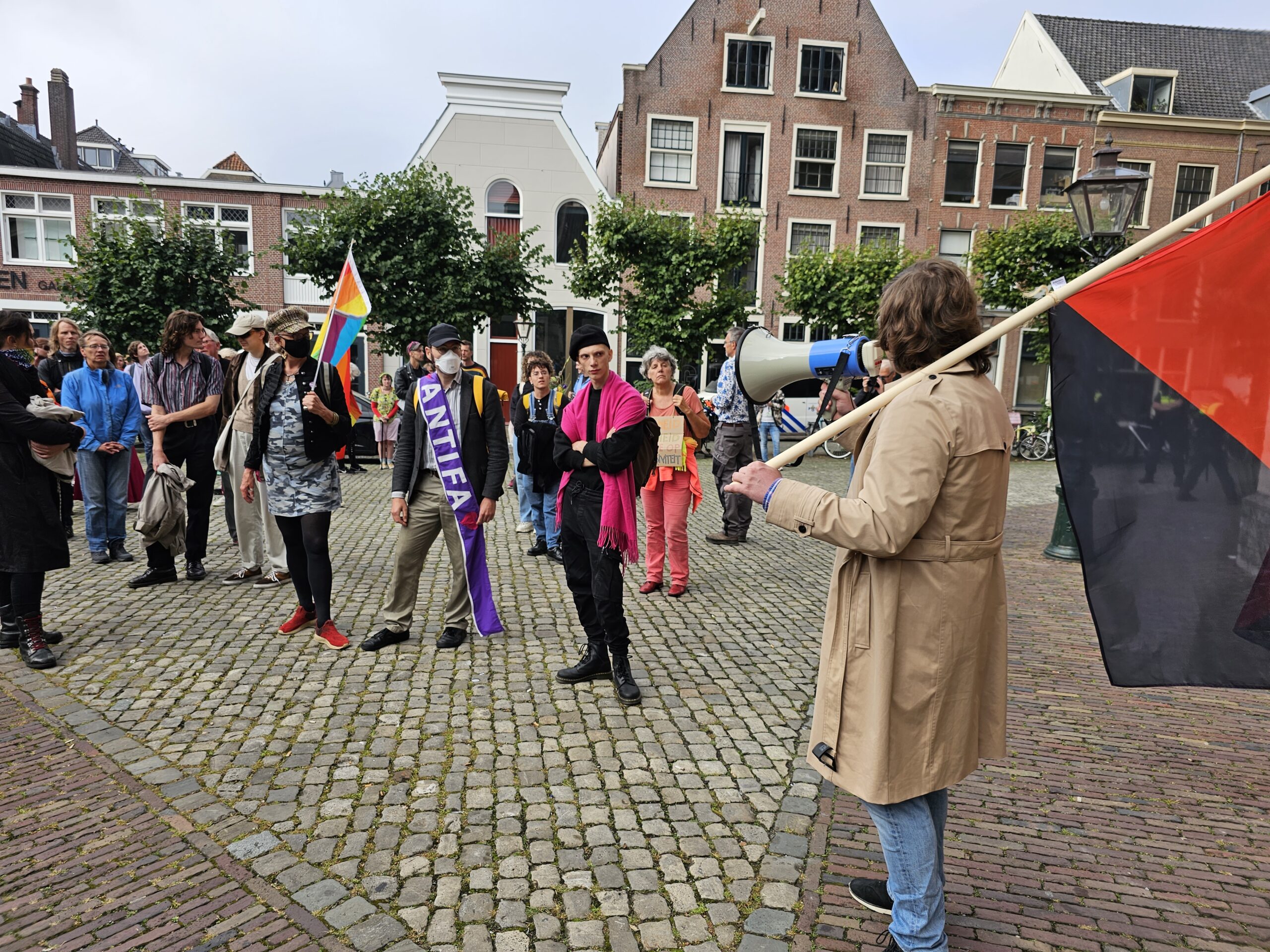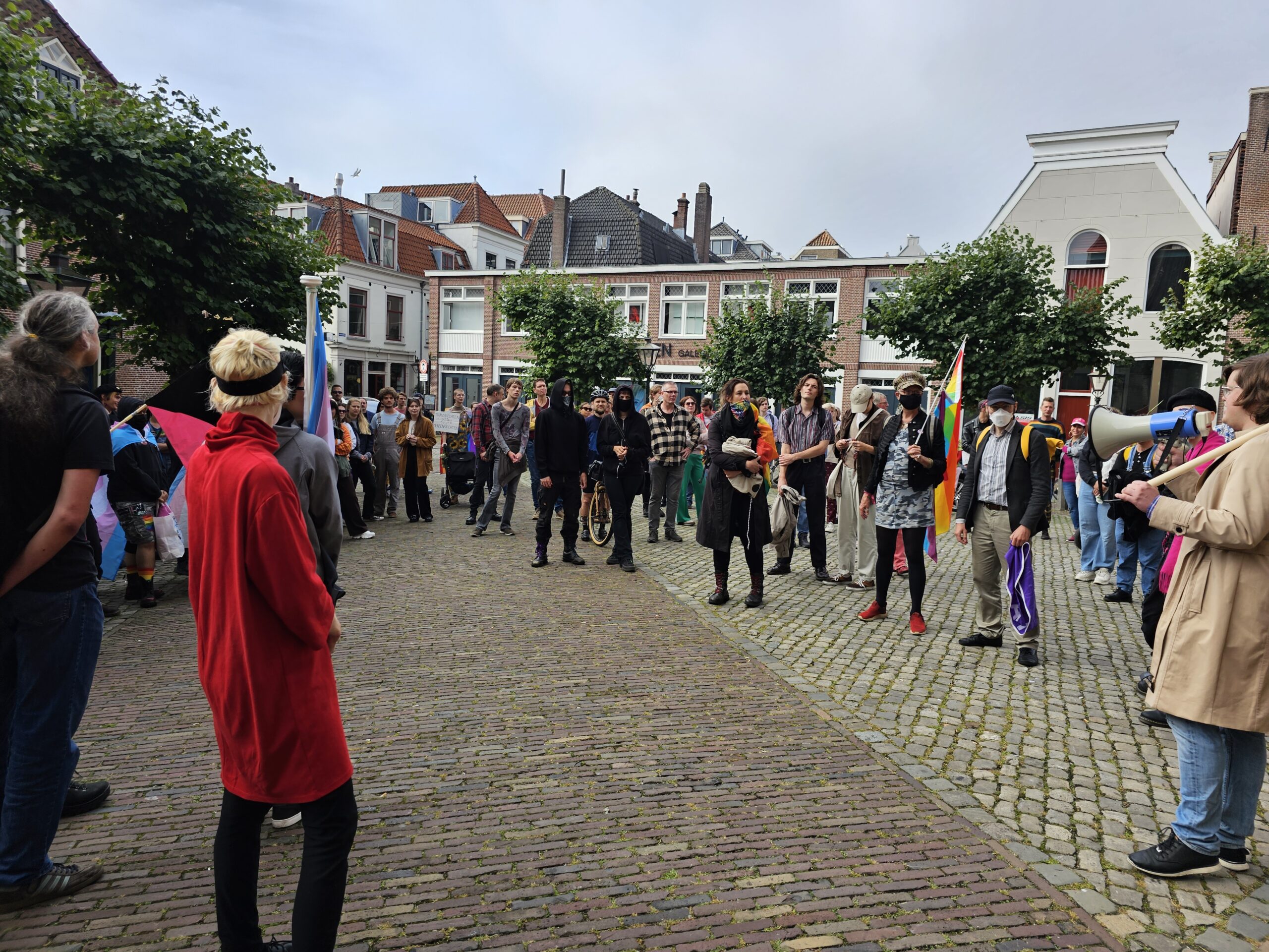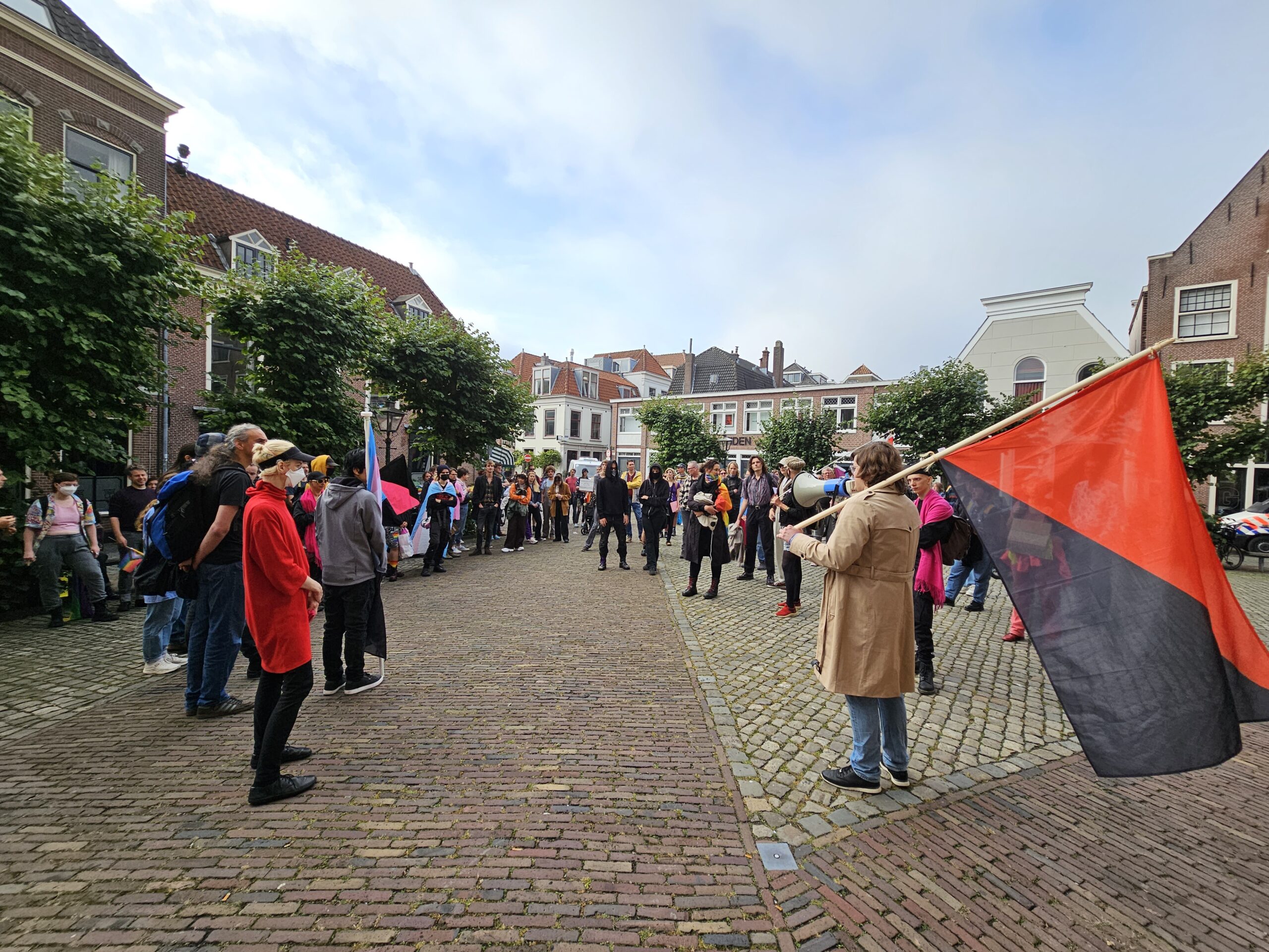 Al met al bleef het vrij rustig in het gebied. Een groep van meer dan honderd mensen van ‘Queer Pride March Leiden’ verzamelde zich rond de Hooglandse Kerk. Zaterdagmiddag gaan ze tijdens de Canal Pride Leiden demonstreren tegen het in hun ogen te commerciële karakter van dat evenement dat ze als ‘regenboog-kapitalisme’ omschrijven.