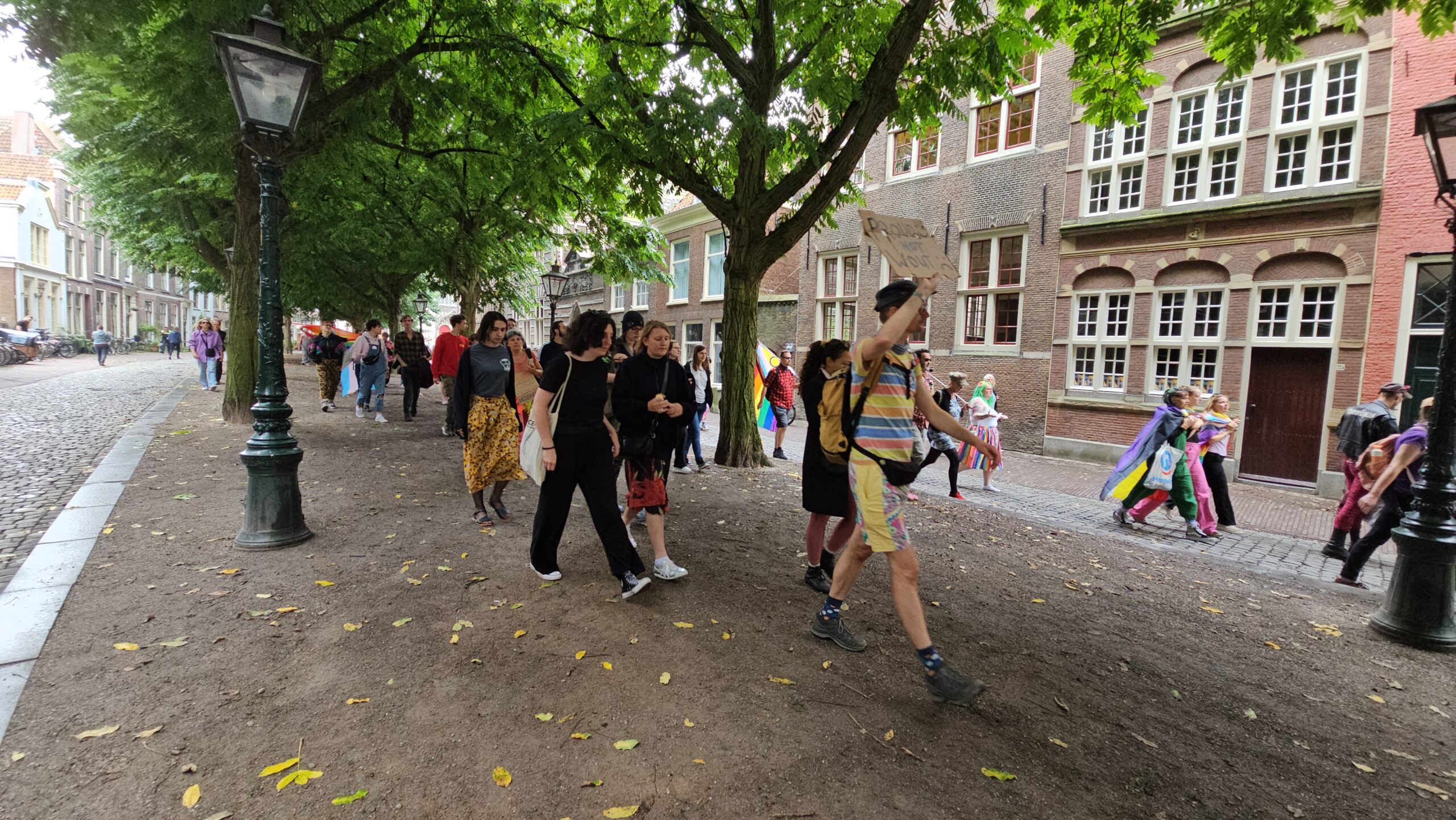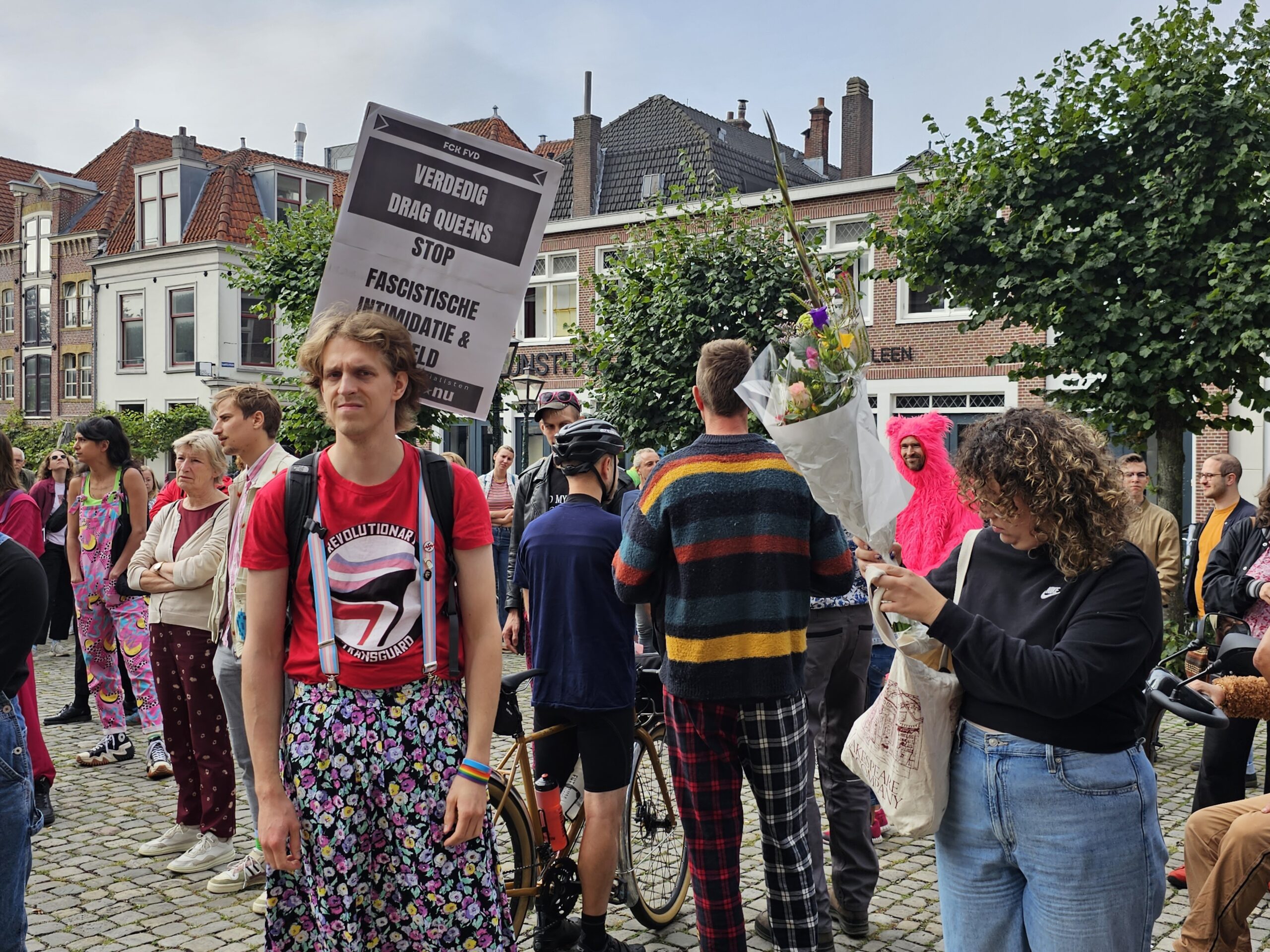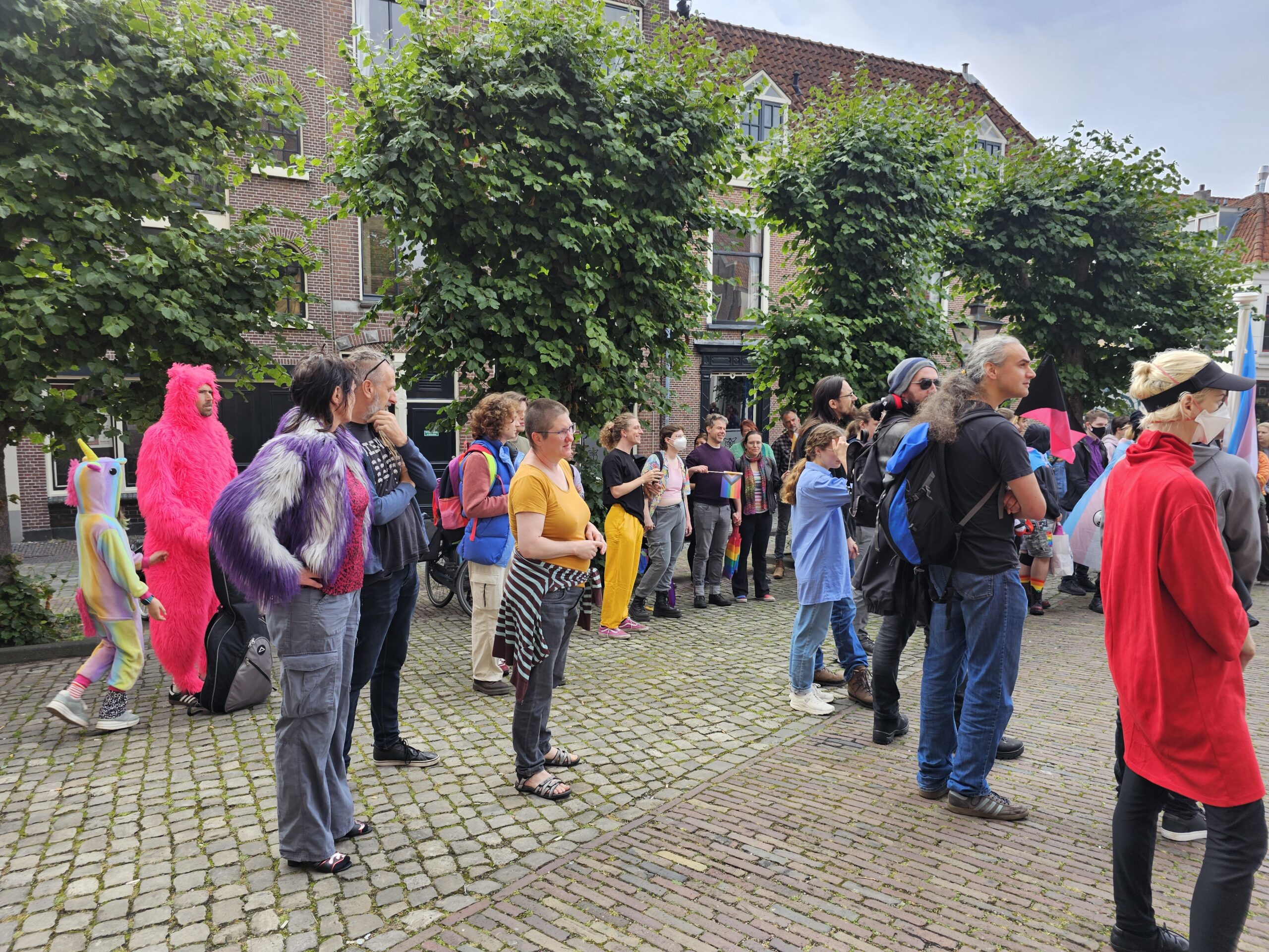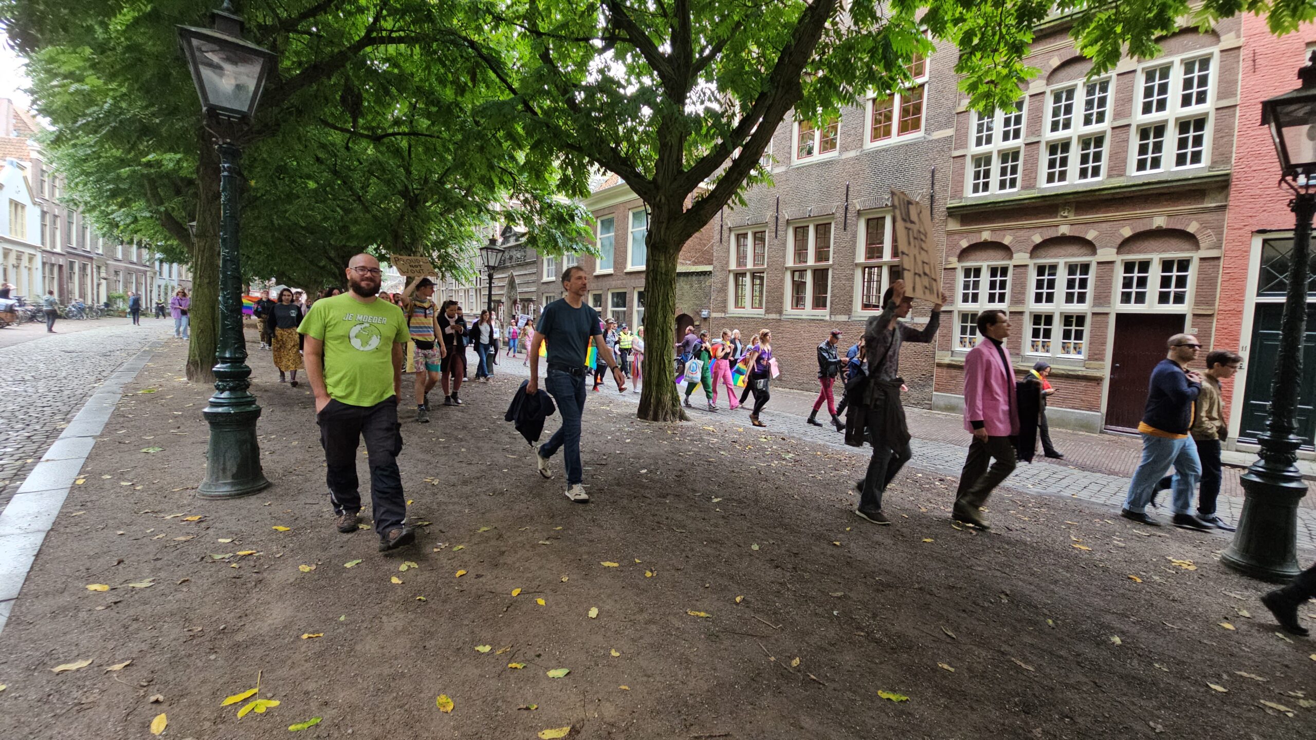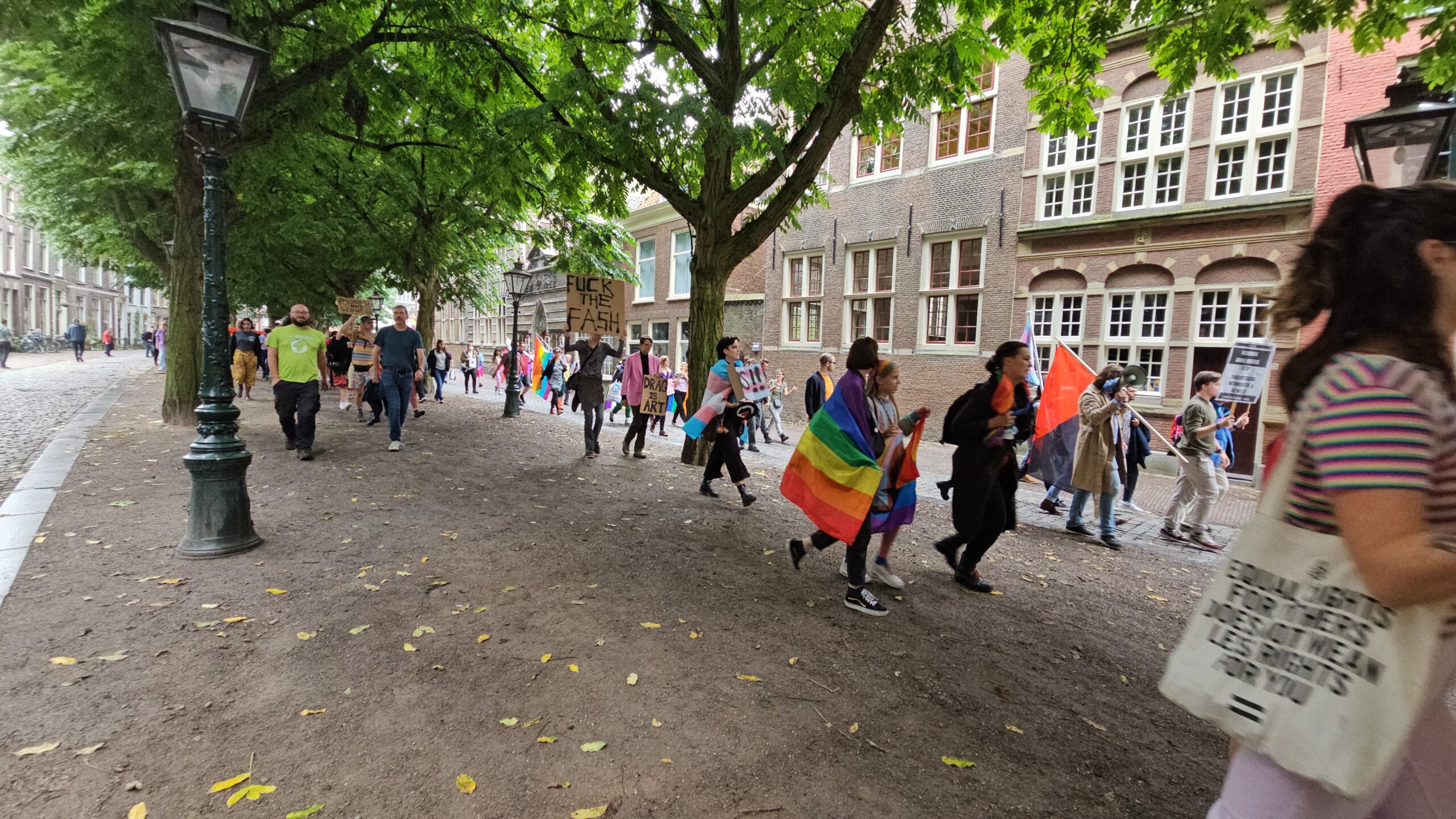 Al met al bleef het vrij rustig in het gebied. Een groep van meer dan honderd mensen van ‘Queer Pride March Leiden’ verzamelde zich rond de Hooglandse Kerk. Zaterdagmiddag gaan ze tijdens de Canal Pride Leiden demonstreren tegen het in hun ogen te commerciële karakter van dat evenement dat ze als ‘regenboog-kapitalisme’ omschrijven.