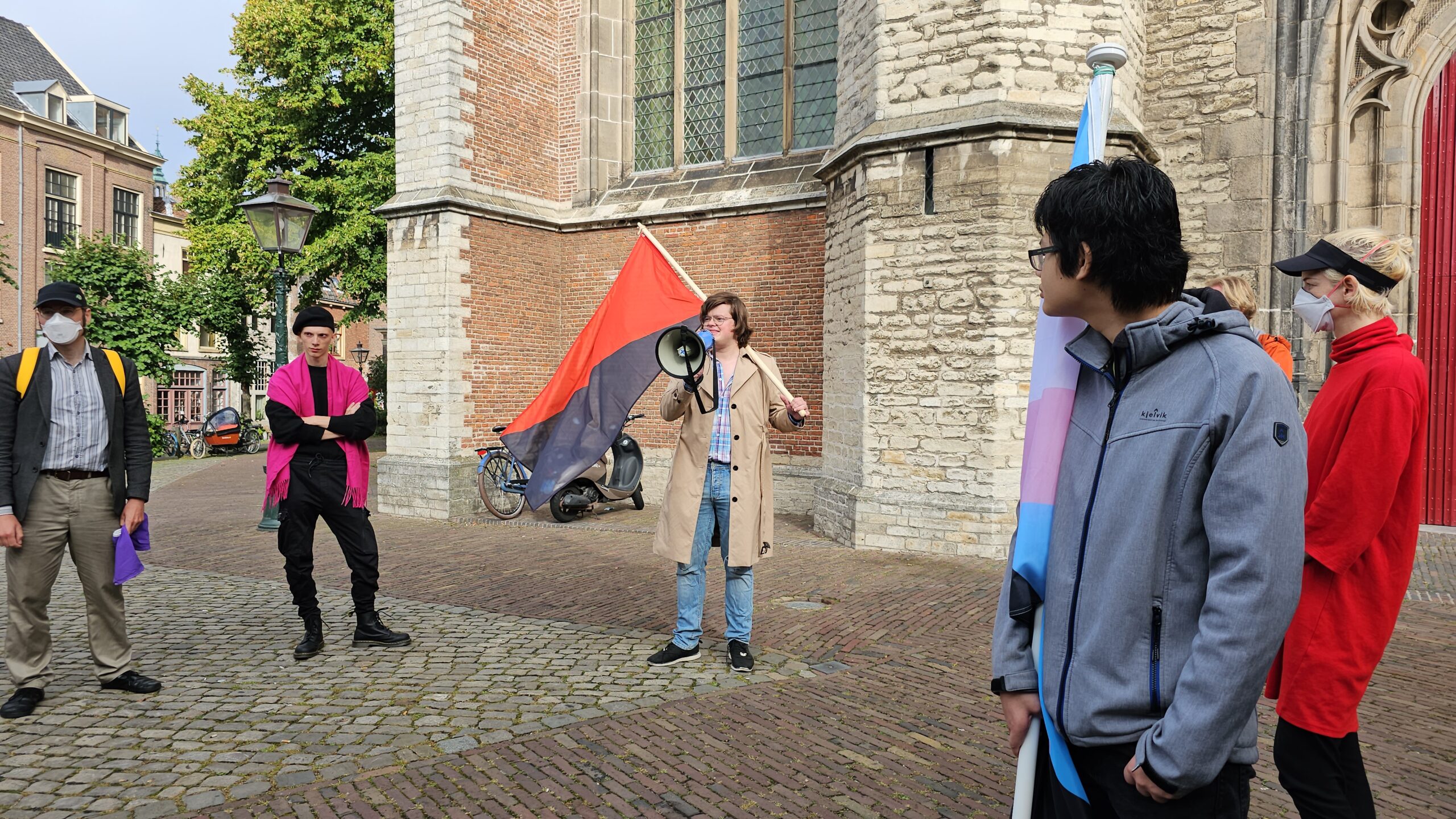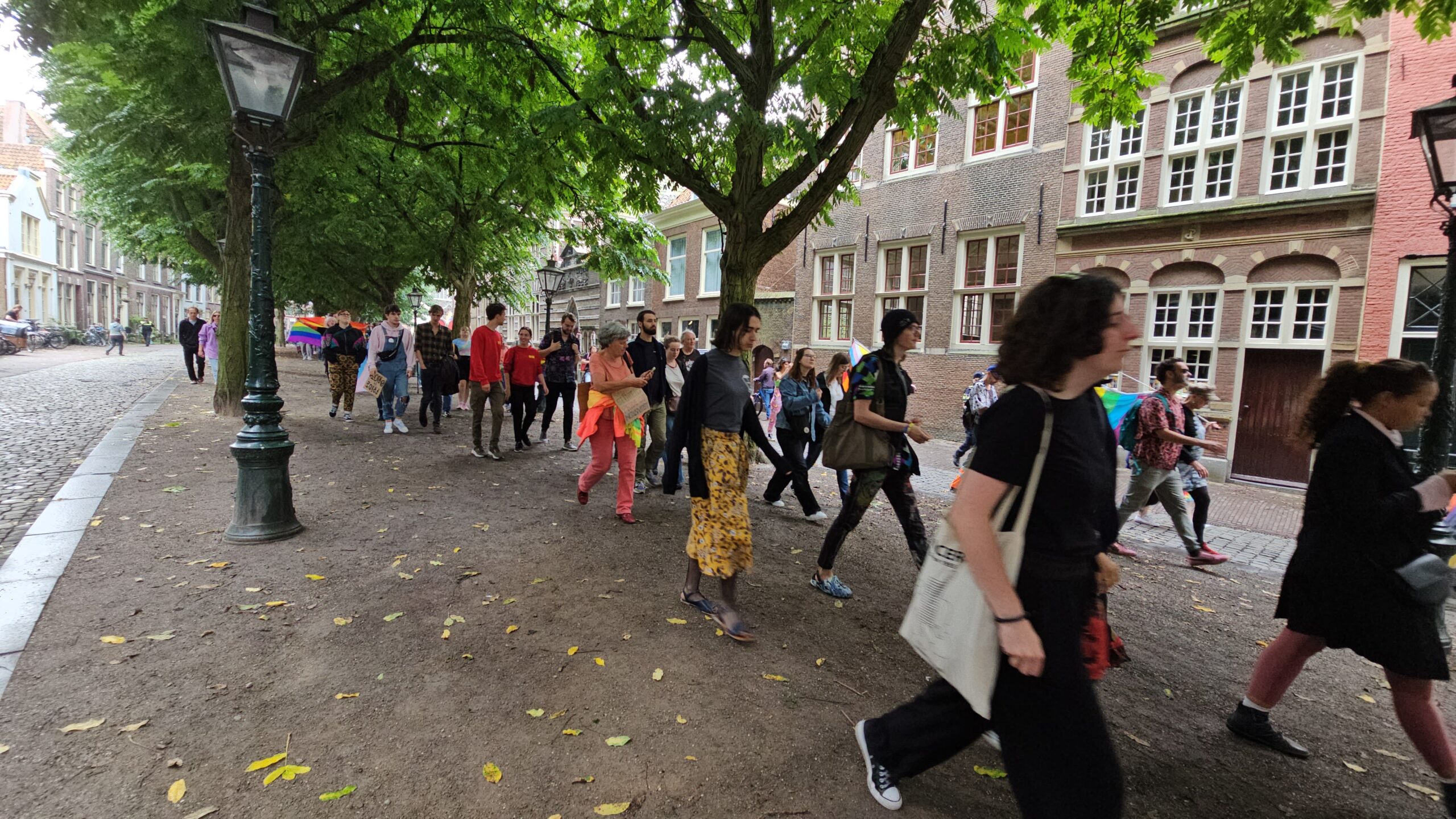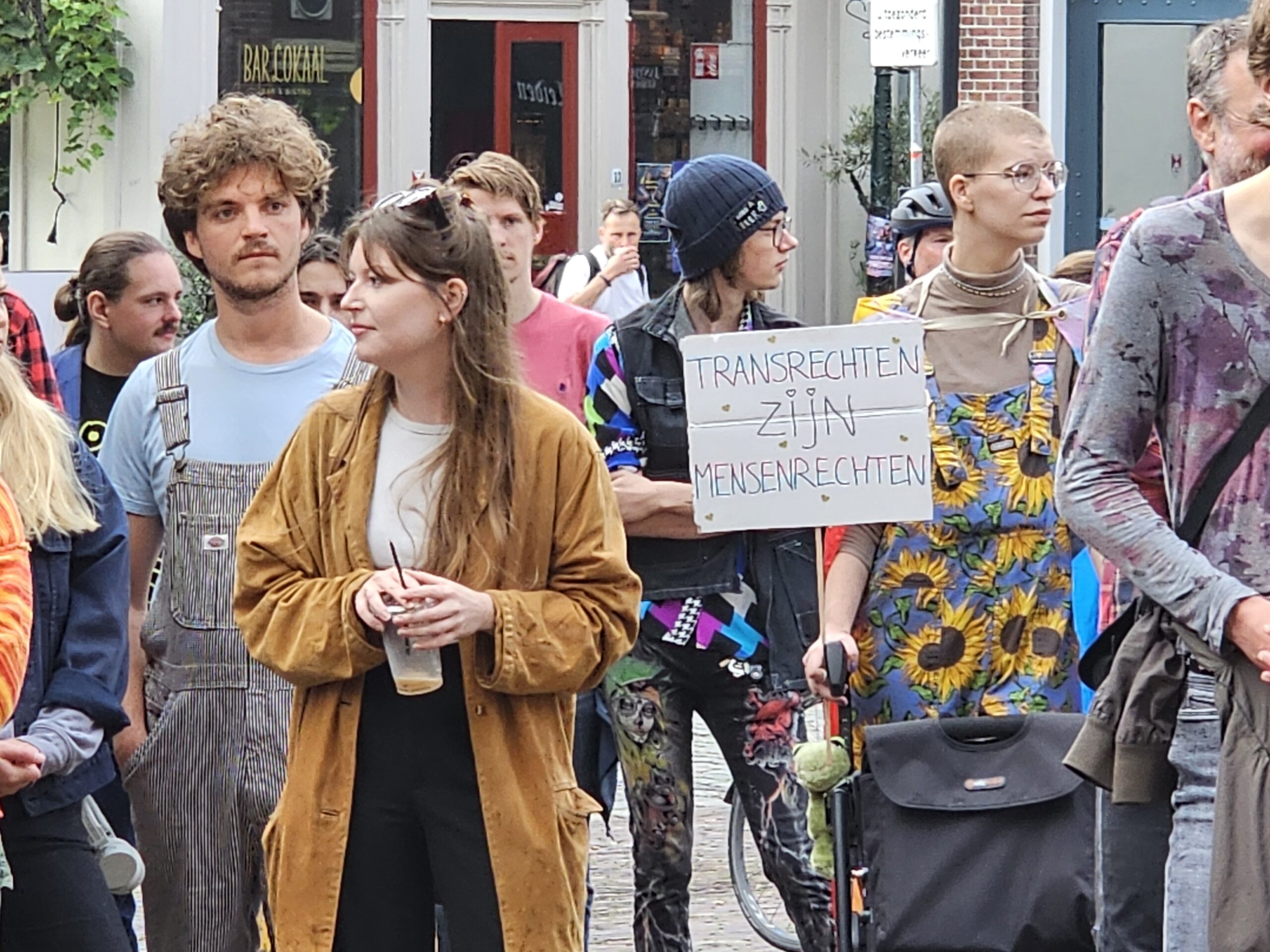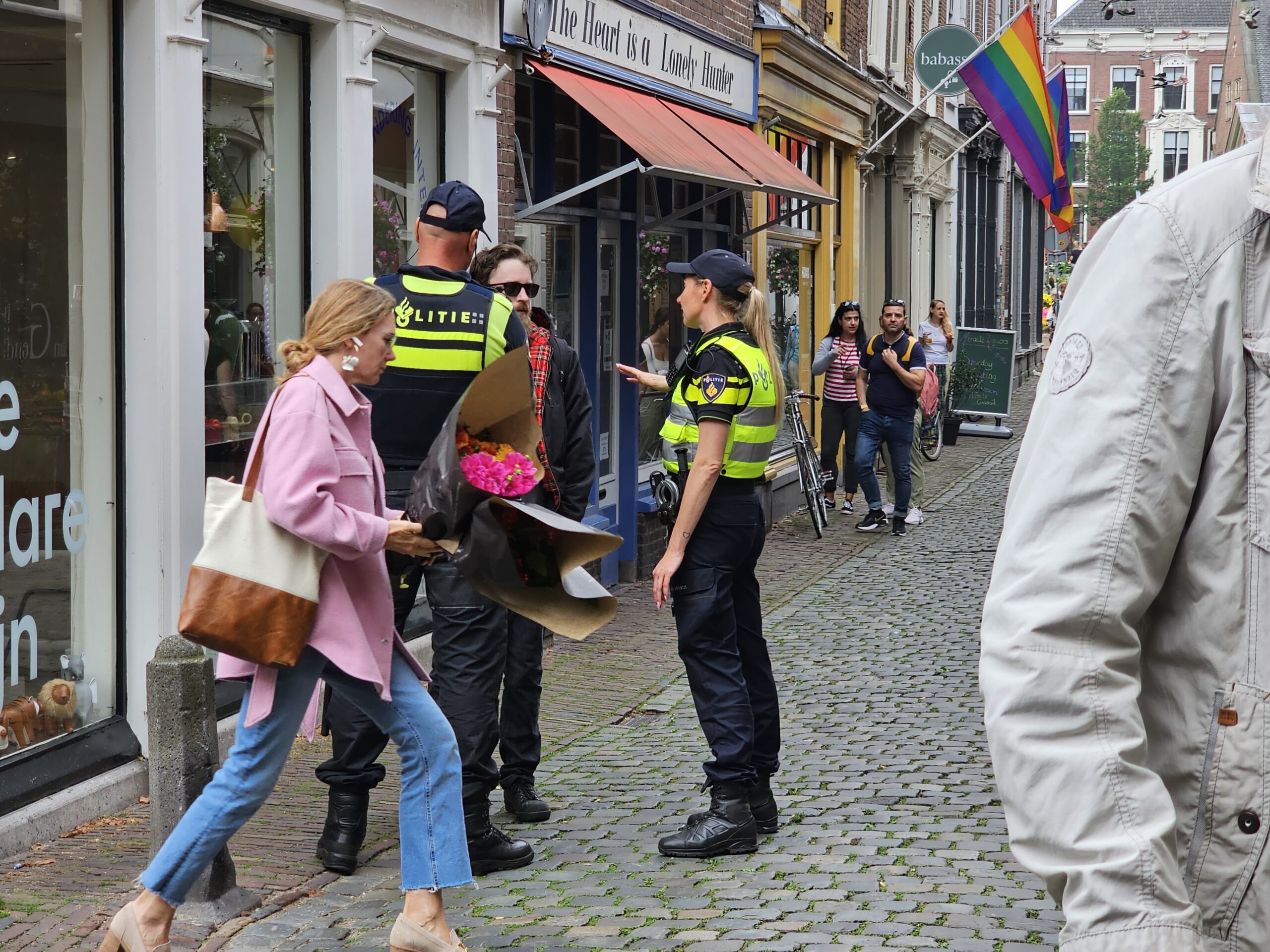 Al met al bleef het vrij rustig in het gebied. Een groep van meer dan honderd mensen van ‘Queer Pride March Leiden’ verzamelde zich rond de Hooglandse Kerk. Zaterdagmiddag gaan ze tijdens de Canal Pride Leiden demonstreren tegen het in hun ogen te commerciële karakter van dat evenement dat ze als ‘regenboog-kapitalisme’ omschrijven.