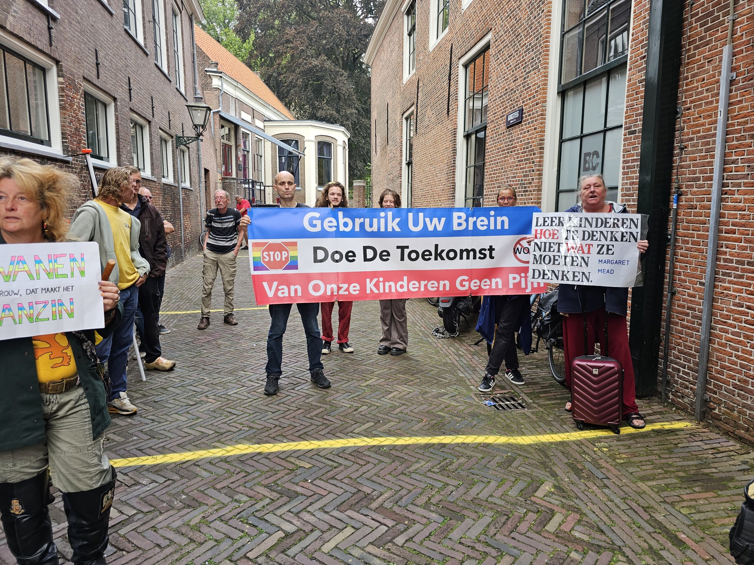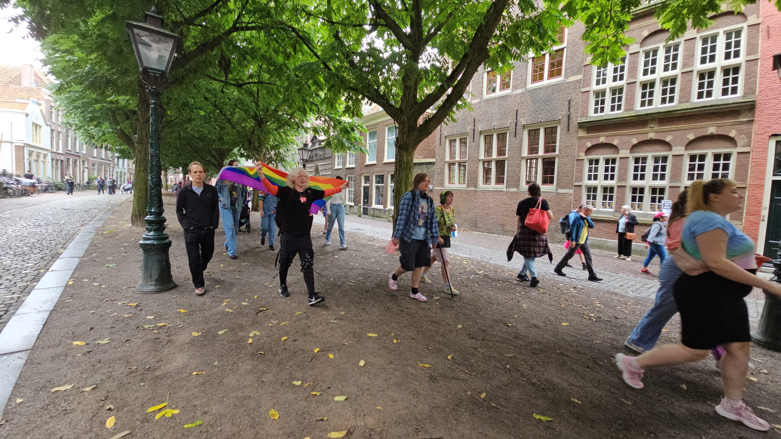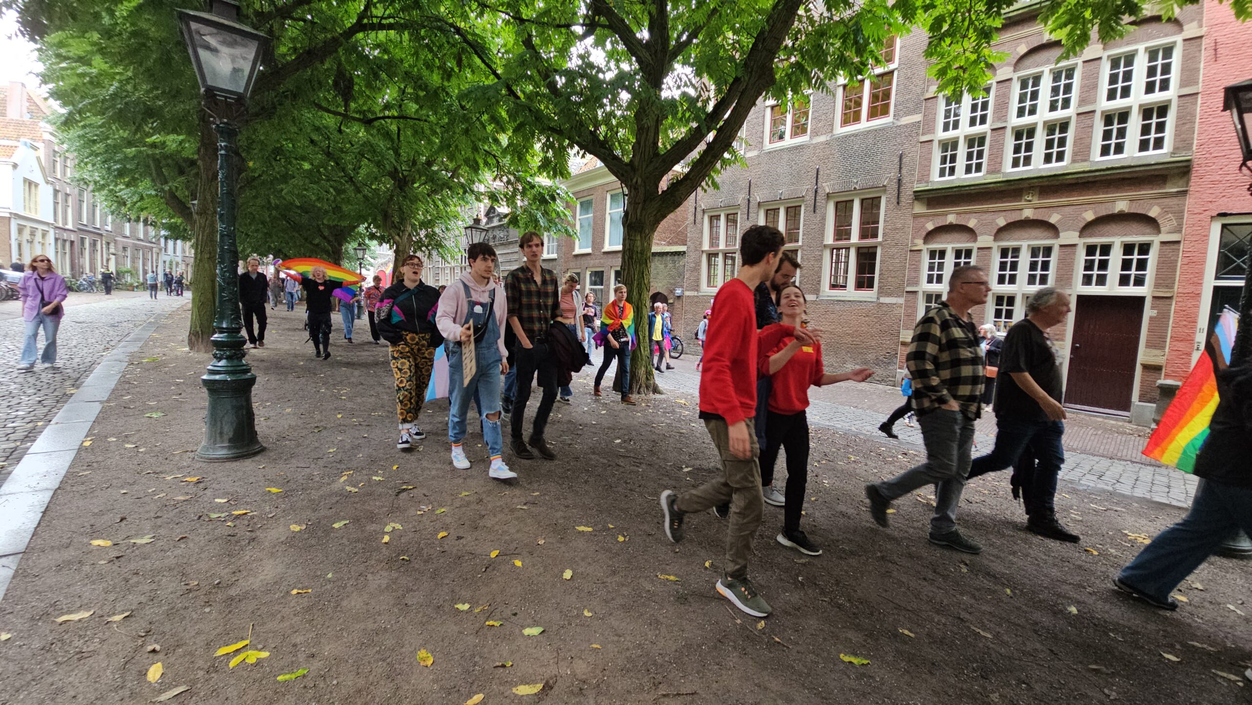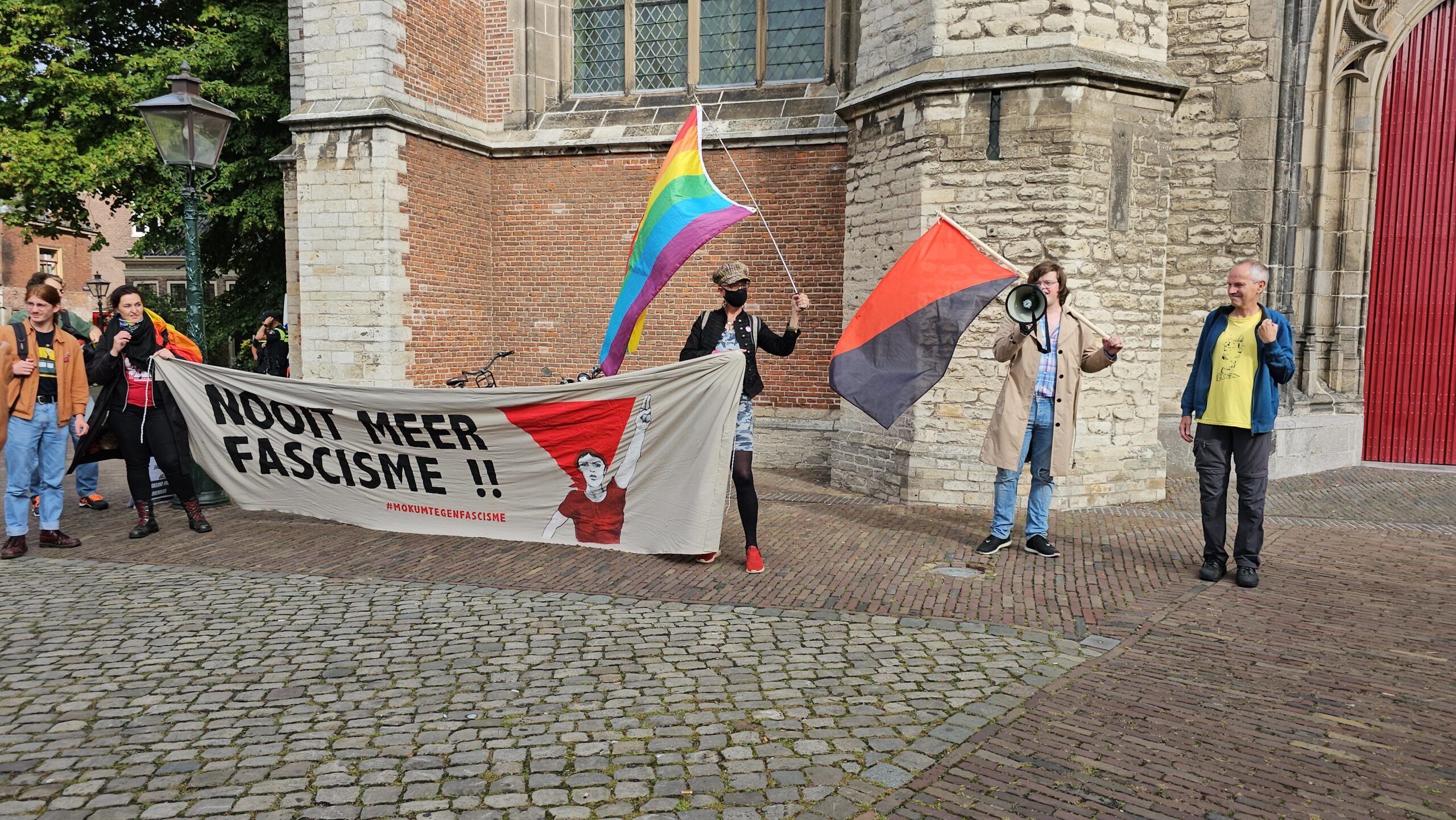 Al met al bleef het vrij rustig in het gebied. Een groep van meer dan honderd mensen van ‘Queer Pride March Leiden’ verzamelde zich rond de Hooglandse Kerk. Zaterdagmiddag gaan ze tijdens de Canal Pride Leiden demonstreren tegen het in hun ogen te commerciële karakter van dat evenement dat ze als ‘regenboog-kapitalisme’ omschrijven.