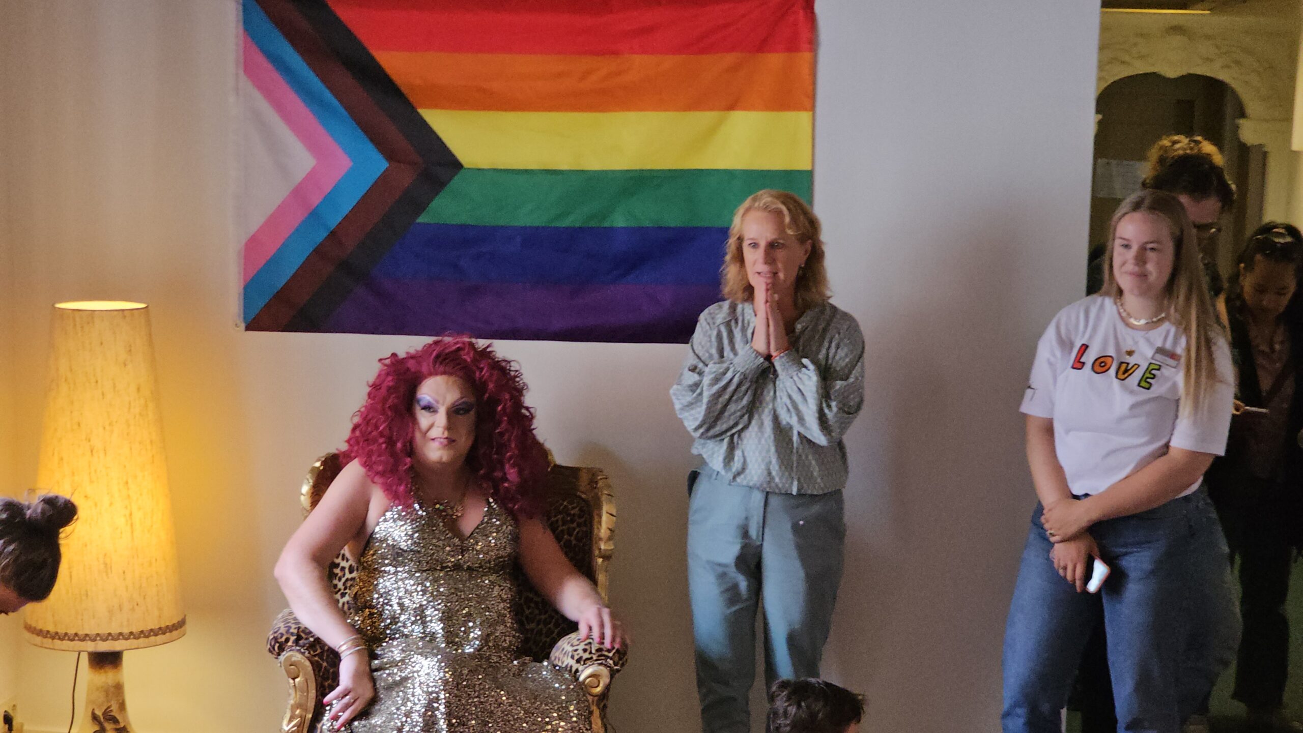 Dragqueen Dina Diamond las het verhaal Opa’s Pride voor aan kinderen.