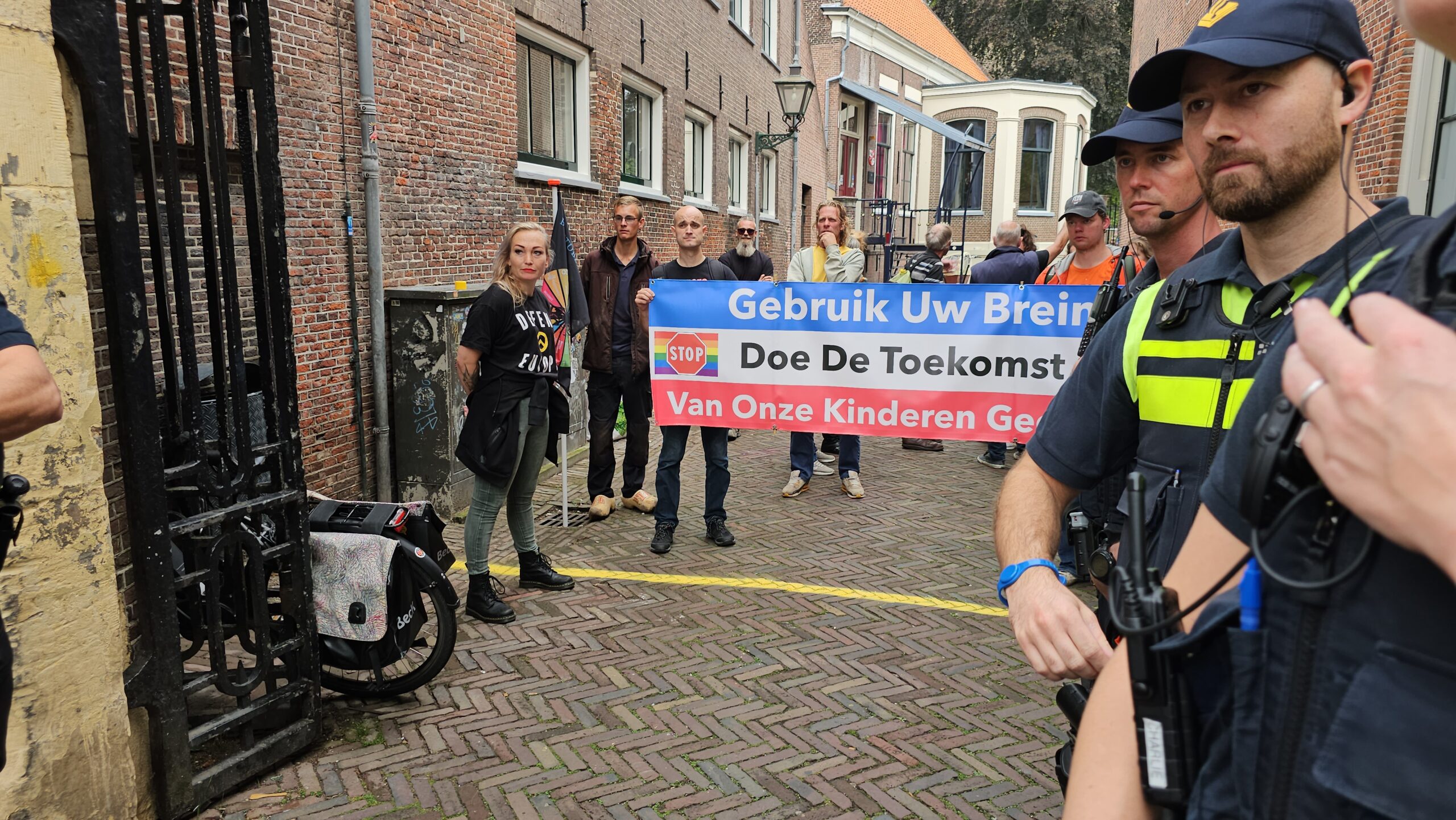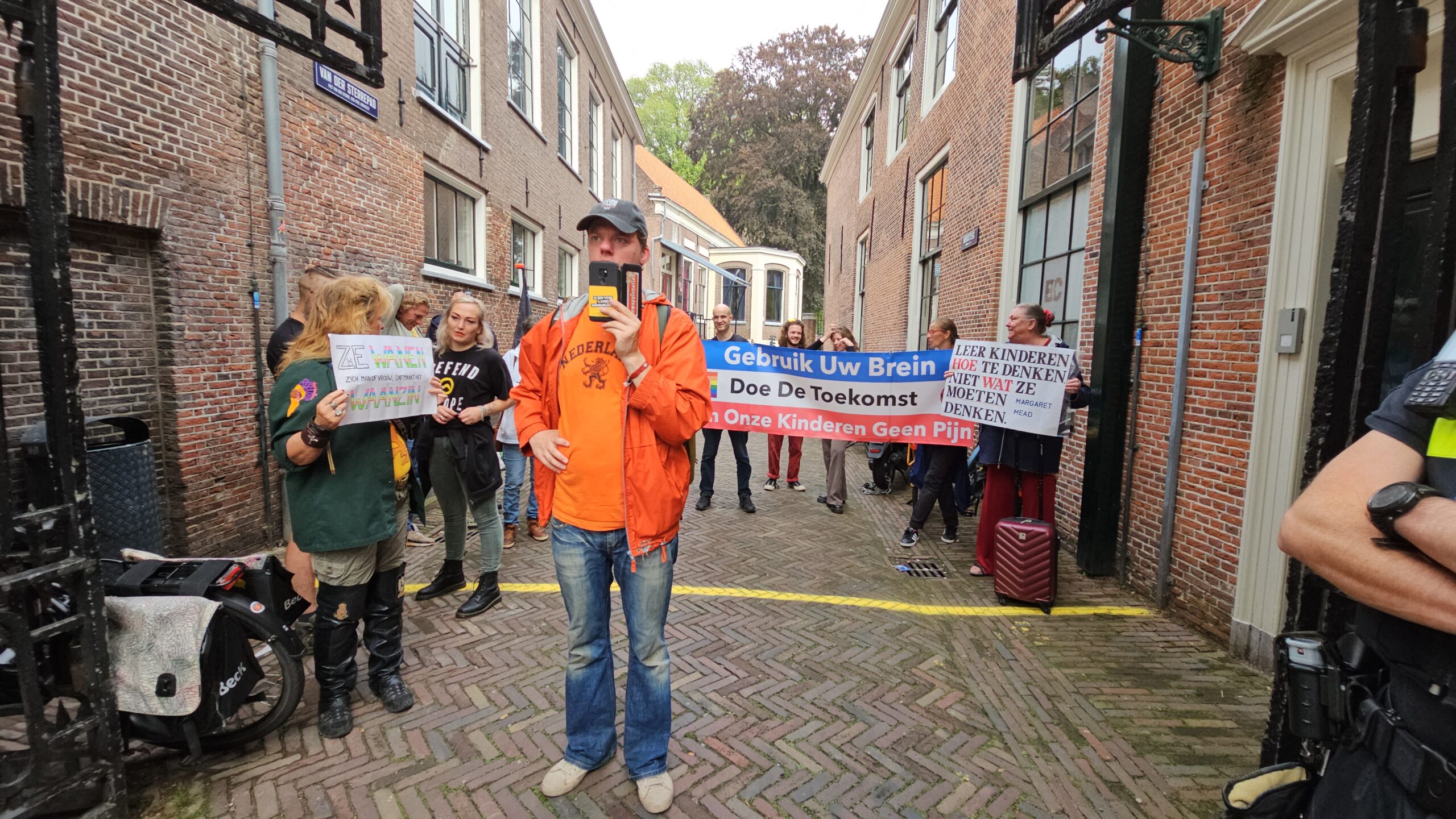 Na een flitsbezoek, blijkbaar alleen bedoeld als foto-momentje voor zijn achterban, verdween de FVD’er weer net zo snel als hij was gekomen. Zijn aanhang bestond uit een handjevol demonstranten die door de politie werden tegengehouden bij de poort van de Burcht.