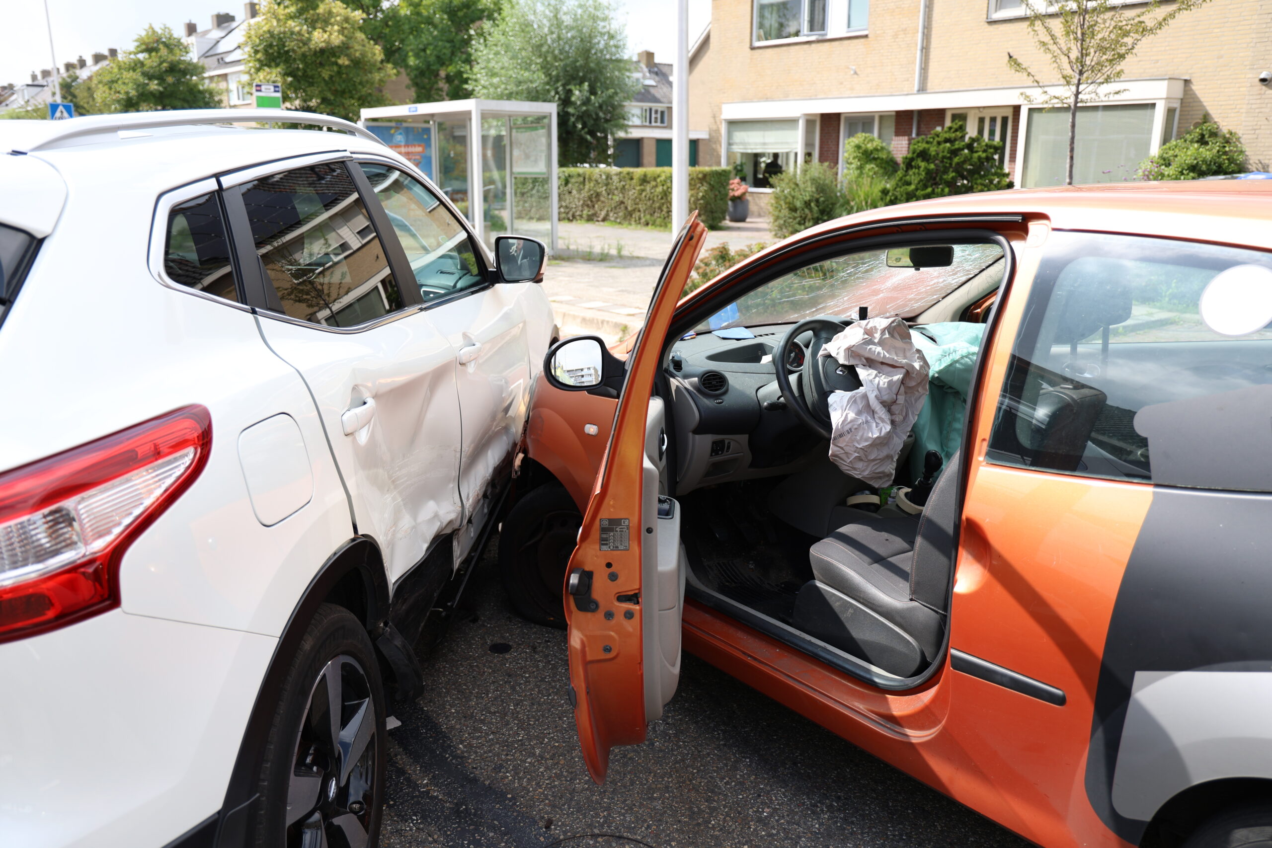 De aanrijding vond plaats op de Vronkenlaan in Leiderdorp. De bestuurder van de witte auto reed achteruit een parkeervak uit. Daarbij botste de oranje auto er bovenop.