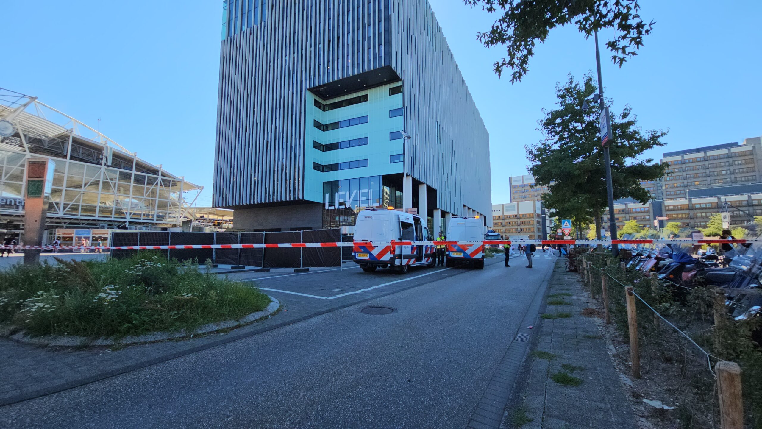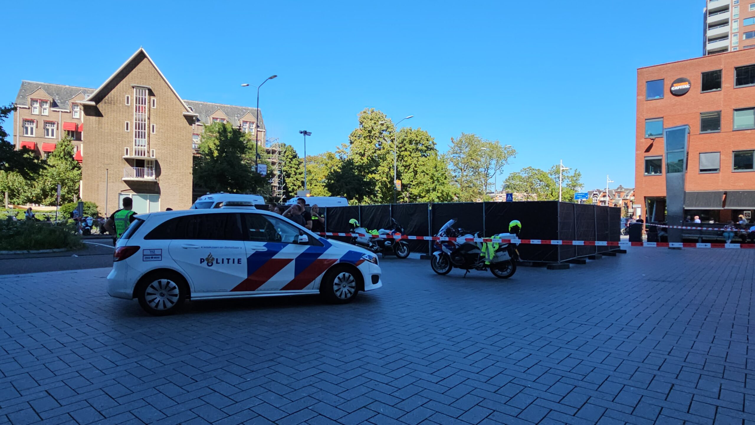 De politie heeft een deel van het plein met schermen afgezet. De aangrenzende Bargelaan en de Joop Walenkamptunnel werden afgesloten voor verkeer. Ook bussen moesten omrijden.