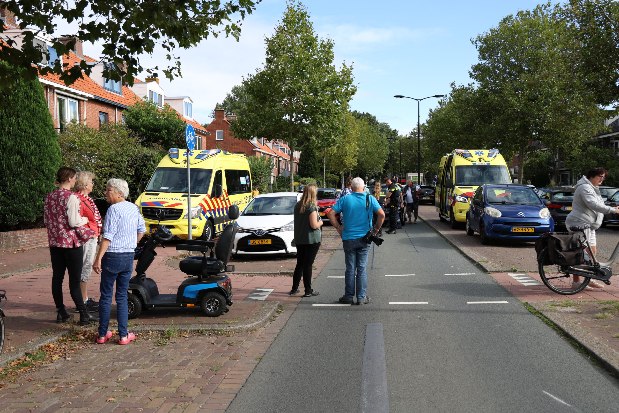 Na controle door ambulancepersoneel is de berijder van de scootmobiel overgebracht naar het ziekenhuis. De scooterrijdster raakte lichtgewond en kon haar reis vervolgen. Het verkeer op de Koningin Julianalaan in de richting van Leidschendam was enige tijd gestremd.