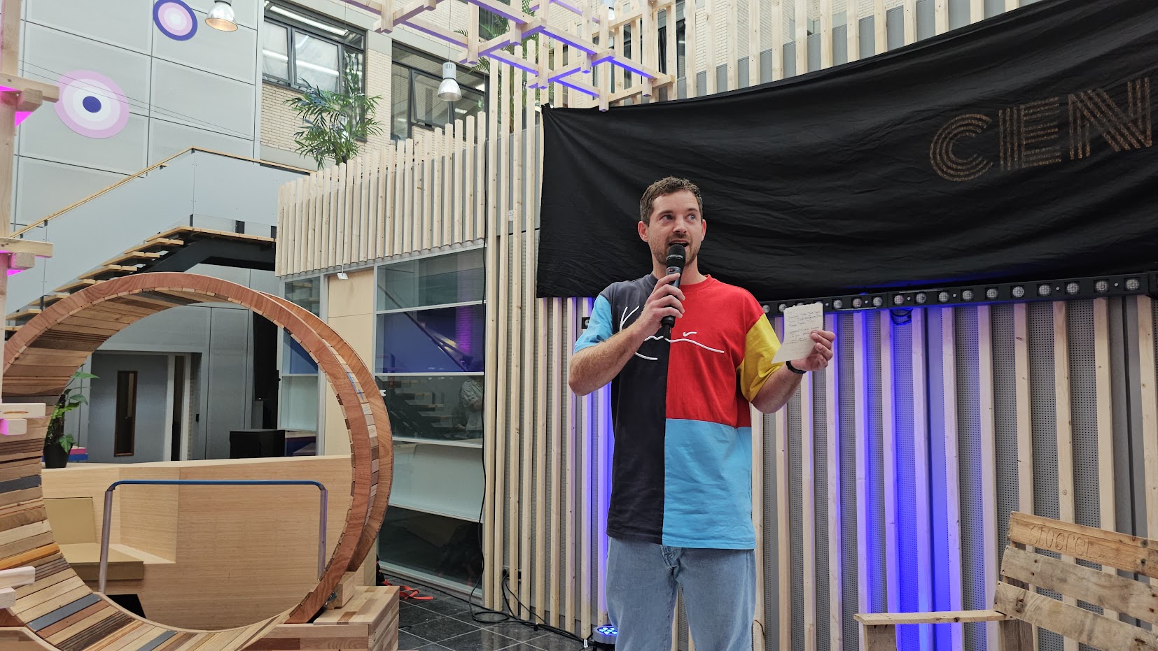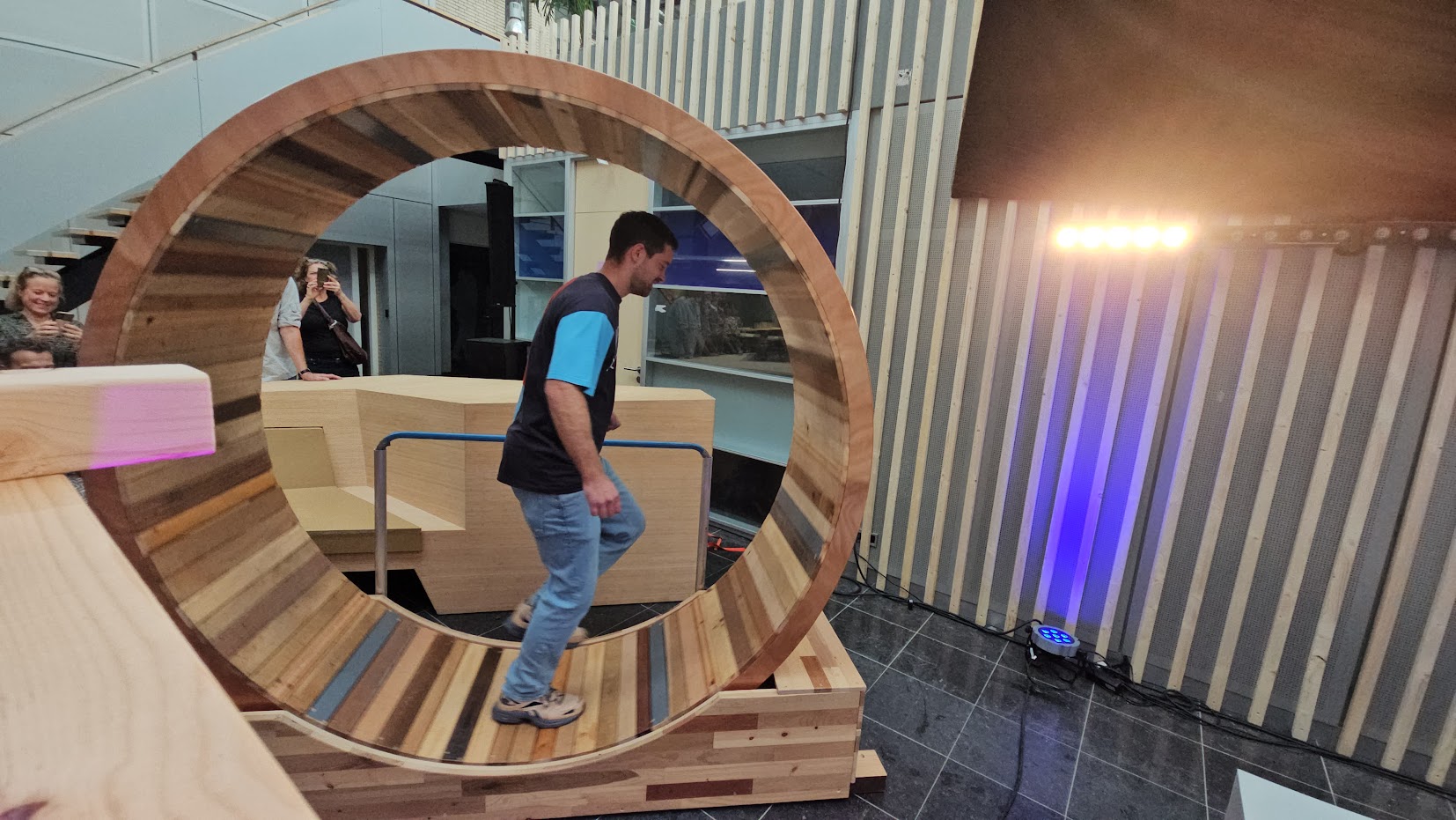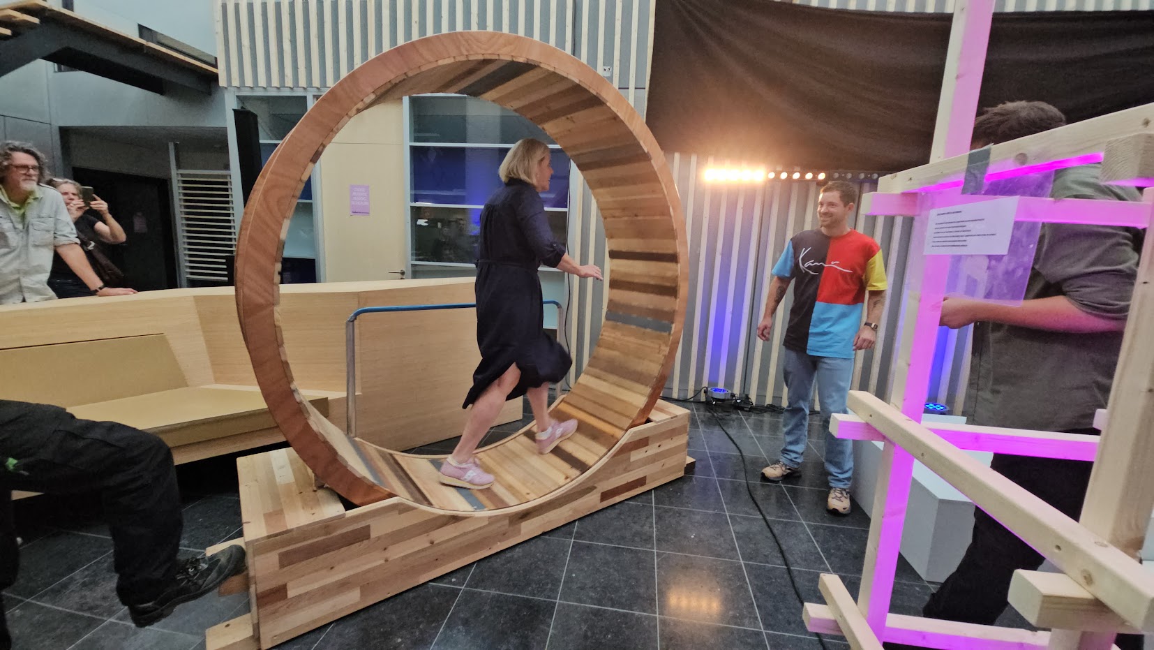De openingshandeling werd gedaan door een drietal betrokkenen die in een enorm hamsterwiel elektriciteit opwekten. Daarmee werd de verlichting onder een doek lampje voor lampje ontstoken. Onder hen cultuurwethouder Yvonne van Delft die erg blij is met het initiatief, maar tegelijkertijd ook ziet dat het steeds lastiger wordt om zulke plekken te vinden in het aangeharkte Leiden. De rafelrandjes worden in hoog tempo herontwikkeld. “Een permanente plek voor een broedplaats als de Makerscentrale zou ik als cultuurwethouder heel graag willen, maar dat wordt wel lastig”, zo voorspelt ze.