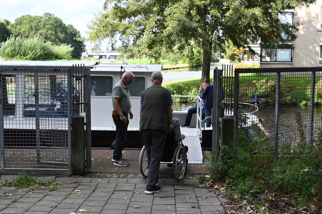 Met hulp van de brandweer werd de rolstoelbrug van de boot snel hersteld en kon iedereen toch aan boord komen van het rondvaartbootje. Het rondvaartbootje van Topaz Zuydtwijck wordt soms verhuurd aan Libertas Leiden.
