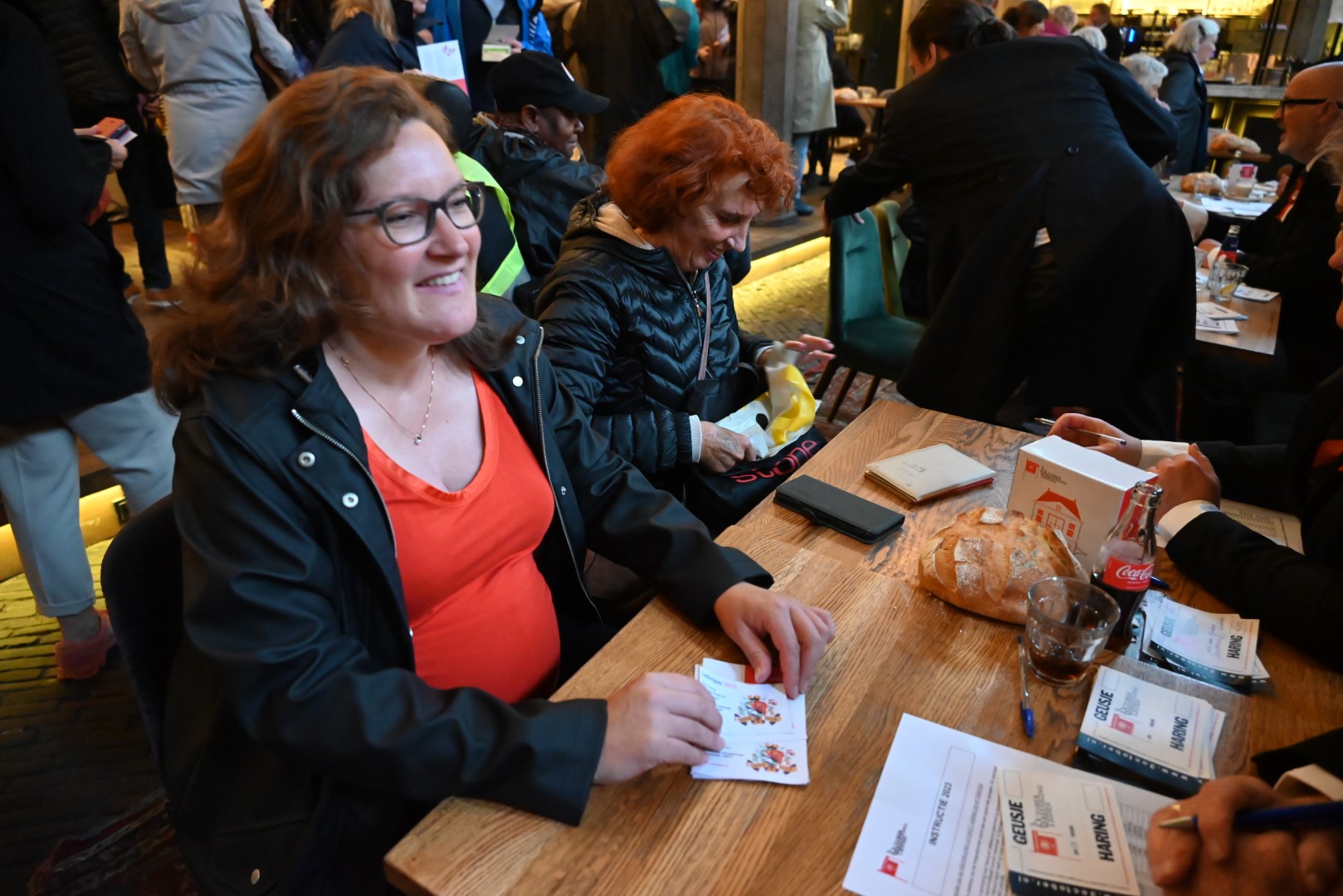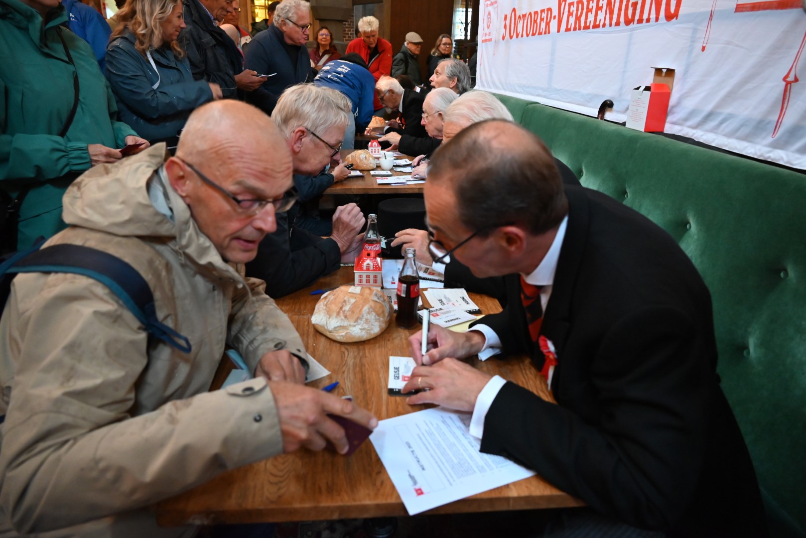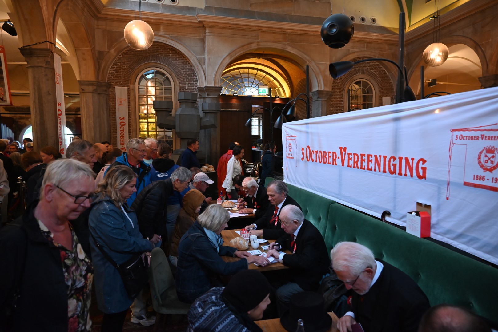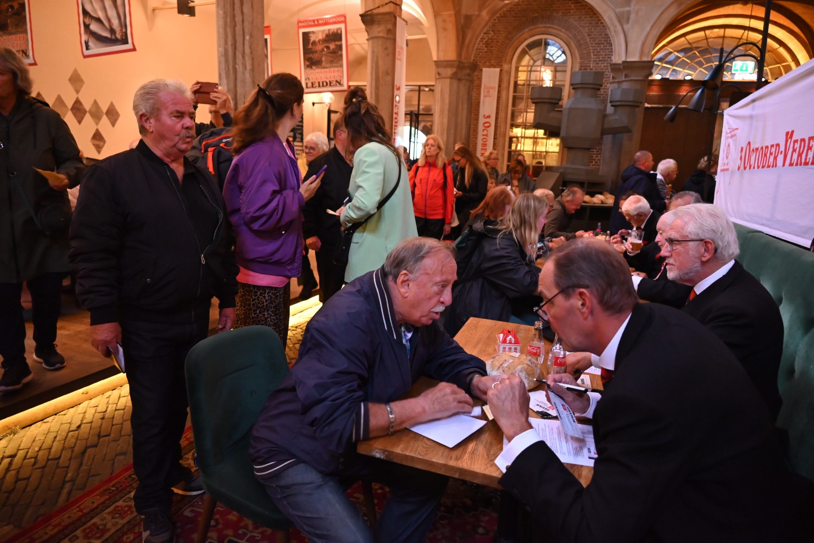 Maar liefst 2659 mensen staan op 3 oktober in de rij om de 25.498 haringen en bijbehorende Geusjes af te halen. Tijdens de inschrijving in De Waag werden ook 6386 hutspotbonnen verstrekt voor de Hutspotmaaltijd op maandag 2 oktober aan de Hooglandse Kerkgracht. Het tafeltje waar de meeste inschrijvingen plaatsvonden, werd bemand door commissaris Arthur Niggebrugge van de 3 October Vereeniging.