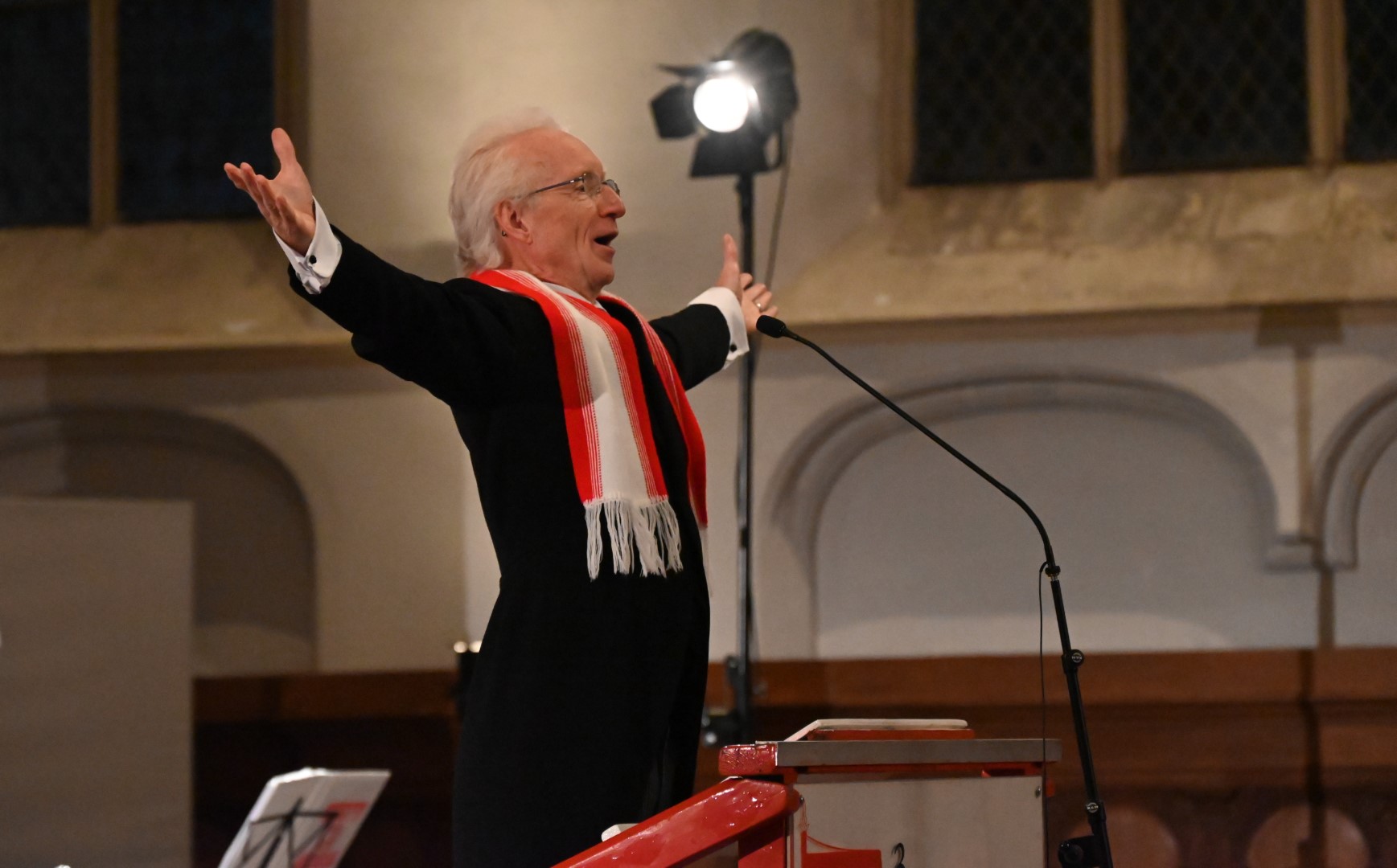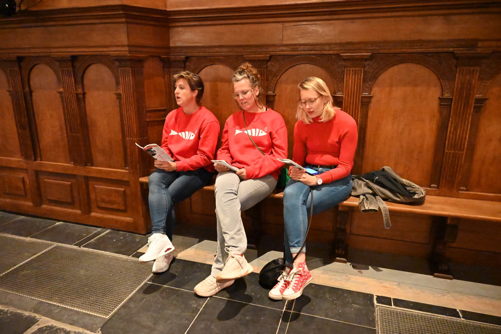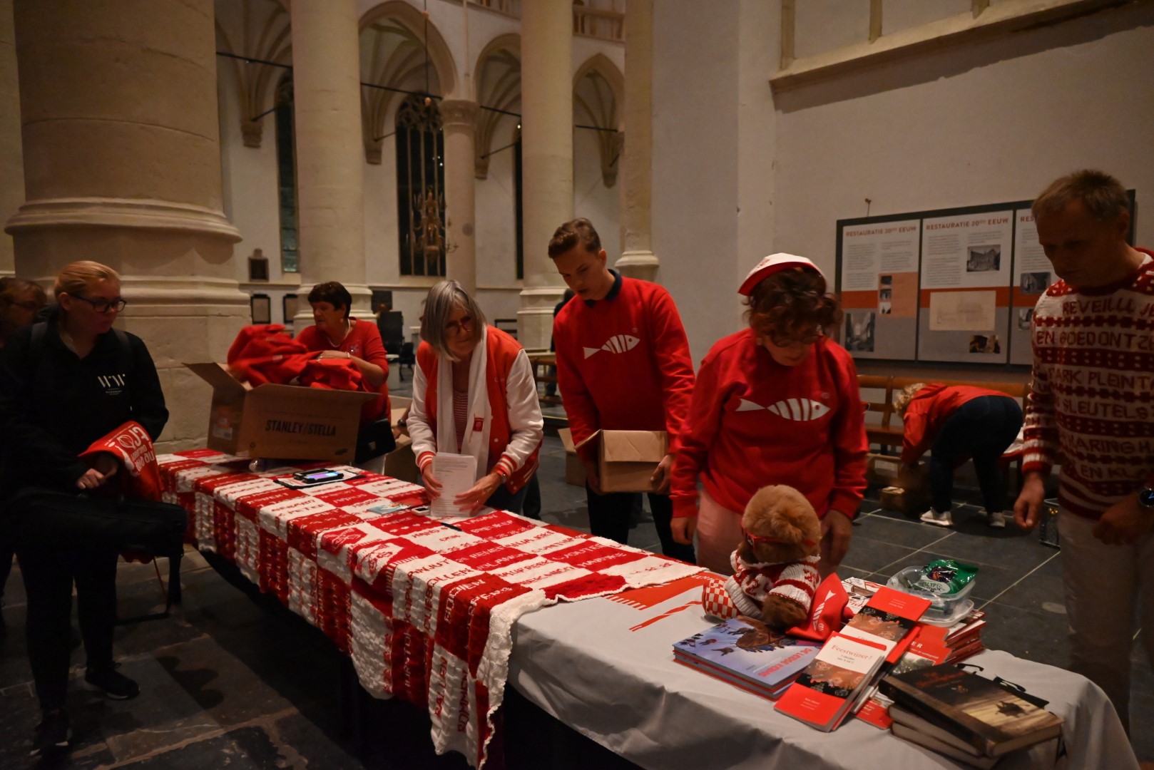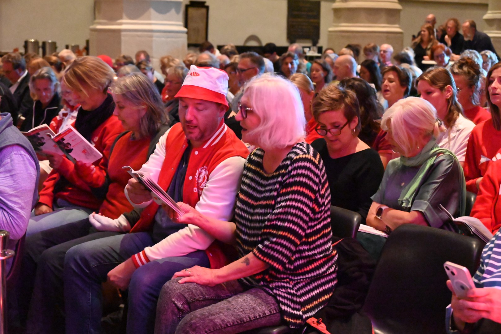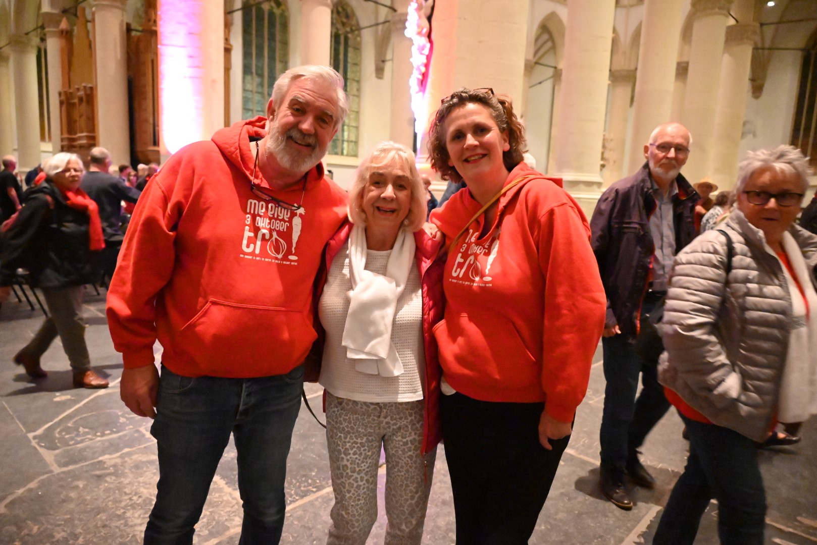 De sfeer zat er gisterenavond in de kerk dan ook goed in. Er werd gelachen om de strenge woorden van De Ru tegen de vele solisten die aan een eind van een lied toch nog even hun momentje wilden pakken en vol enthousiasme werden de tips van de dirigent opgevolgd. “Dit is echt een gewaarwording! Al die mensen, al die verbondenheid. En dat mooie zingen. Ik heb me echt ontzettend vermaakt”, vertelt een bezoeker die voor het erst meedeed. Ook komen mensen van buiten Leiden speciaal voor het oefenen terug naar de Sleutelstad. “Helemaal uit Utrecht gekomen ja. Het was weer schitterend. Ik ben zelfs een beetje schoor gezongen.”