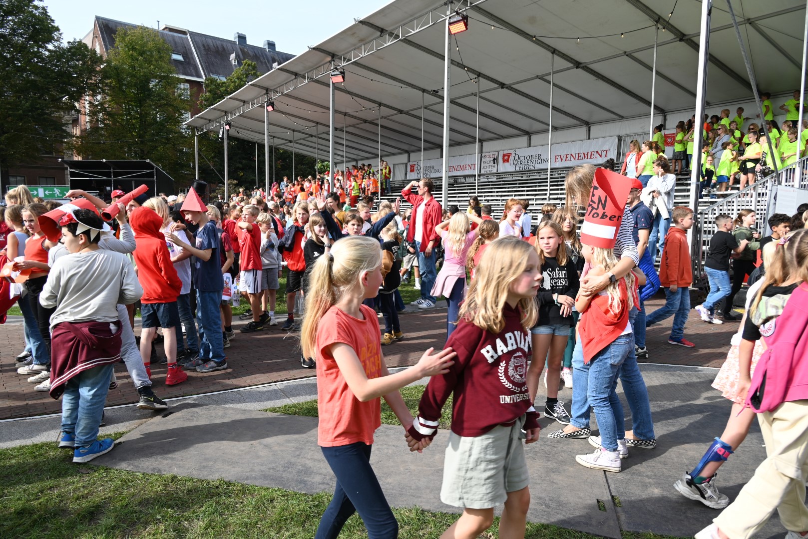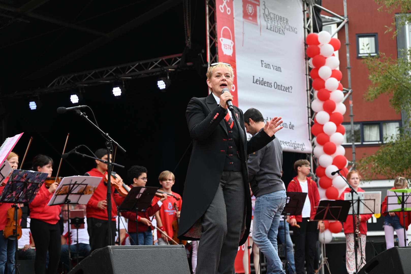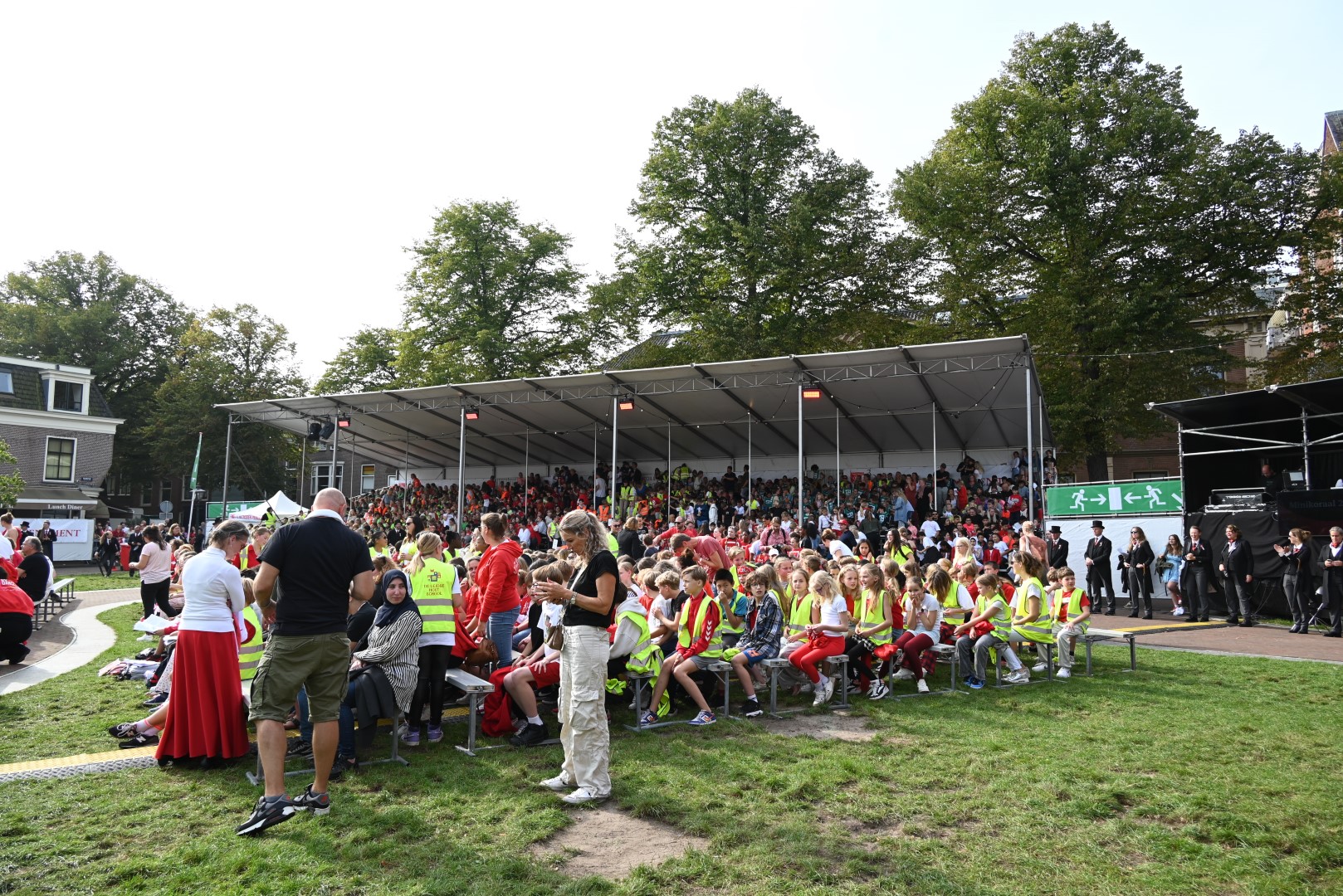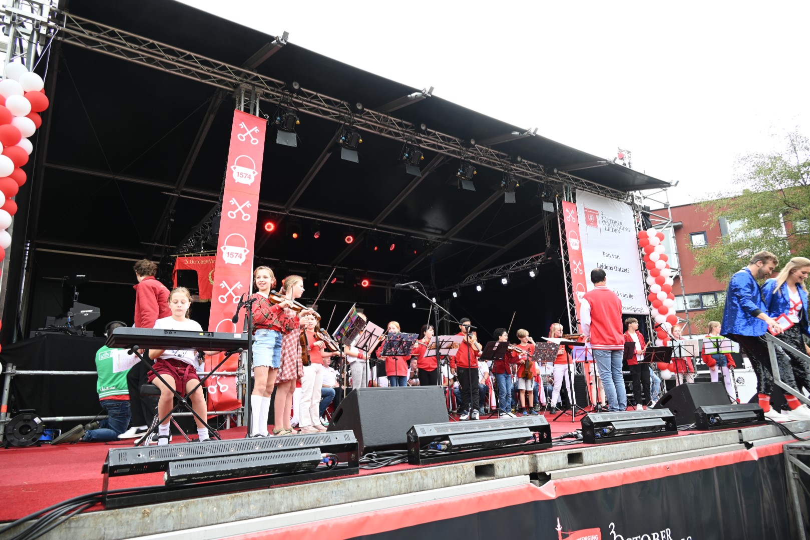 Maandagmiddag kwamen zo’n 3.000 scholieren van de klassen 7 en 8 van basisscholen uit Leiden en de buurgemeenten naar het Garenmarktplein om gezamenlijk de 3 oktoberliedjes te zingen. Op die manier krijgen ze het feest der feesten met de paplepel ingegoten.