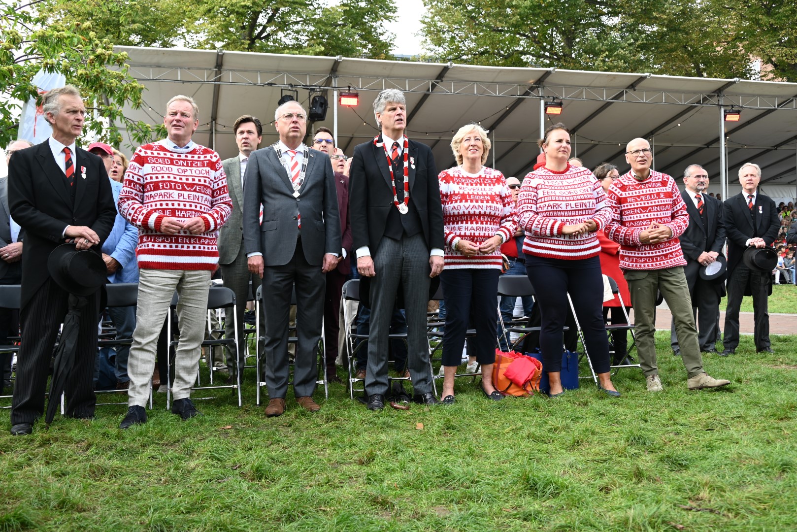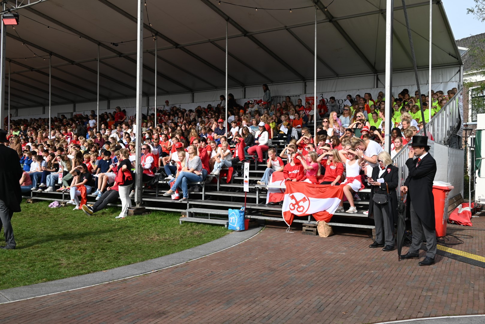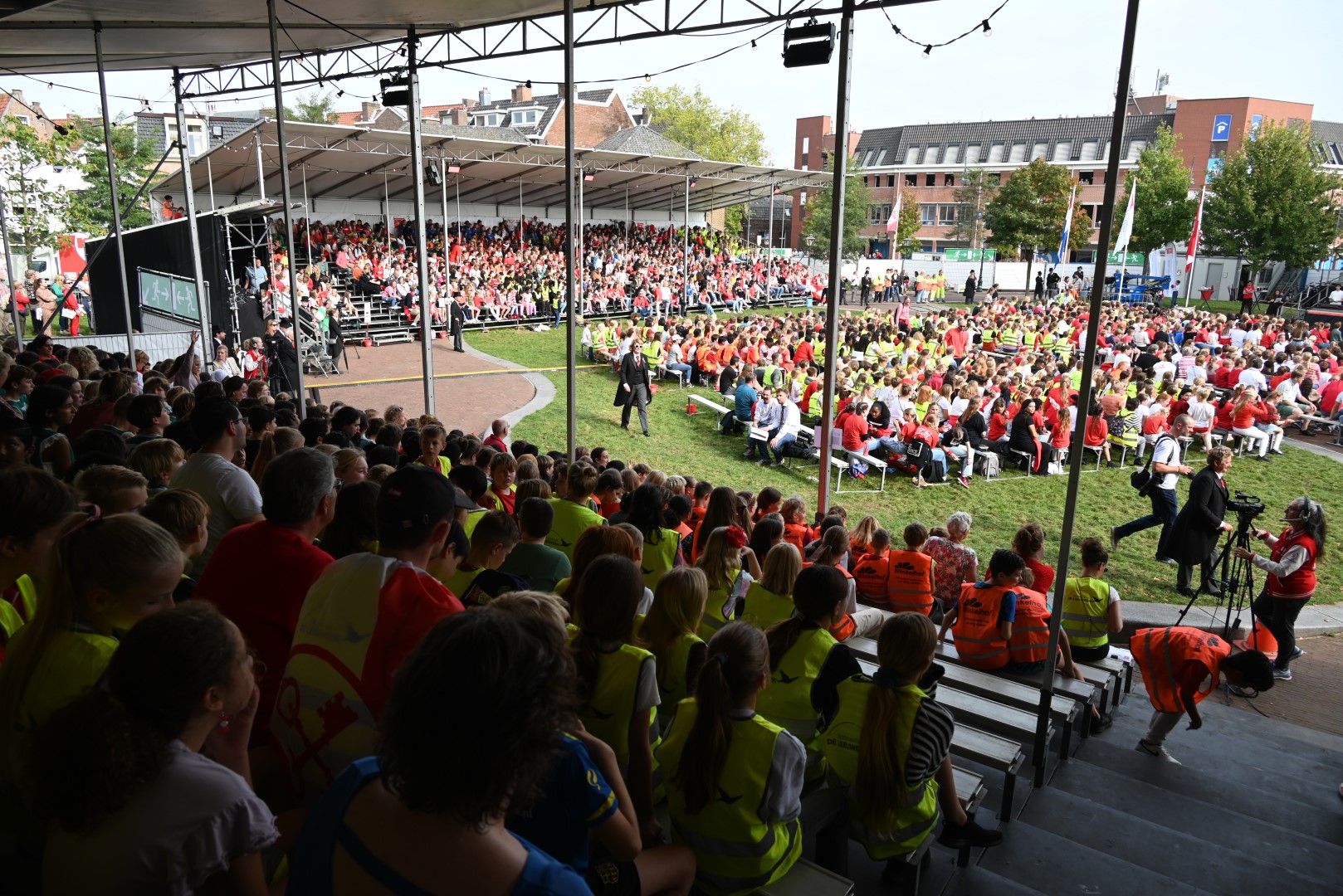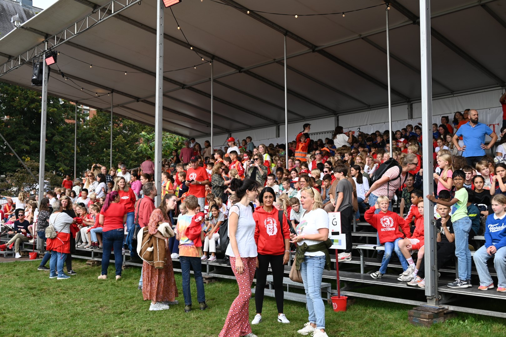 Maandagmiddag kwamen zo’n 3.000 scholieren van de klassen 7 en 8 van basisscholen uit Leiden en de buurgemeenten naar het Garenmarktplein om gezamenlijk de 3 oktoberliedjes te zingen. Op die manier krijgen ze het feest der feesten met de paplepel ingegoten.