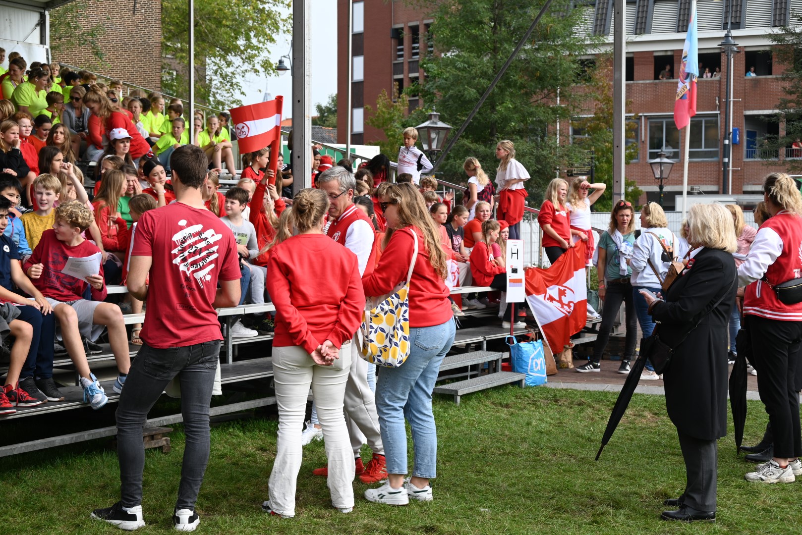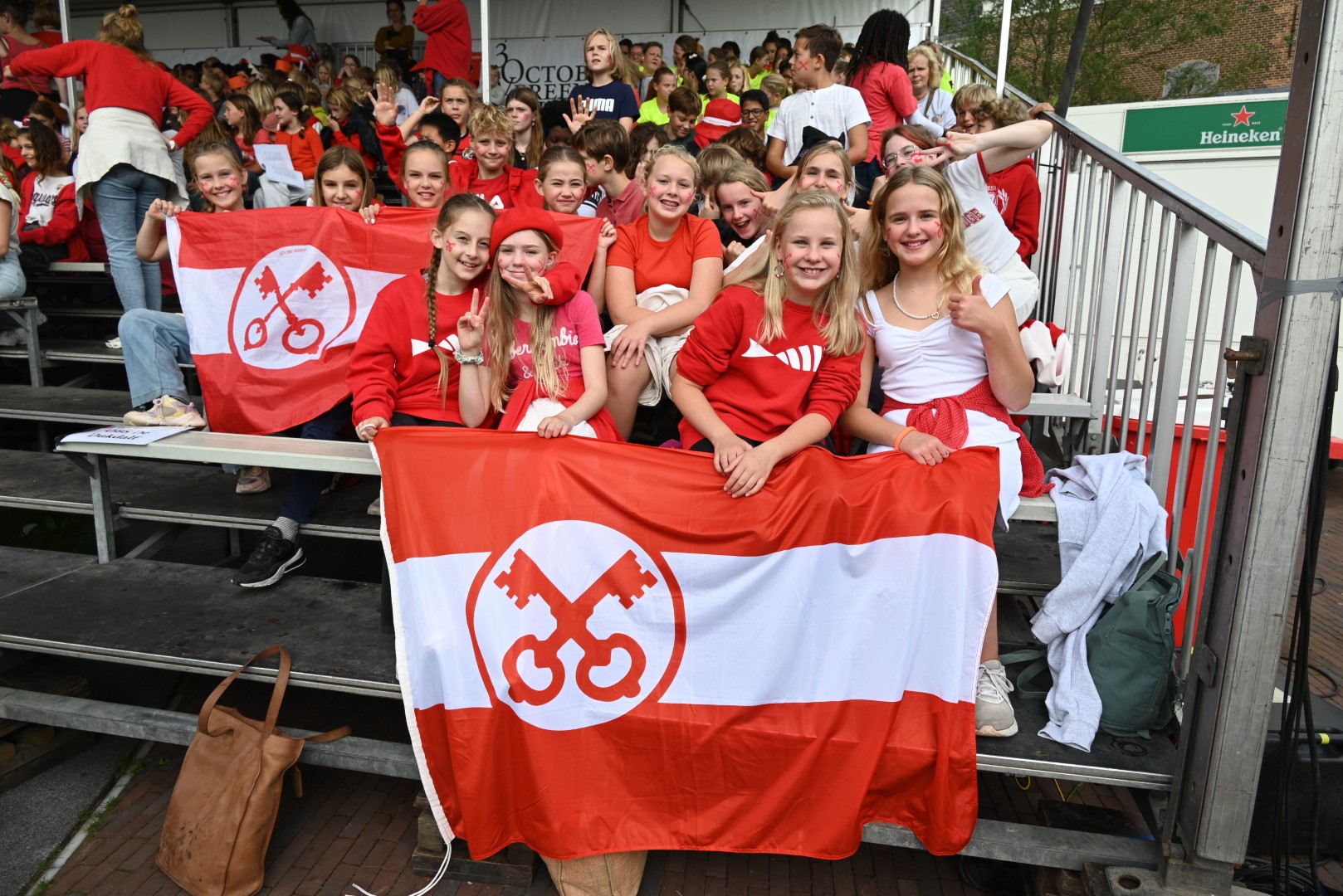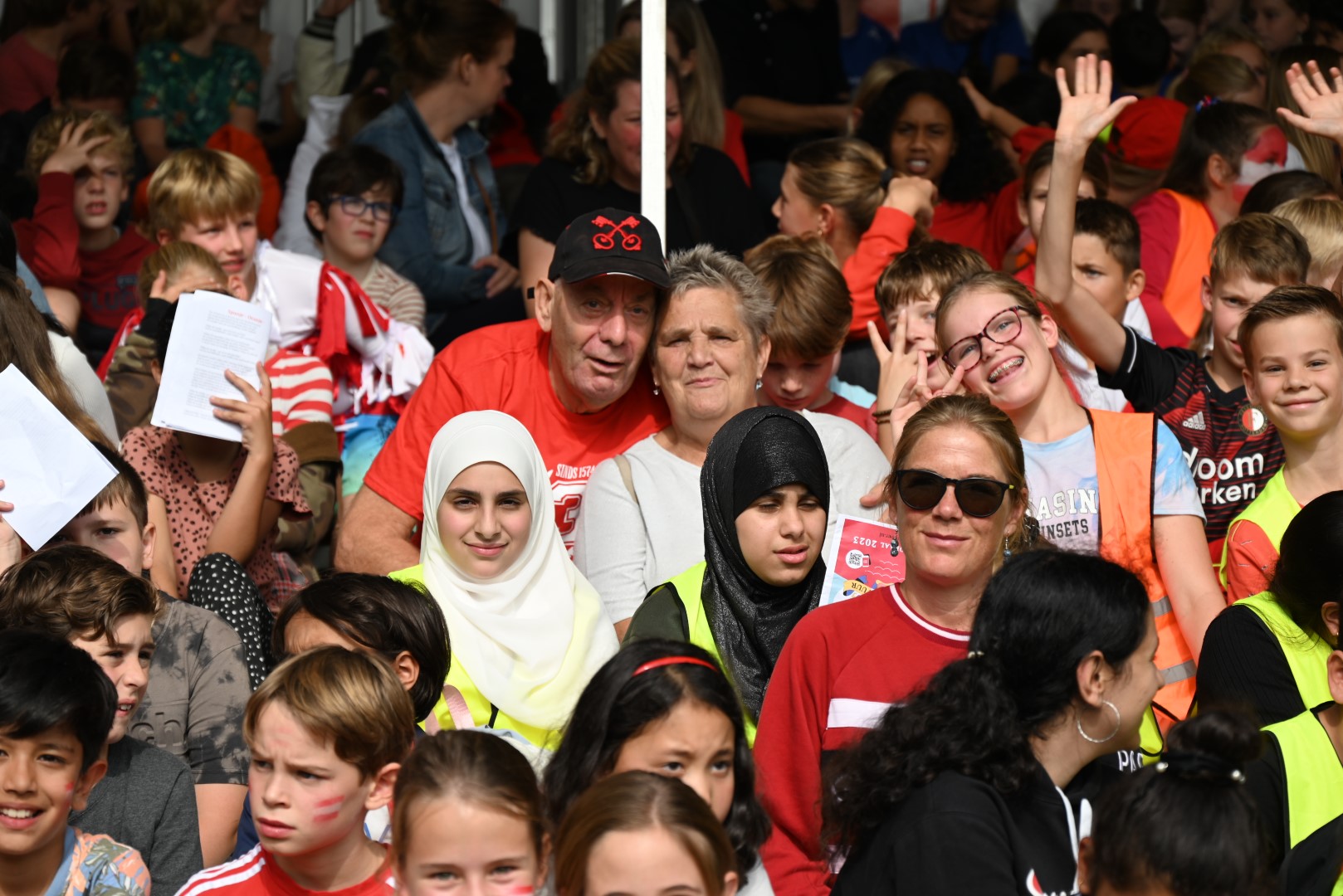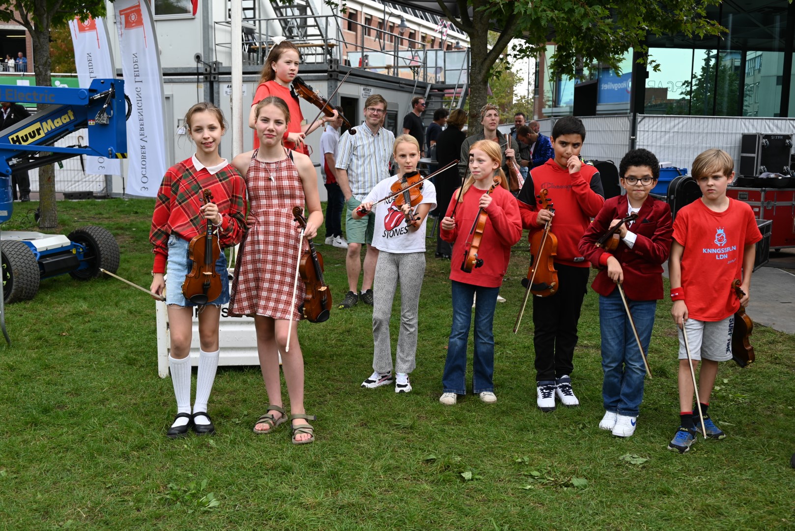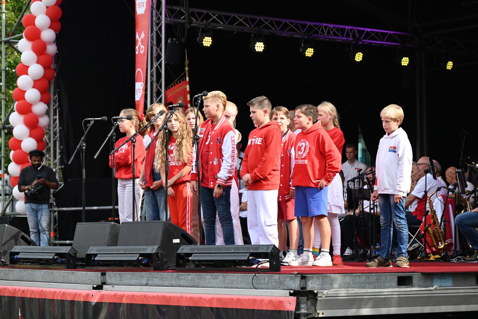 Maandagmiddag kwamen zo’n 3.000 scholieren van de klassen 7 en 8 van basisscholen uit Leiden en de buurgemeenten naar het Garenmarktplein om gezamenlijk de 3 oktoberliedjes te zingen. Op die manier krijgen ze het feest der feesten met de paplepel ingegoten.