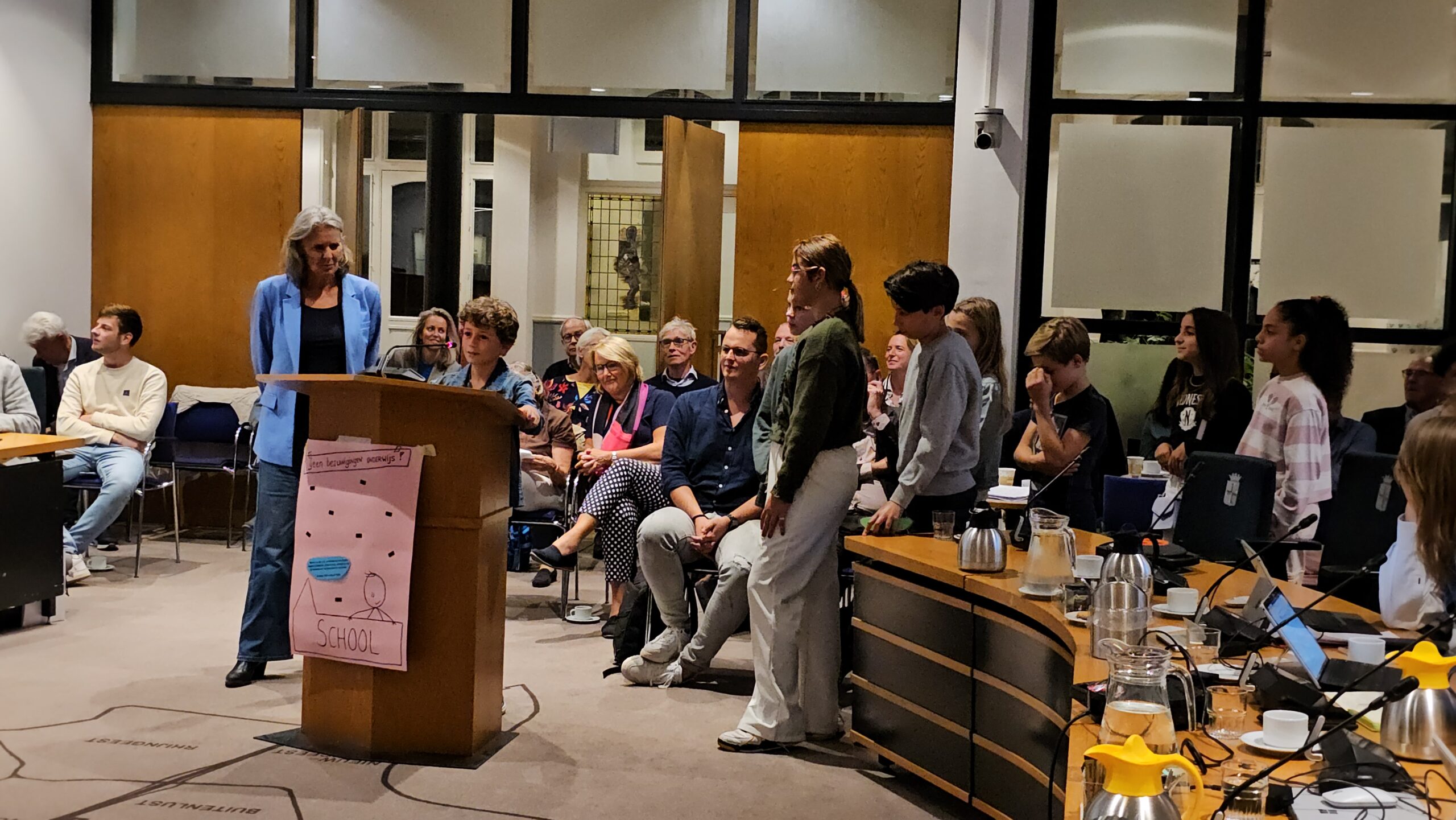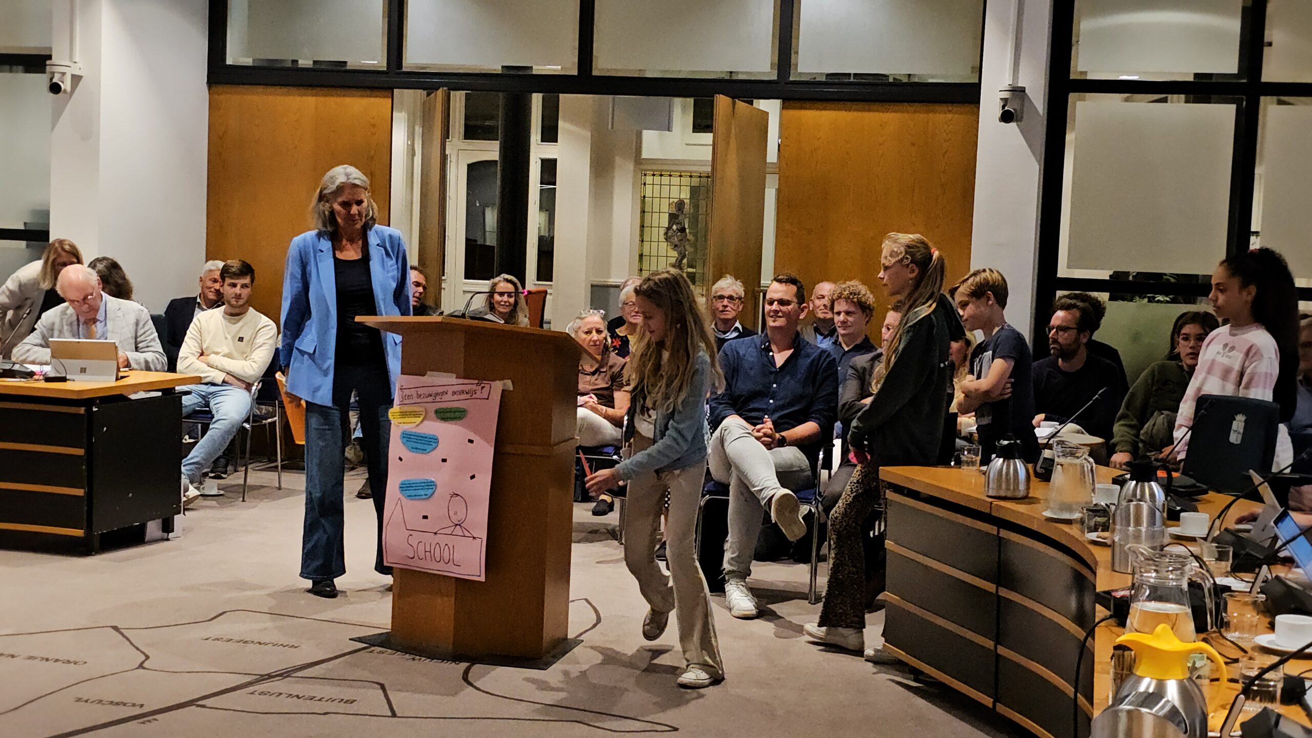 Ook Melissa Hoijtink kwam inspreken over het voornemen om de gymzaal uit de plannen voor de GDT te schrappen. Zij wees er namens de ouders, ik heb twee kinderen op de school, op dat de route naar sporthal De Cuyl te lang is voor de scholieren. “Het mag niet volgens de verordening, maar de verkeersveiligheid onderweg is ook niet in orde.” Hoijtink komt met nog een opmerkelijk punt: “De kinderen krijgen voortaan twee keer per week gym. Als ze twee keer per week naar De Cuyl en terug moeten lopen, kost dat ze in hun basisschoolcarrière in totaal een half jaar lestijd. Daar vindt de onderwijsinspectie denk ik ook wel iets van.”