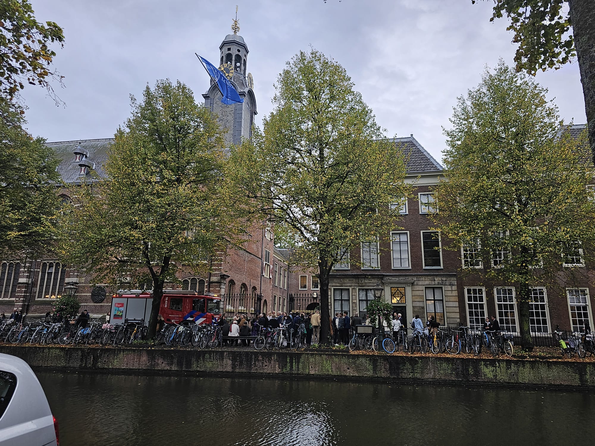 Het was druk in het universiteitsgebouw, omdat daar op het moment dat het alarm afging diploma’s werden uitgereikt. Ook is er voor de deur een streetfood festival omdat het Aziatisch instituut het dertigjarig bestaan viert.