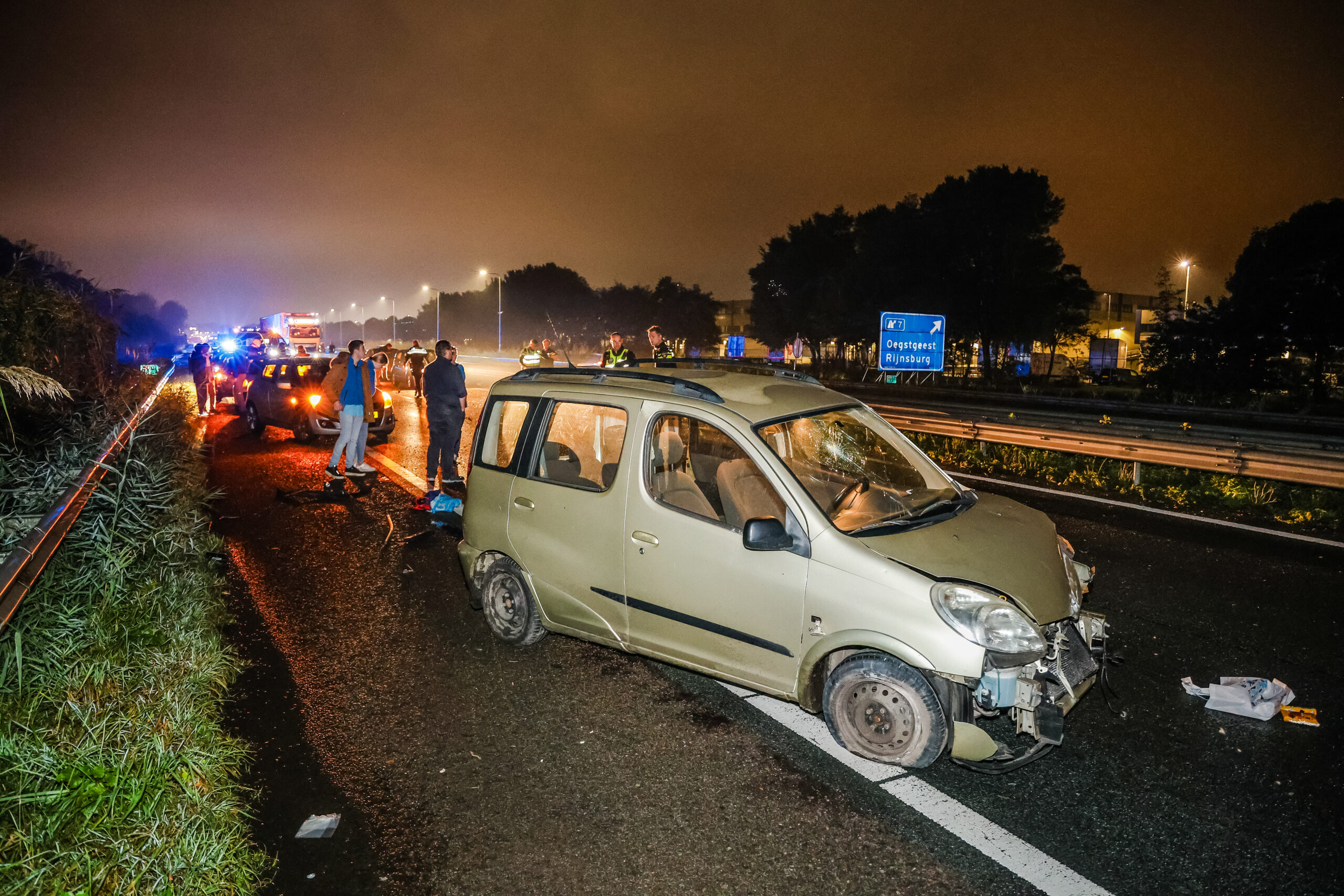Bij het ongeval reed eerst een personenauto tegen de vangrail, waarna deze ook tegen andere auto’s is aangereden. Uiteindelijk belandde de auto op zijn kant. Het voertuig met daarin het slachtoffer is door gestopte weggebruikers voorzichtig weer op vier wielen gezet. In ieder geval één slachtoffer is per ambulance overgebracht naar het ziekenhuis. In een tweede ambulance is nog een tweede slachtoffer behandeld.