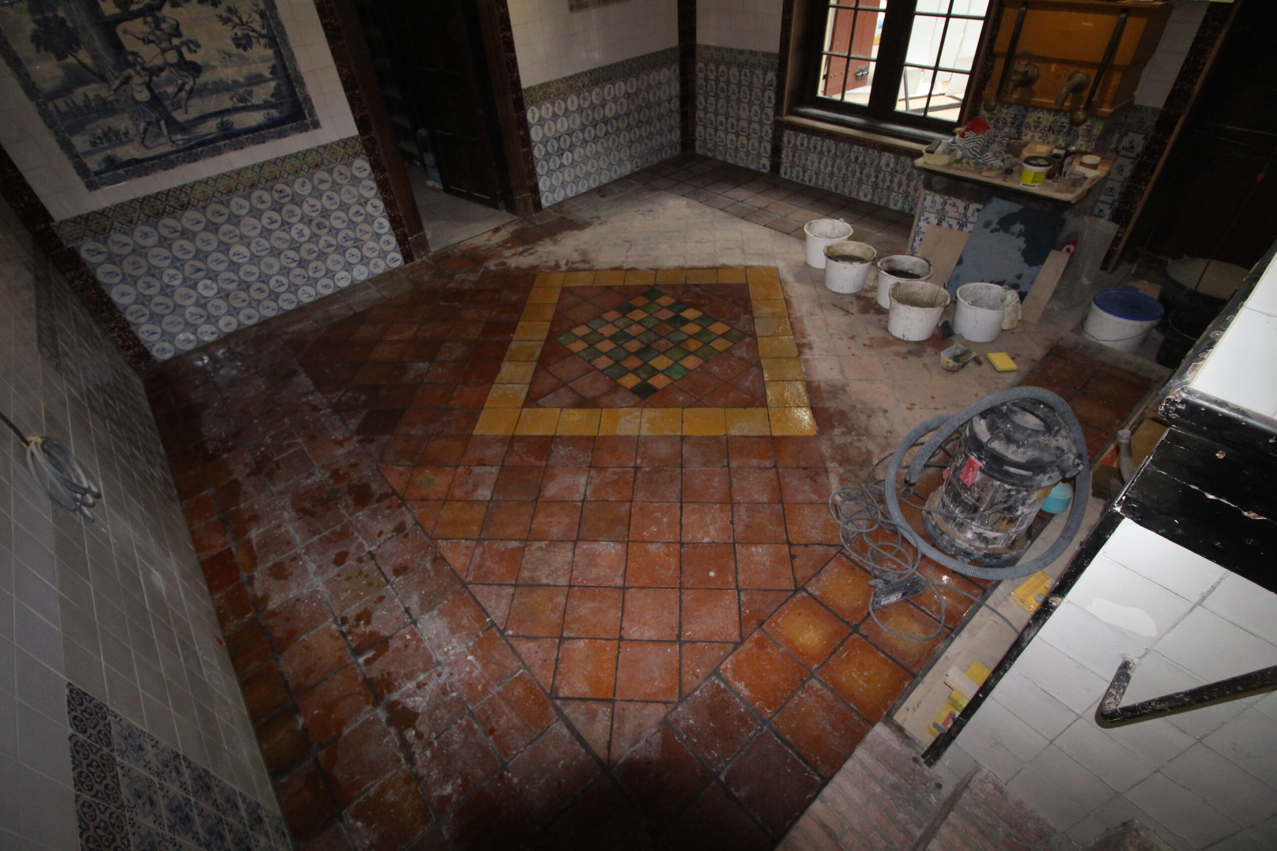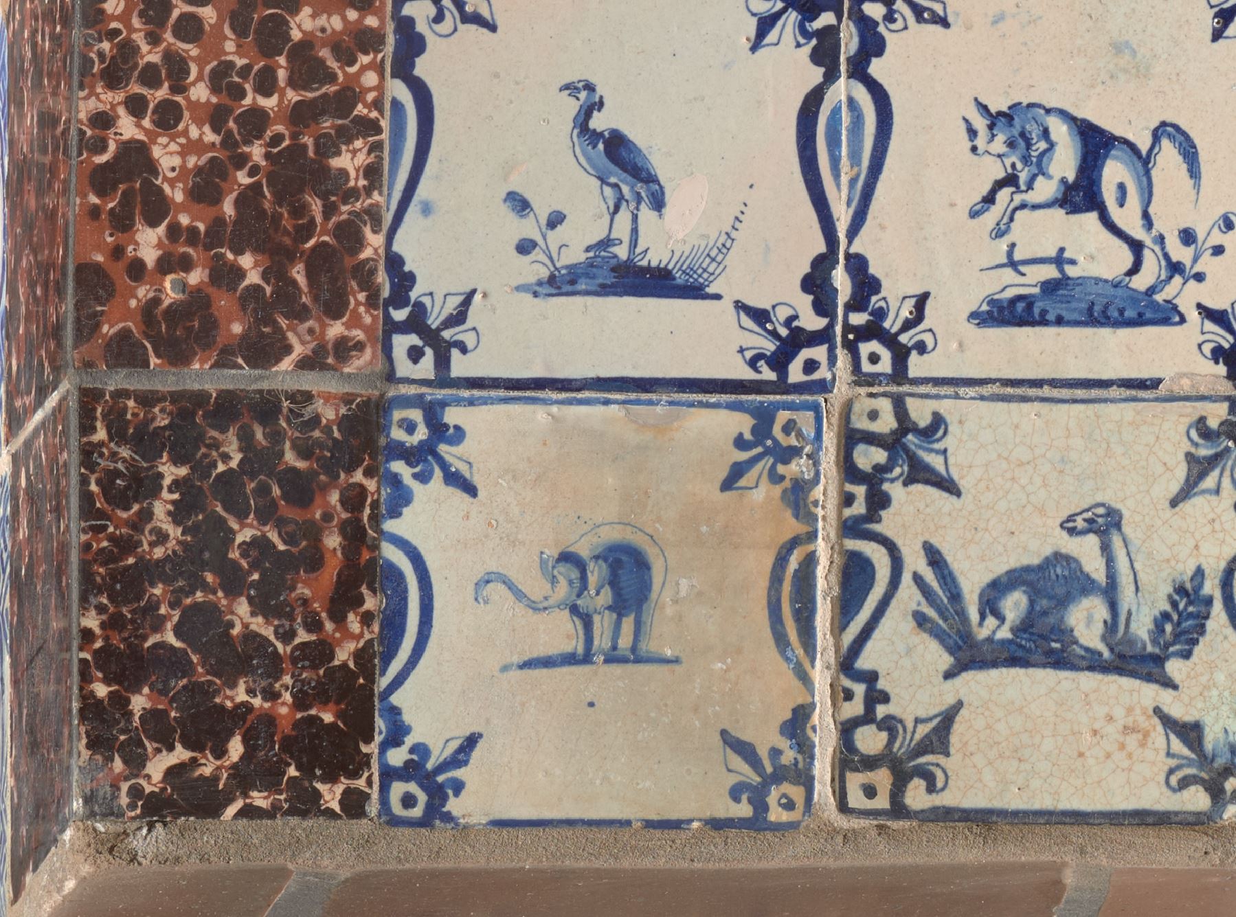 Een belangrijk aspect van de restauratie vormde de realisering van de tegelwanden. In de keuken zijn honderden tegels aangebracht, waarvan ongeveer 550 voorzien van een afbeelding. De Jong: “We hebben geprobeerd de tegels per wand zoveel mogelijk in samenhang te presenteren. Anders dan bij losse tegels ontstaan bij samengestelde tegelwanden motieven die voor verbinding zorgen met de aangrenzende tegels. Dat komt het beste tot zijn recht bij tegels uit één baksel, maar die zijn inmiddels zeldzaam.”