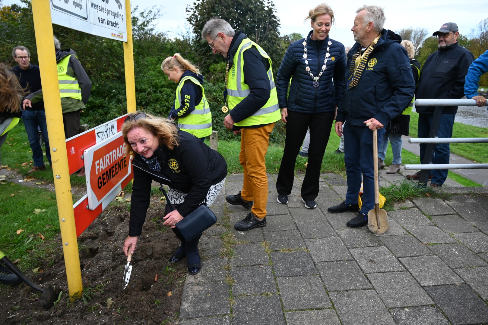 Onder het gemeentebord van Voorschoten worden tulpenbollen gepland. Met de actie is aandacht gevraagd voor de ziekte polio. Wereldwijd worden bollen gepland in de actie ‘Stop Polio Now’. Na het planten nemen de Voorschotenaren het stokje over en ging de estafette bakfiets door naar Wassenaar.