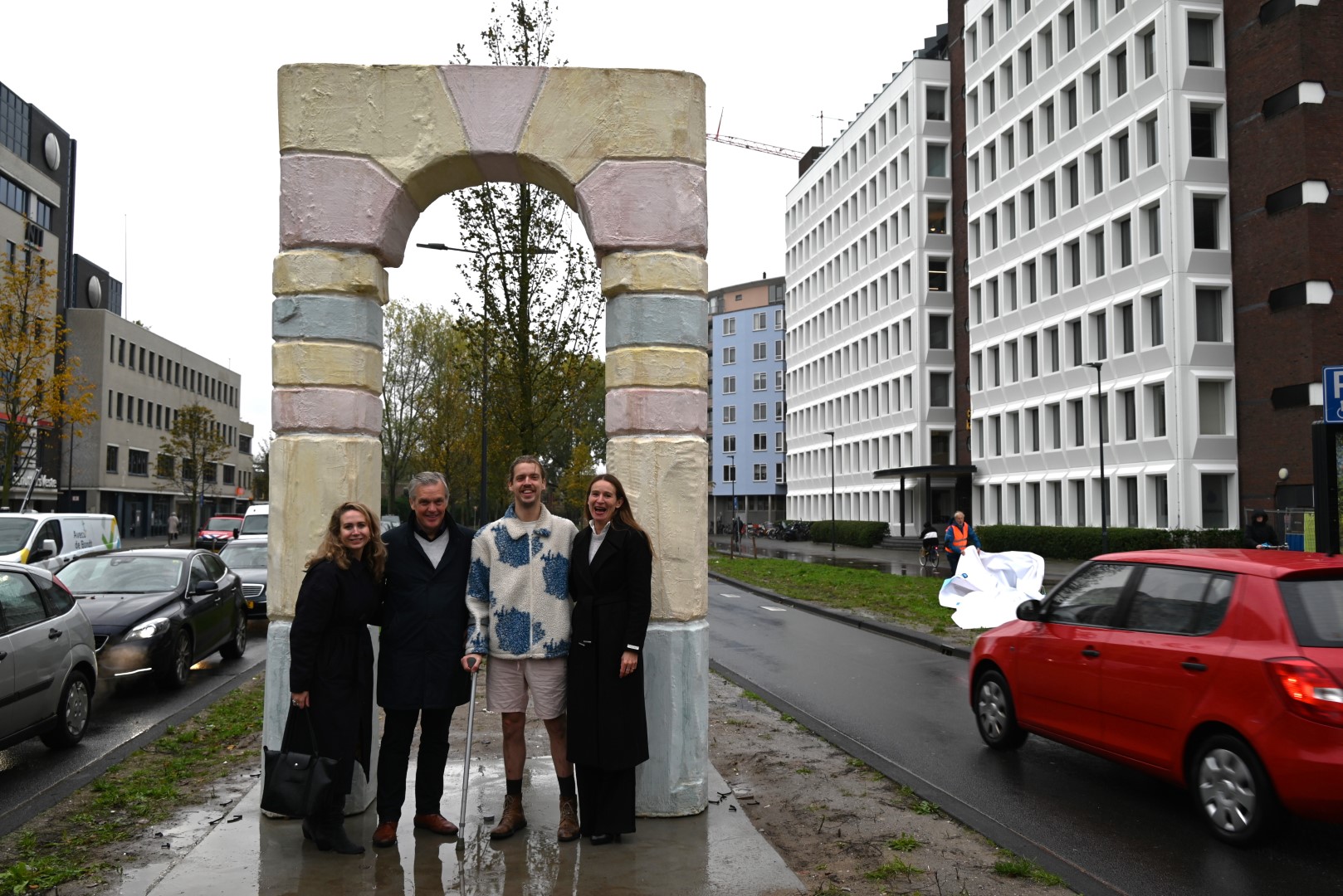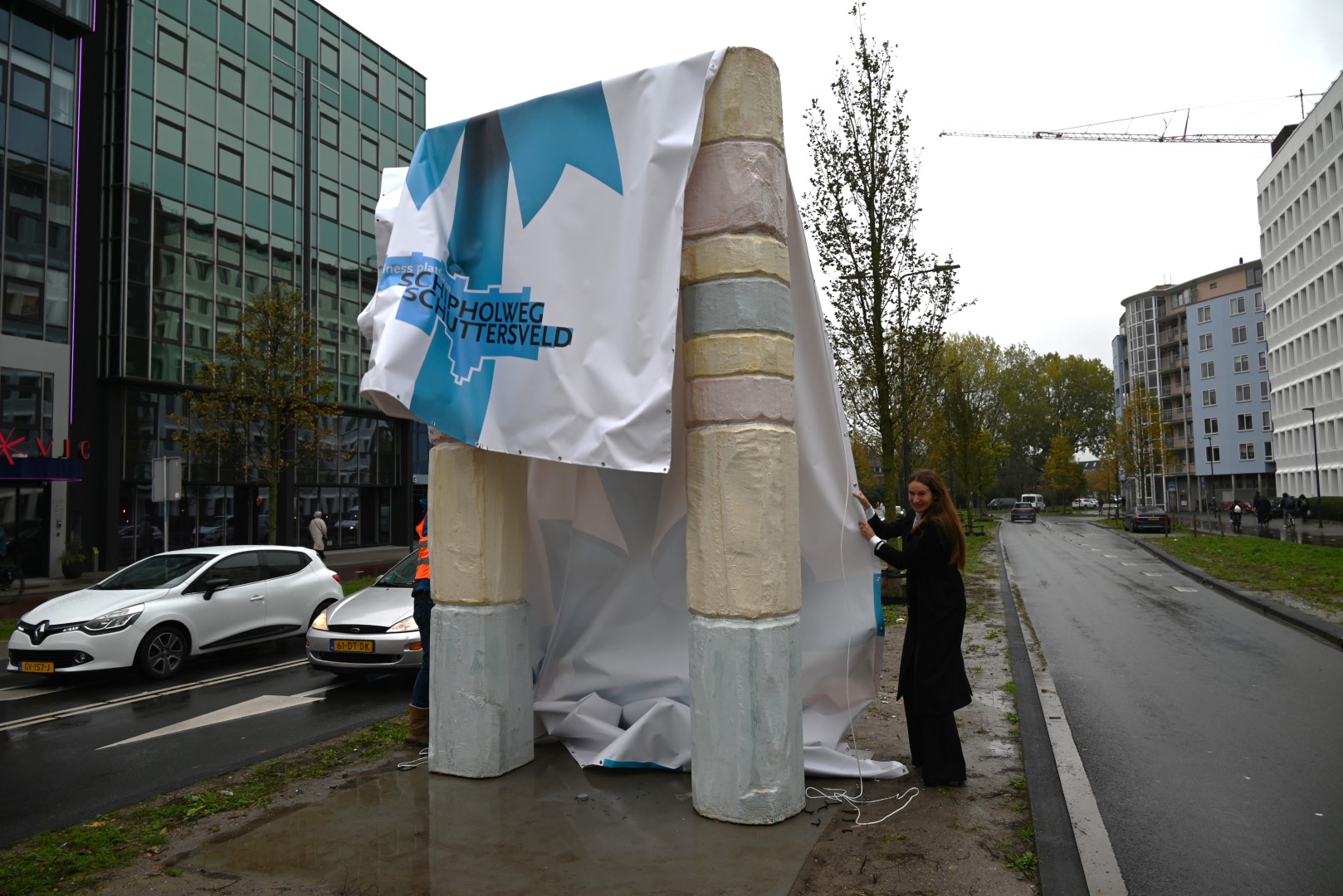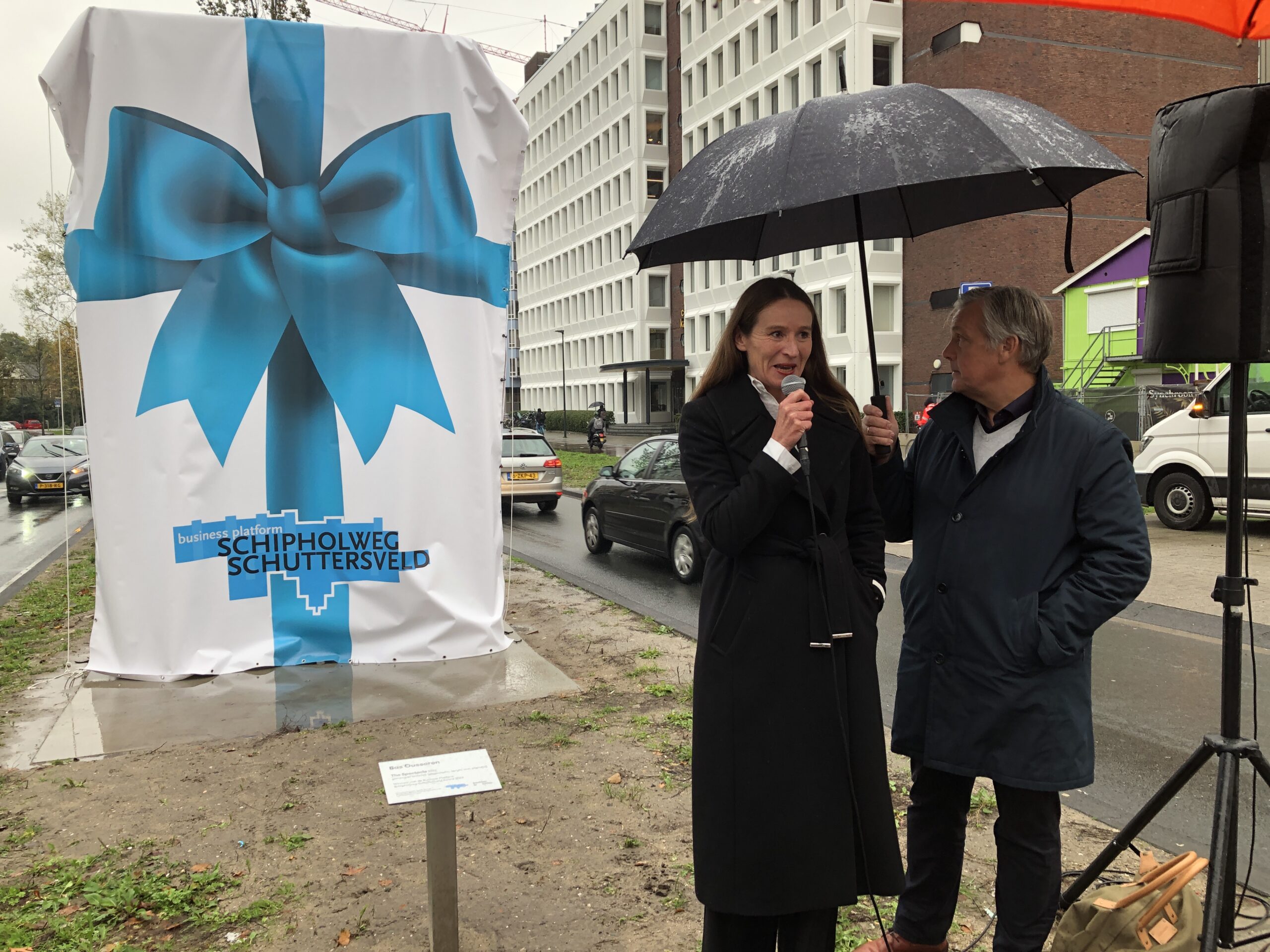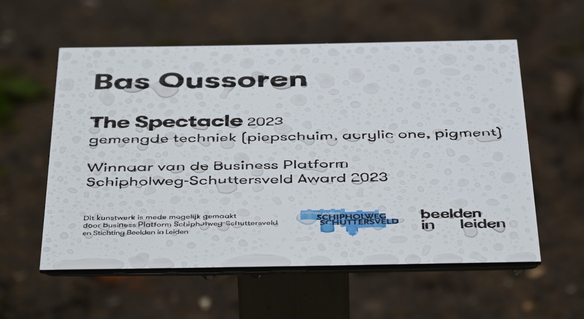 Sinds 2014 kiest het Business Platform ieder jaar een kunstwerk uit dat vanaf november een jaar lang op de hoek van het Schuttersveld en de Schipholweg mag staan. “Door herinrichting van de omgeving moesten we twee jaar overslaan, maar nu is deze plek weer verfraaid met een bijzonder kunstwerk”, vertelt Jolijn Kouwenhoven trots namens de lokale ondernemers.