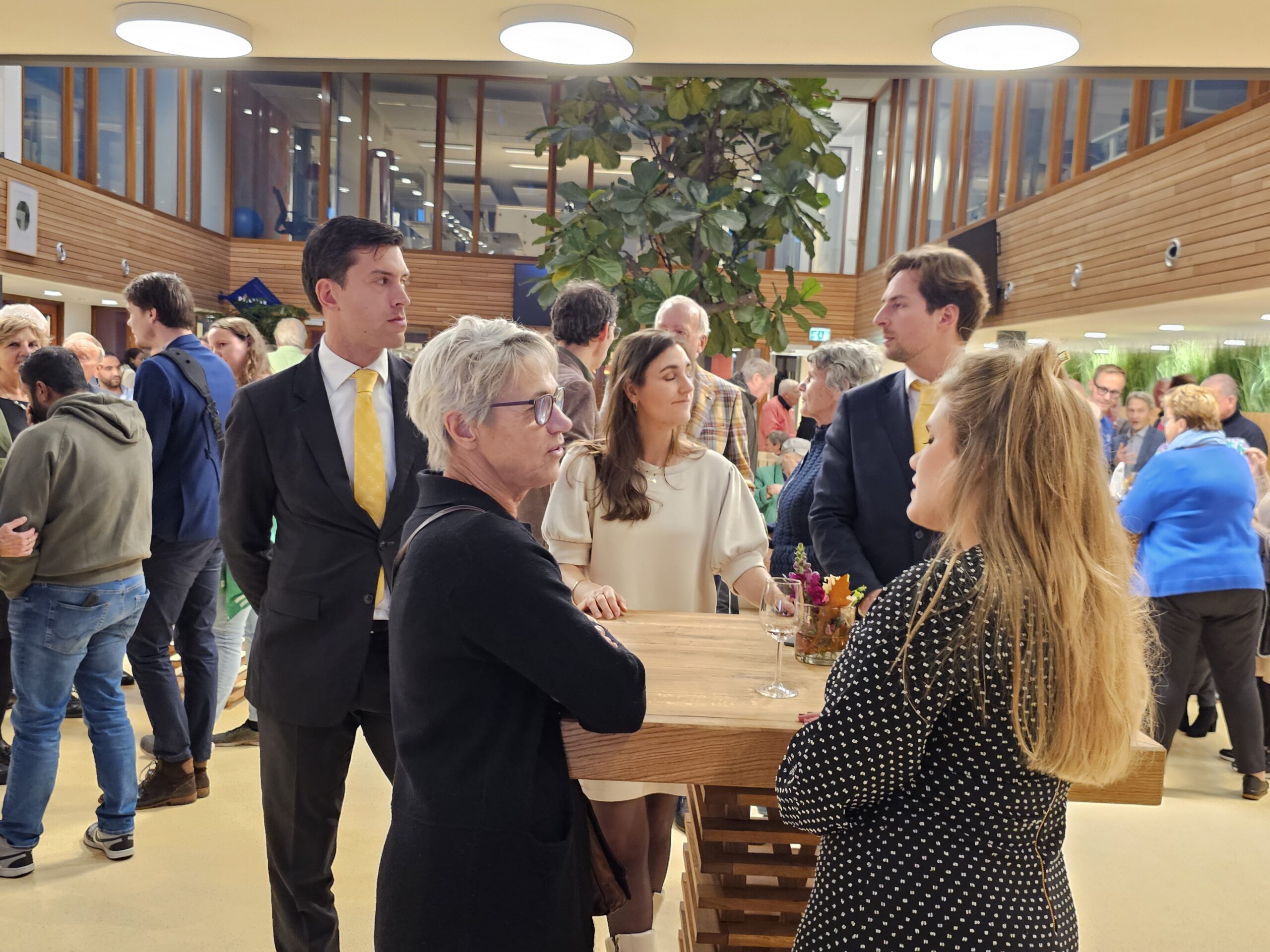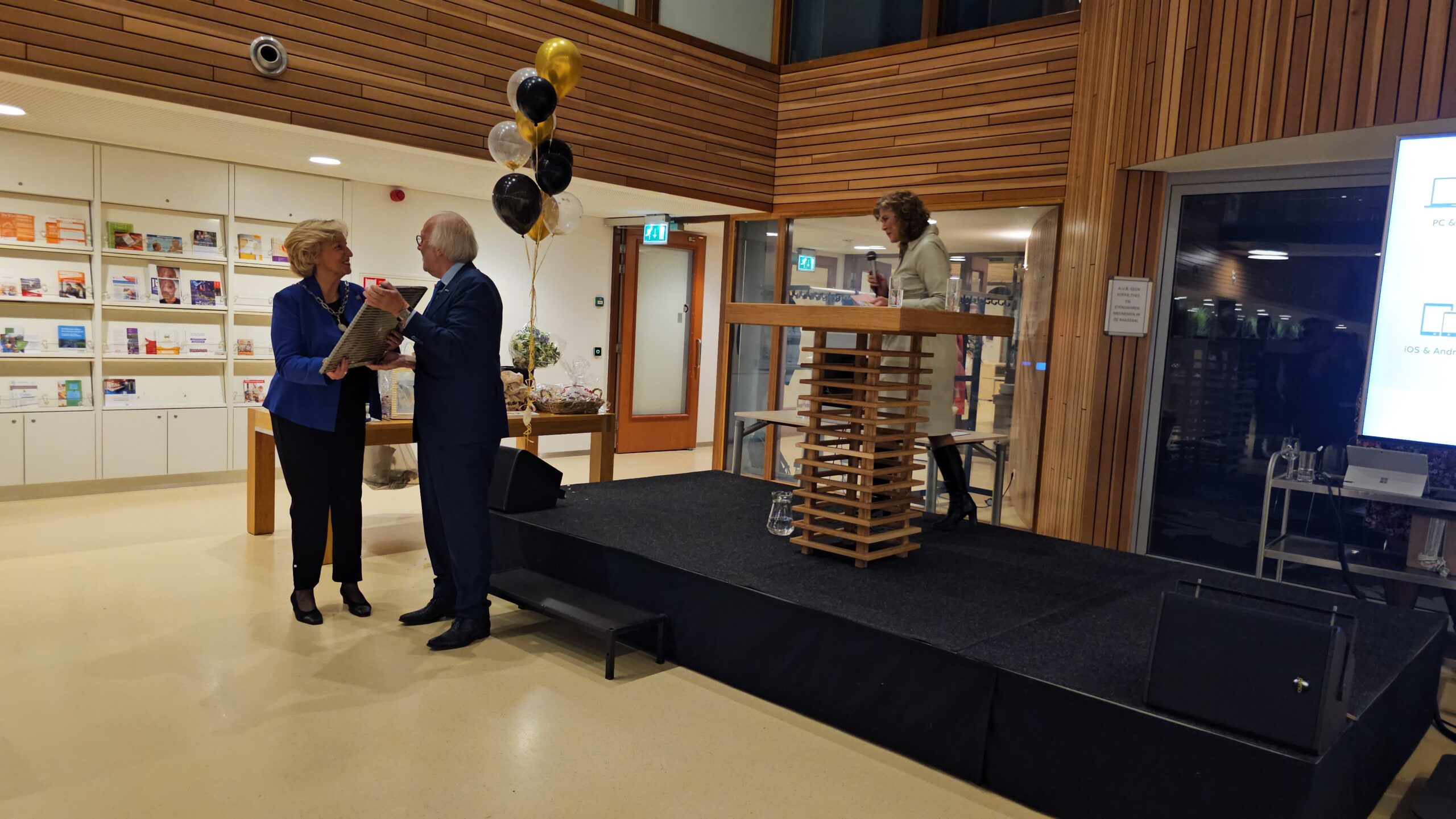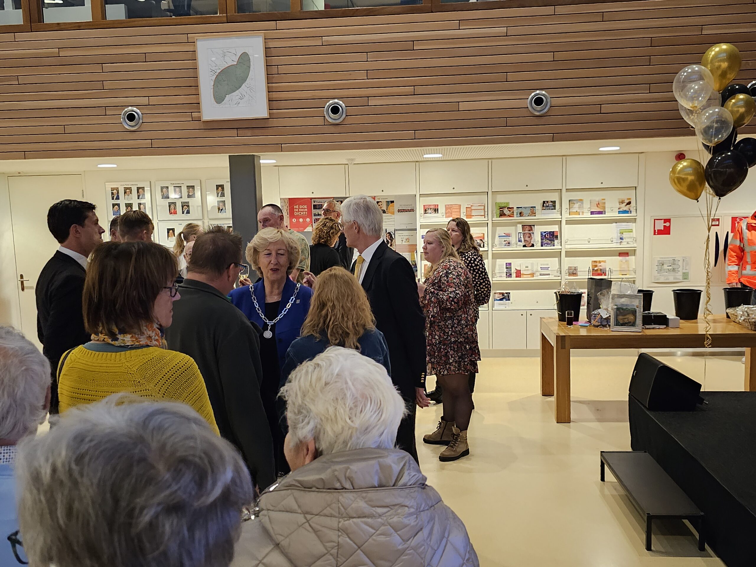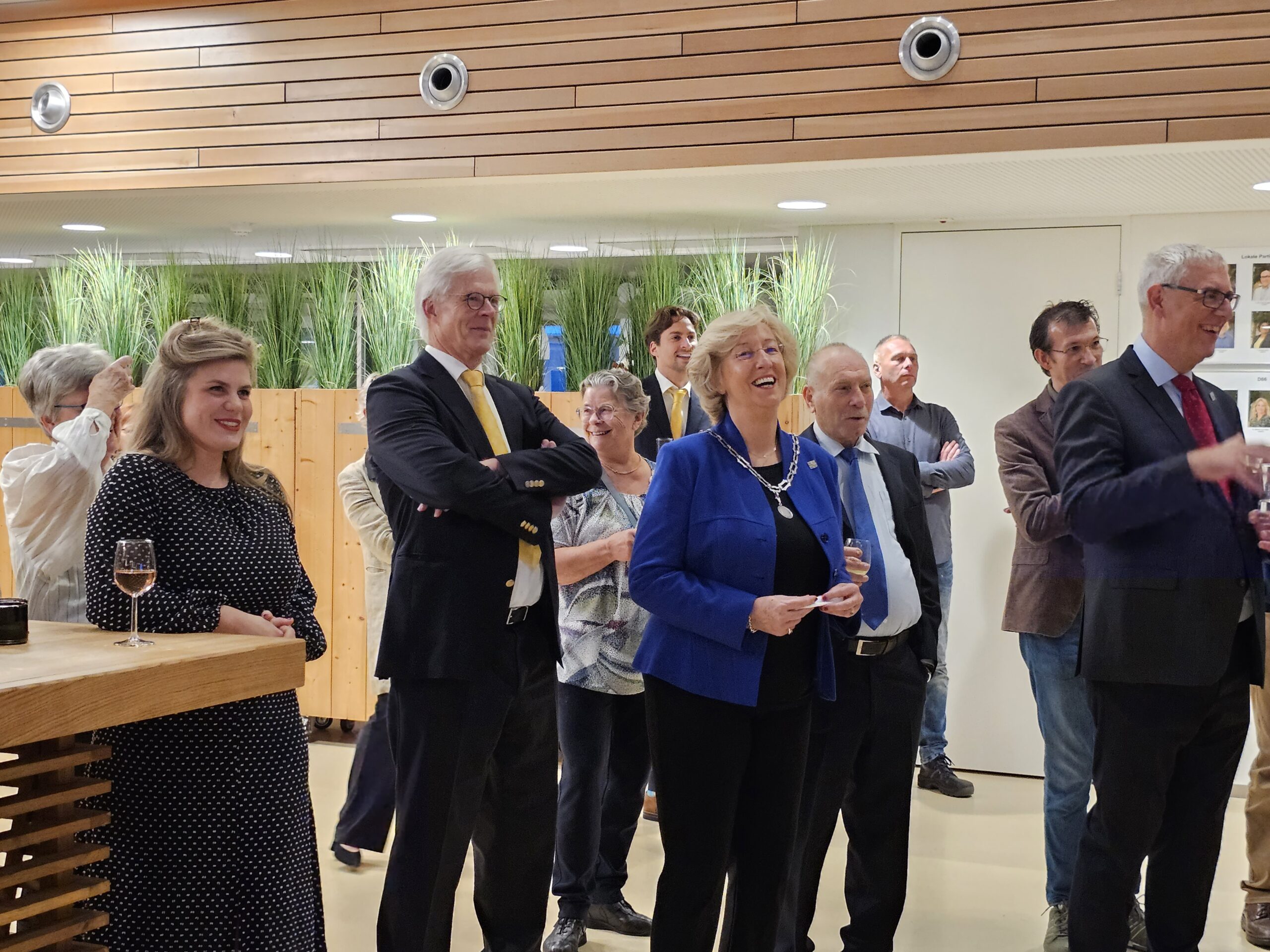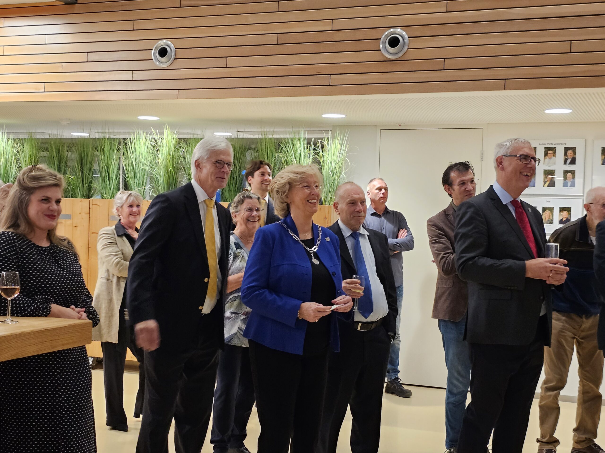 Zaterdagmiddag nam Driessen al afscheid van de inwoners van Leiderdorp met een receptie in het atrium van het gemeentehuis. Heel wat mensen hadden de regen getrotseerd en werden niet teleurgesteld. De bijeenkomst begon met de vertoning van een korte video die is gemaakt van de afscheidstournee door het dorp die de burgemeester in de aanloop naar haar vertrek maakte. Daarna werd Driessen zelf bevraagd over haar tijd in Leiderdorp en volgde nog een afscheidswoord door locoburgemeester Herman Romeijn.