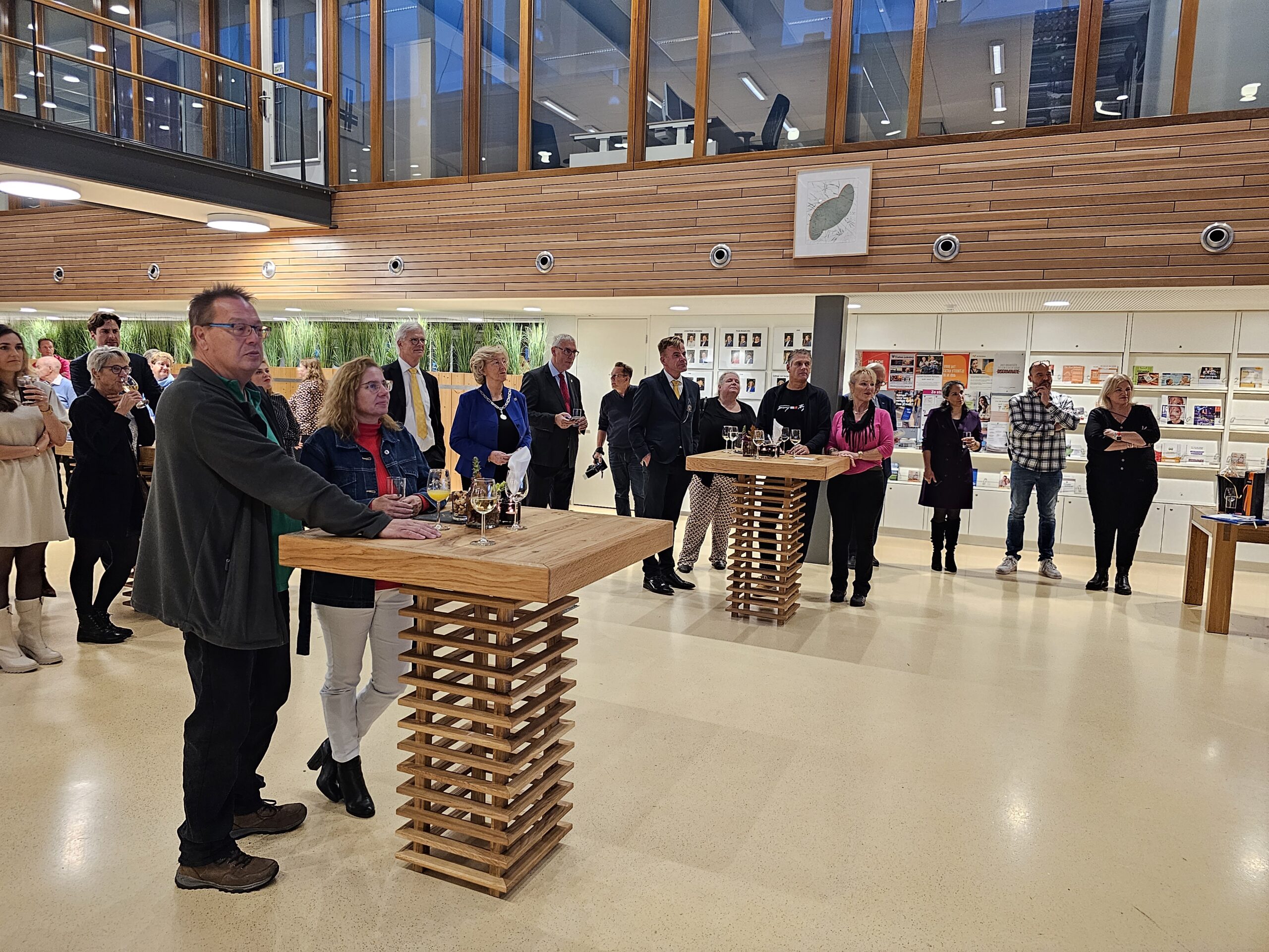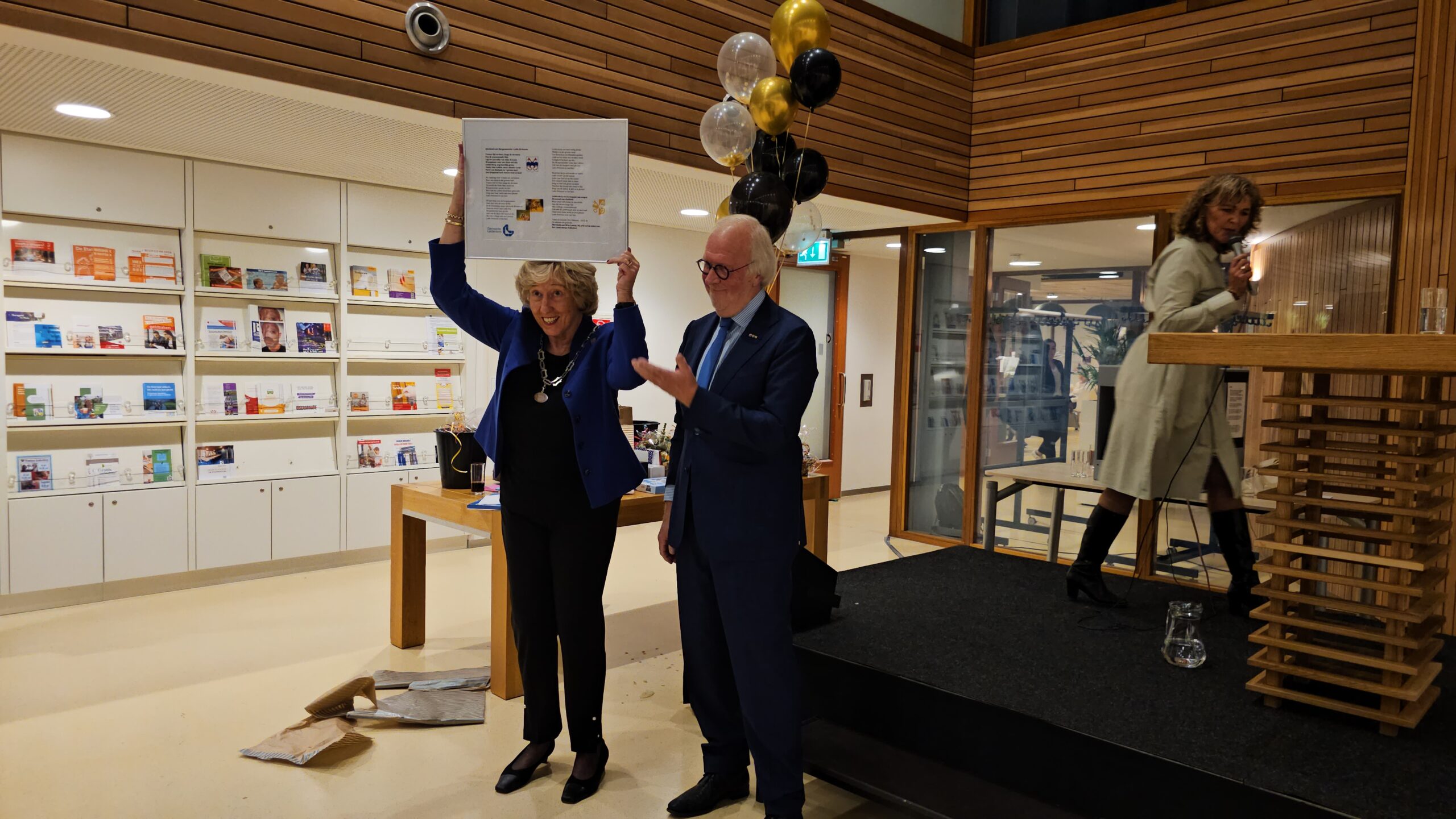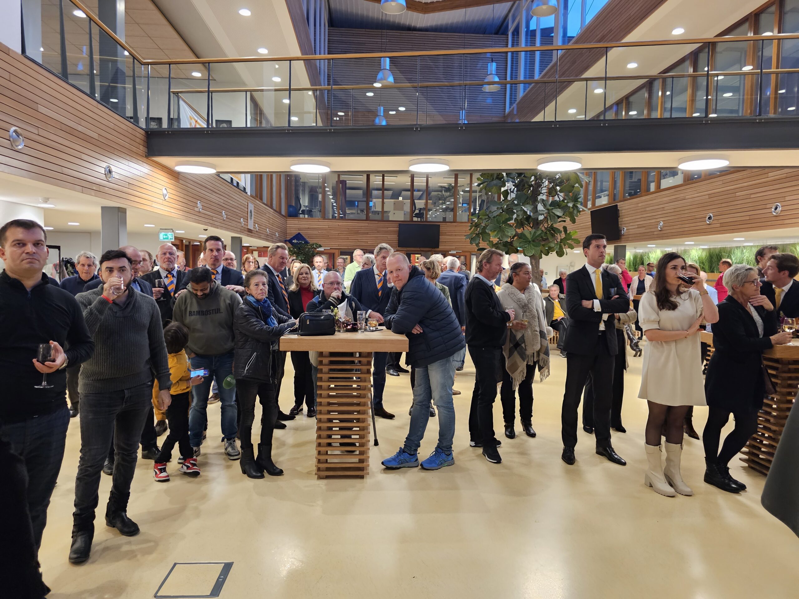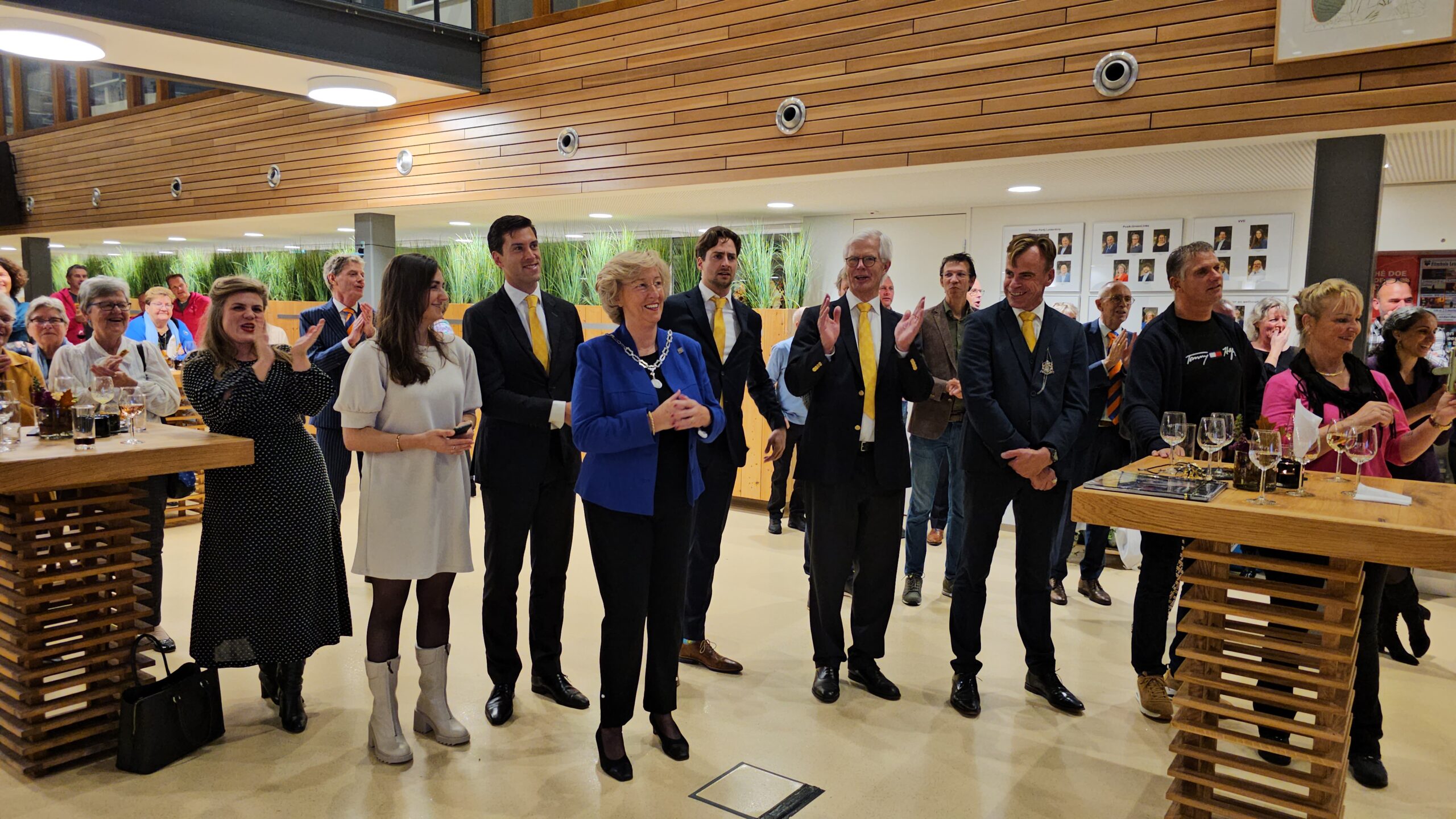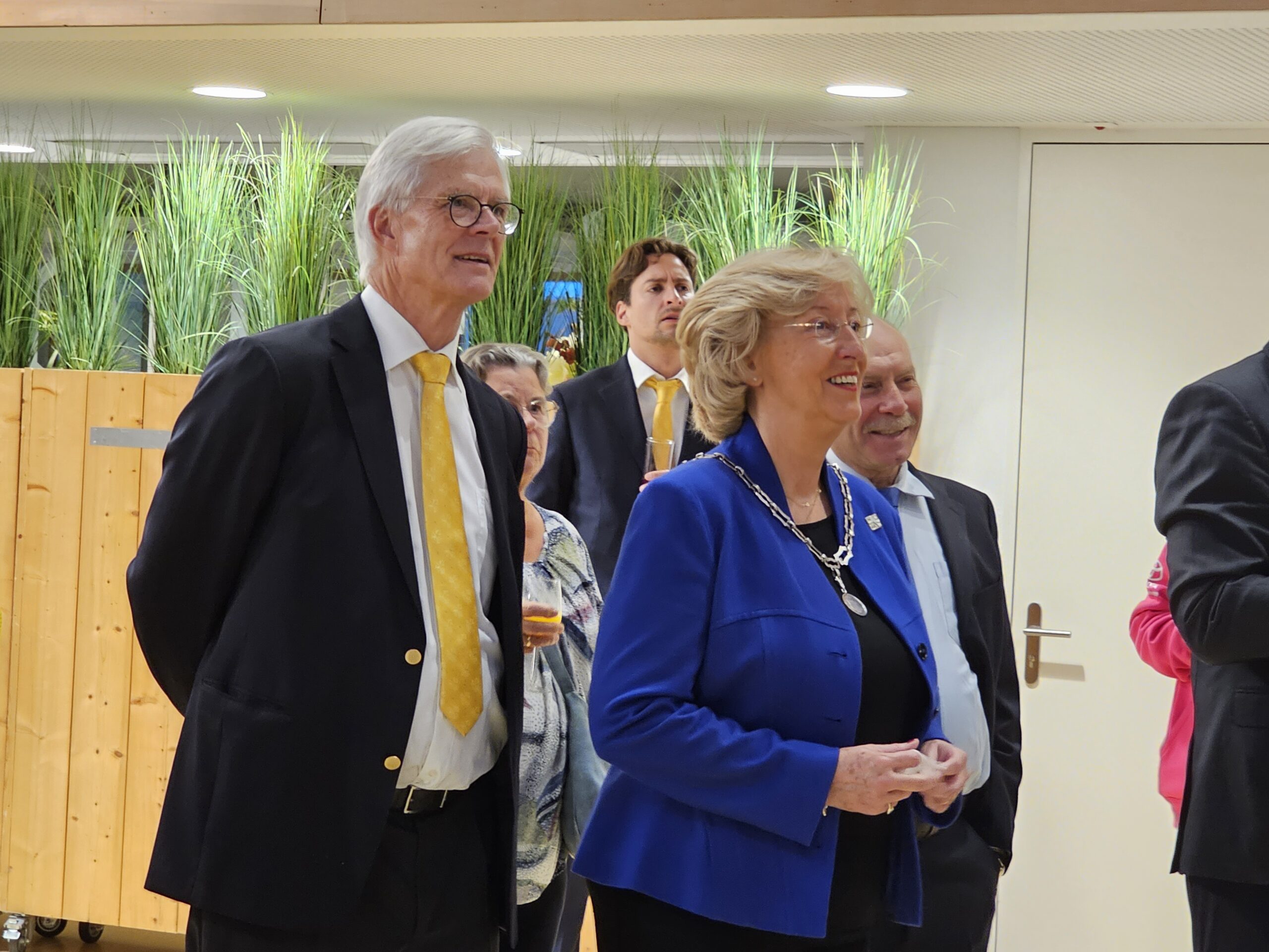 Zaterdagmiddag nam Driessen al afscheid van de inwoners van Leiderdorp met een receptie in het atrium van het gemeentehuis. Heel wat mensen hadden de regen getrotseerd en werden niet teleurgesteld. De bijeenkomst begon met de vertoning van een korte video die is gemaakt van de afscheidstournee door het dorp die de burgemeester in de aanloop naar haar vertrek maakte. Daarna werd Driessen zelf bevraagd over haar tijd in Leiderdorp en volgde nog een afscheidswoord door locoburgemeester Herman Romeijn.