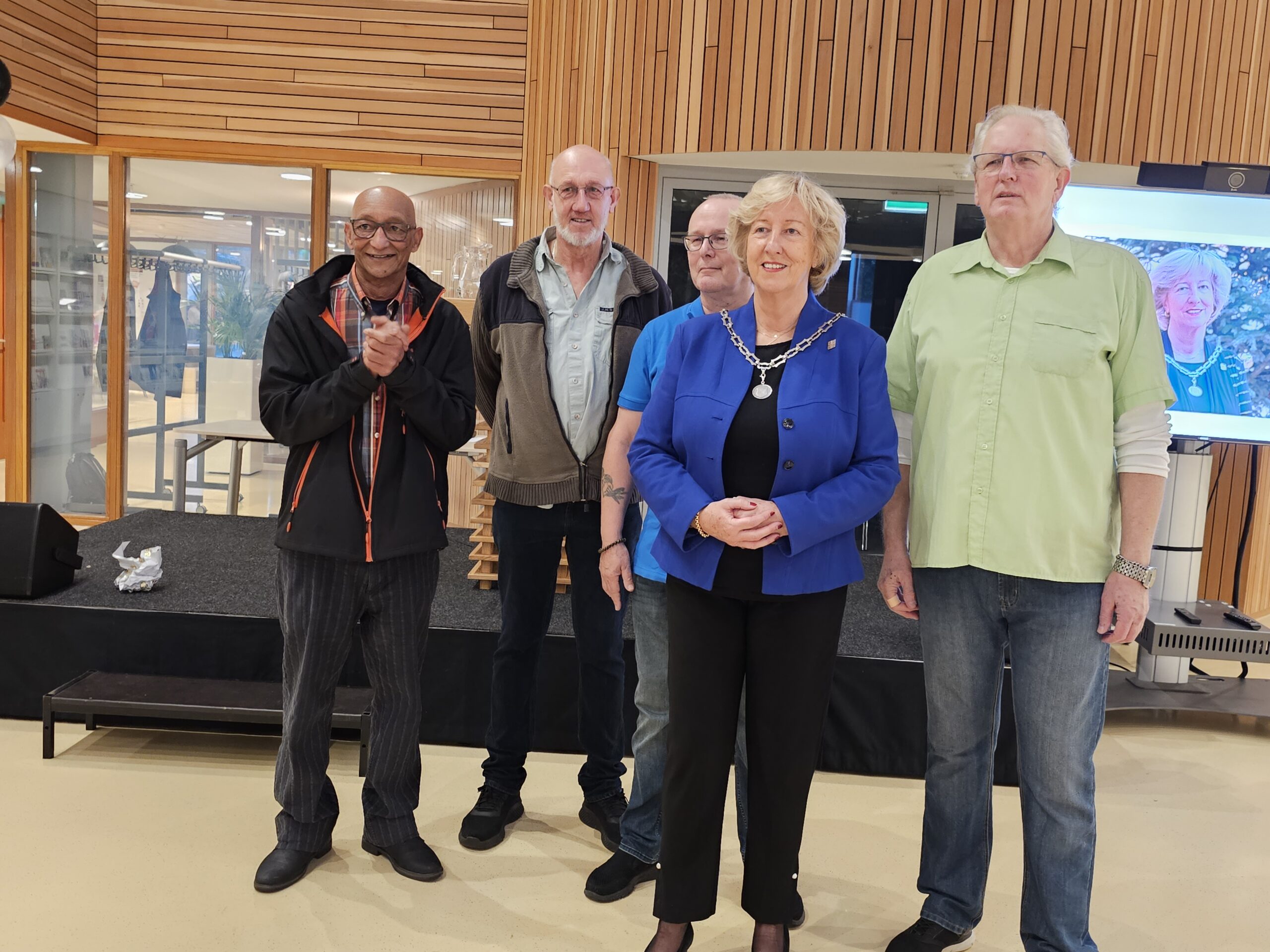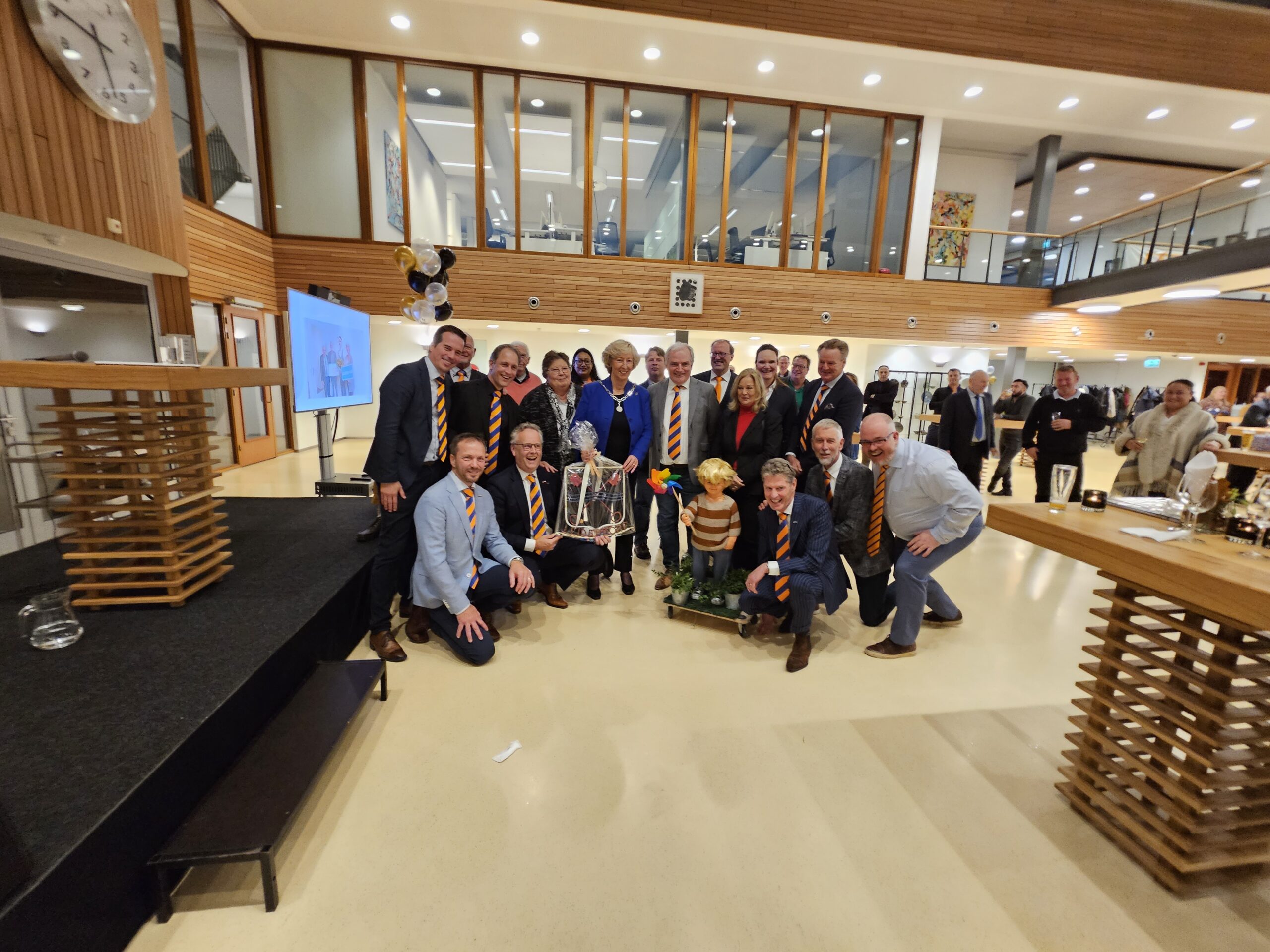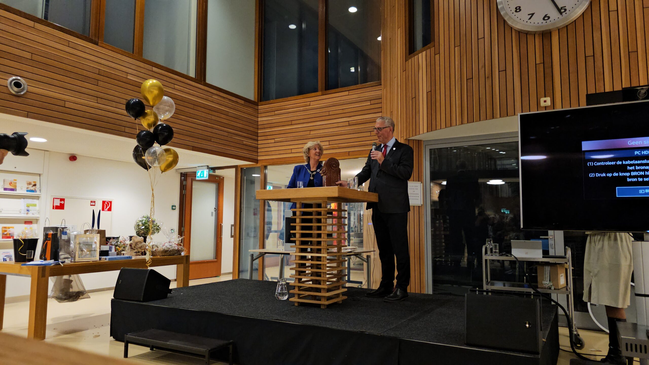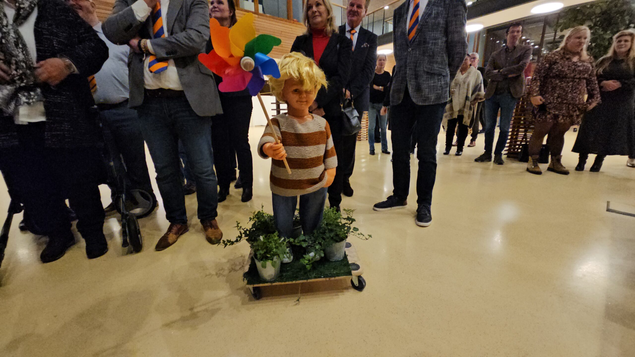 De afsluiting werd verzorgd door een groep Leiderdorpse VVD’ers met wie Driessen, zelf ook van VVD-huize, de afgelopen twaalf jaar te maken kreeg. De liberale Leiderdorpers hadden maar liefst drie cadeaus voor Laila Driessen. Een replica van een ‘beroemd Leiderdorps kunstwerk’, aldus oud-wethouder Willem Joosten. “De stier lukte niet.” Cadeau twee was een speciale uitgave van de Blauwe Stier. Een blaadje dat de VVD nog weleens wil uitgeven rond de verkiezingen. Dit keer stond het vol herinneringen en foto’s. Als derde cadeau kreeg ze van haar partijgenoten het Leiderdorpse gemeentewapen om aan haar woning in Alphen aan den Rijn te bevestigen.