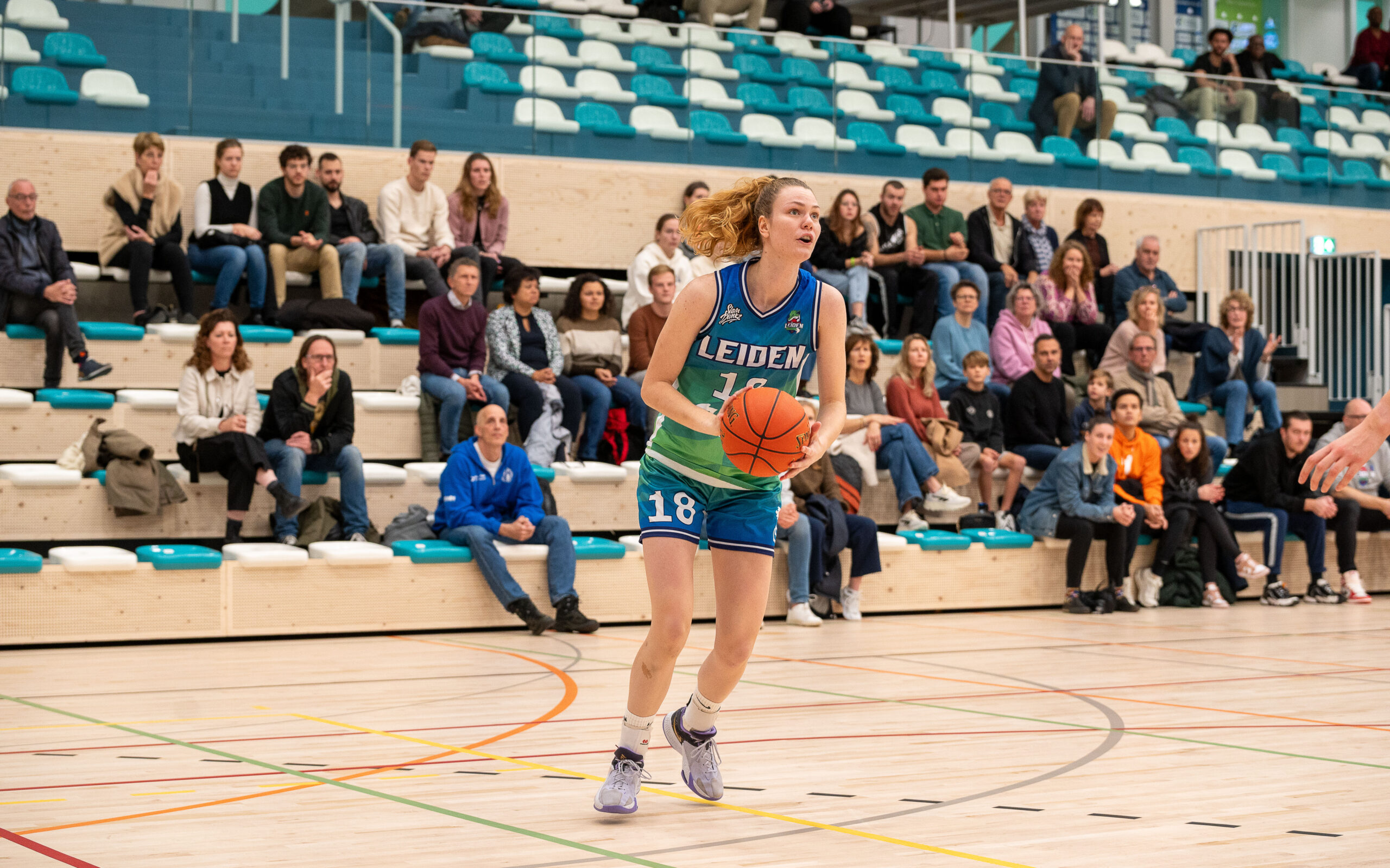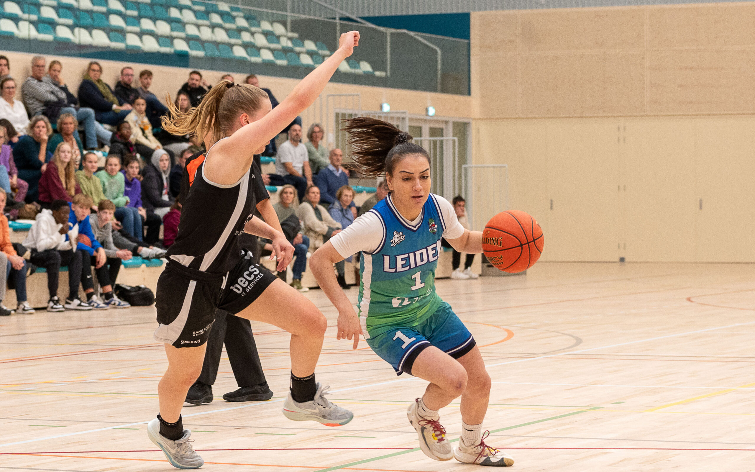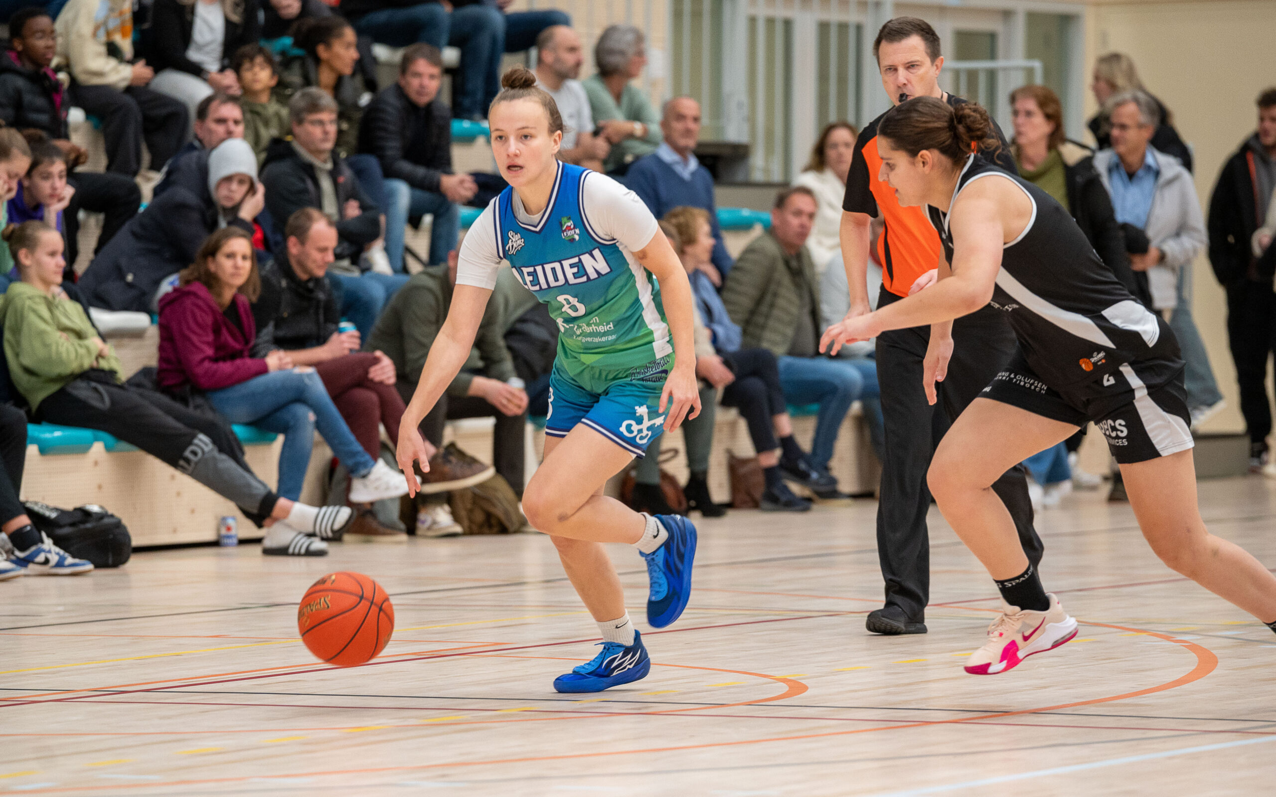 Het was geen lekker begin voor Leiden. “We stonden direct met 9-0 achter”, zegt coach Richard den Os. “Maar we wisten ons wel te herpakken. Vooral einde derde kwart en begin vierde kwart speelden we goed en liepen uit tot twintig punten voorsprong.” Achilleshiel van het nog jonge Leidse team is de wisselvalligheid. “We kunnen heel goed spelen, maar als het dan wat minder gaat, zakken we meteen door de bodem. We moeten veel stabieler worden.”