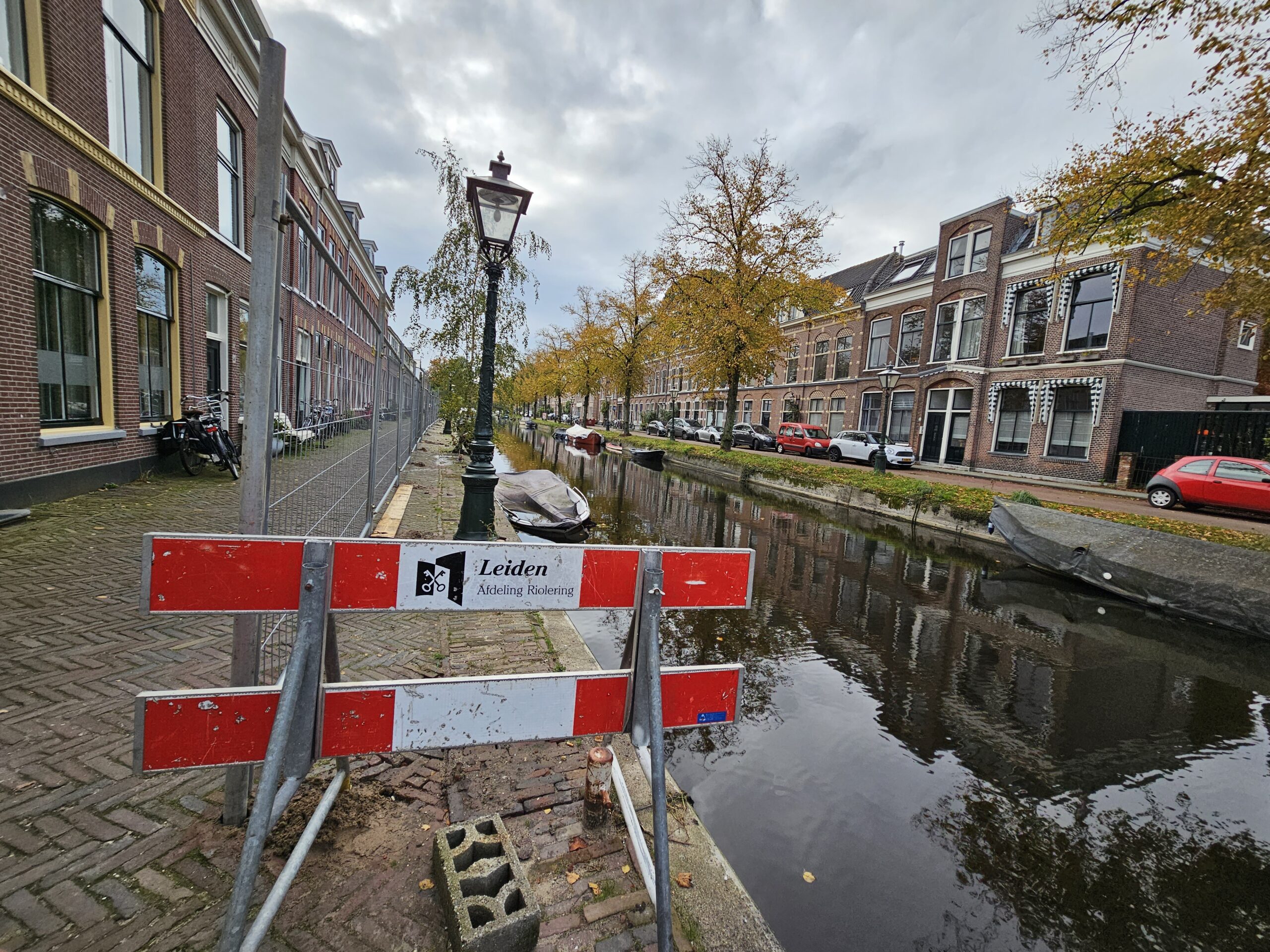 Over de hele lengte van de Schelpenkade heeft de gemeente Leiden hekken geplaatst om te voorkomen dat auto’s en fietsen in een verzakking rijden. De afgelopen periode waren er op de Schelpenkade diverse verzakkingen ontstaan. De gemeente zegt inmiddels druk bezig te zijn met de voorbereidingen om de kadeconstructie te vervangen.