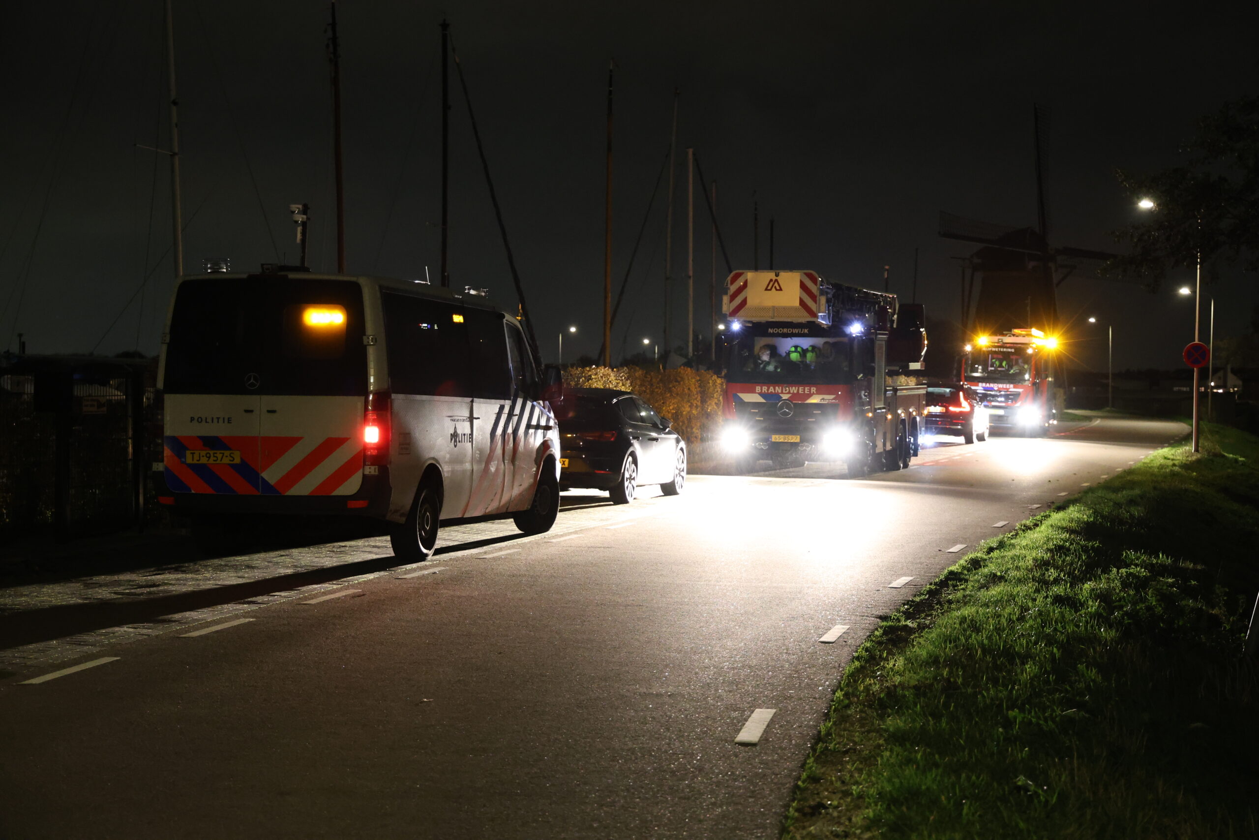 Een deel van de uitgerukte hulpdiensten spoedde zich naar de Zijldijk en een ander deel, waaronder het duikteam van de brandweer, ging naar het Strandje ’t Joppe in de Merenwijk in Leiden.