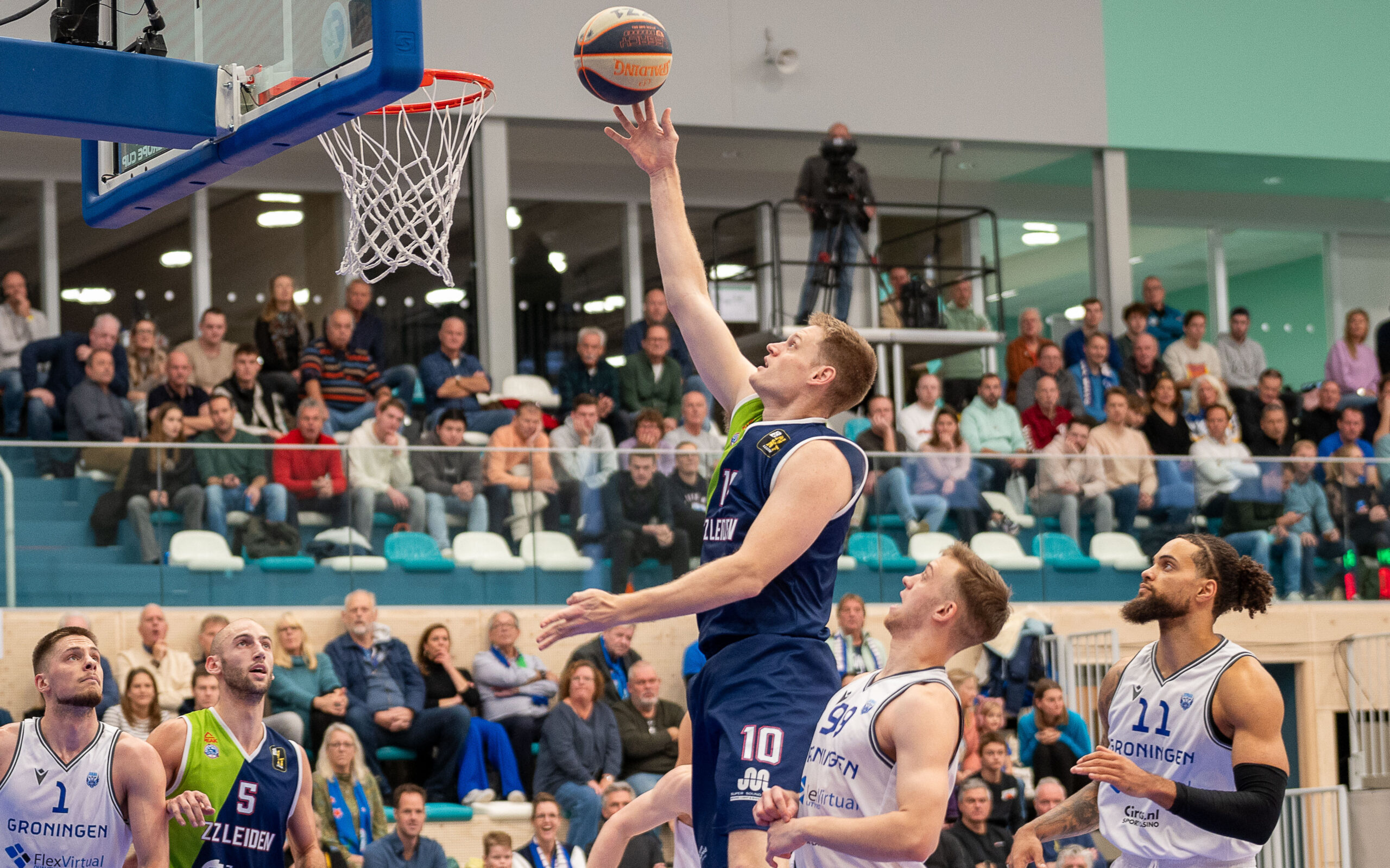 De eredivisie basketballers van ZZ Leiden hebben zondagmiddag thuis gewonnen van het Groningse Donar. Het was een spannende wedstrijd die tot de rust vrijwel gelijk op ging. Uiteindelijk wist Zorg en Zekerheid met 85-77 te winnen van Donar.