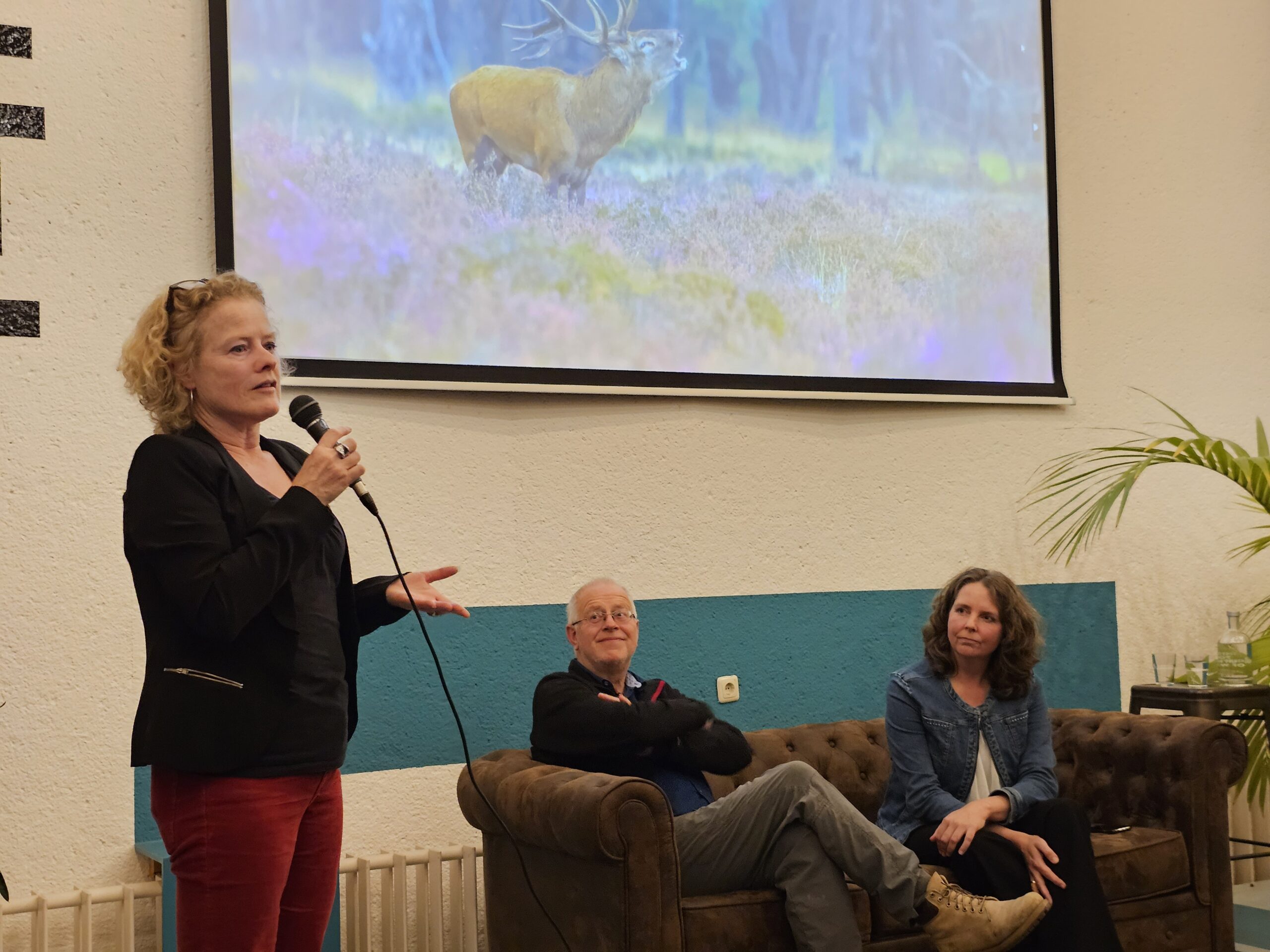 Dick de Vos en Martine van Schaik na afloop van de avond die in het teken stond van de ‘Canon van de Nederlandse Natuur’ en de verkiezingscampagne van de Partij voor de Dieren.