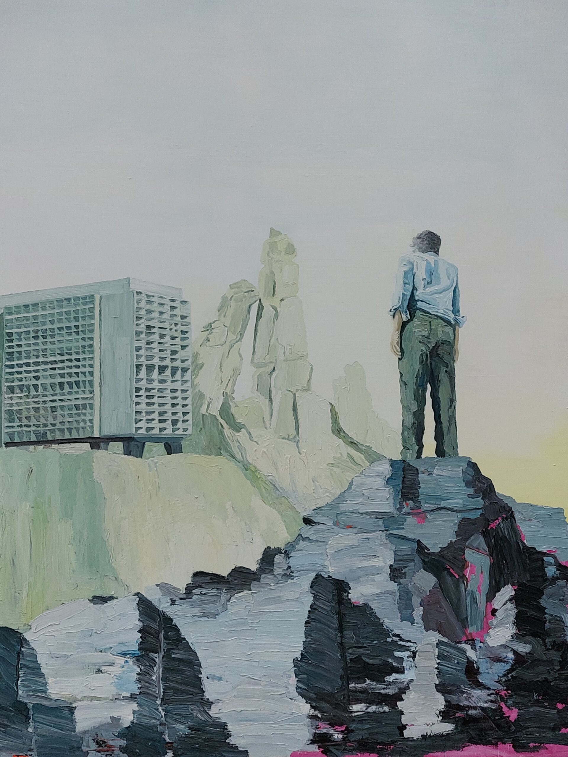 De titel van de expositie roept meer dan ooit een gevoel op dat refereert aan het huidige tijdsgewricht, waarbij in toenemende mate crises zich lijken op te stapelen en velen de toekomst somber inzien. Toch kunnen we niet zonder de gedachte dat er oplossingen komen, dat het anders wordt, beter. De Bruijn: “Ik heb deze serie in 2017 geschilderd, maar die gedachte van hoop leefde bij mij eigenlijk al veel langer. Toen ik mijn schildersopleiding volgde, leefde op de academie het idee dat de schilderkunst een achterhaalde kunstvorm zou zijn. Ik hoopte anders en bleef de schilderkunst trouw. Maar ook in 1986 bleef ik de gedachte van hoop houden, nadat mijn atelier in Amsterdam als gevolg van brandstichting in de as was gelegd en al mijn kunstwerken verloren waren. Toch weer de draad opgepakt en opnieuw begonnen.”