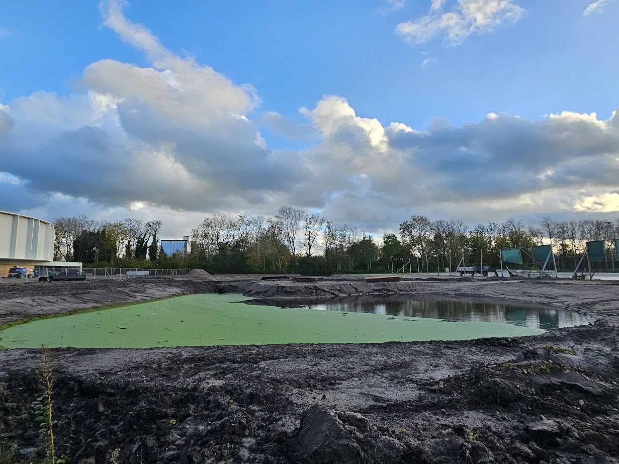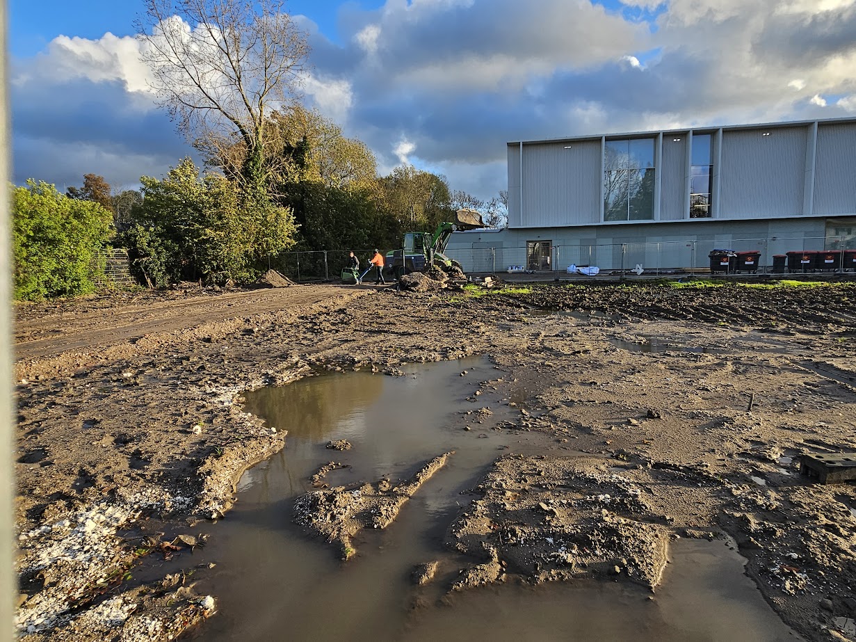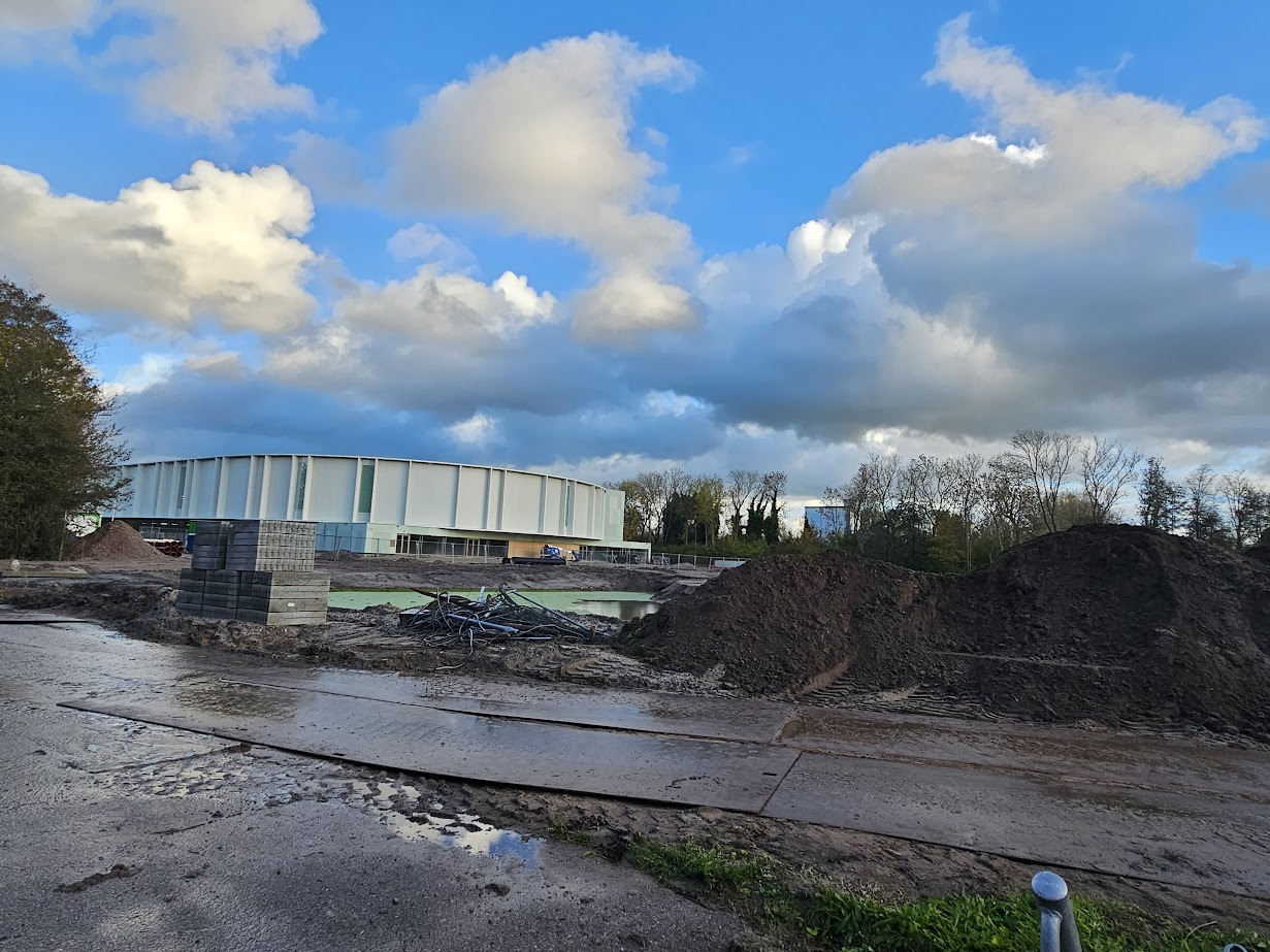 Aan die buitenruimte wordt overigens nog flink gewerkt Er is nu een calamiteitenroute aangelegd voor de hulpdiensten en er wordt gewerkt aan een retentievijver voor watercompensatie, een natuureiland en een tijdelijke parkeerplaats. Rond de zomer van 2024 moet alles helemaal klaar zijn.